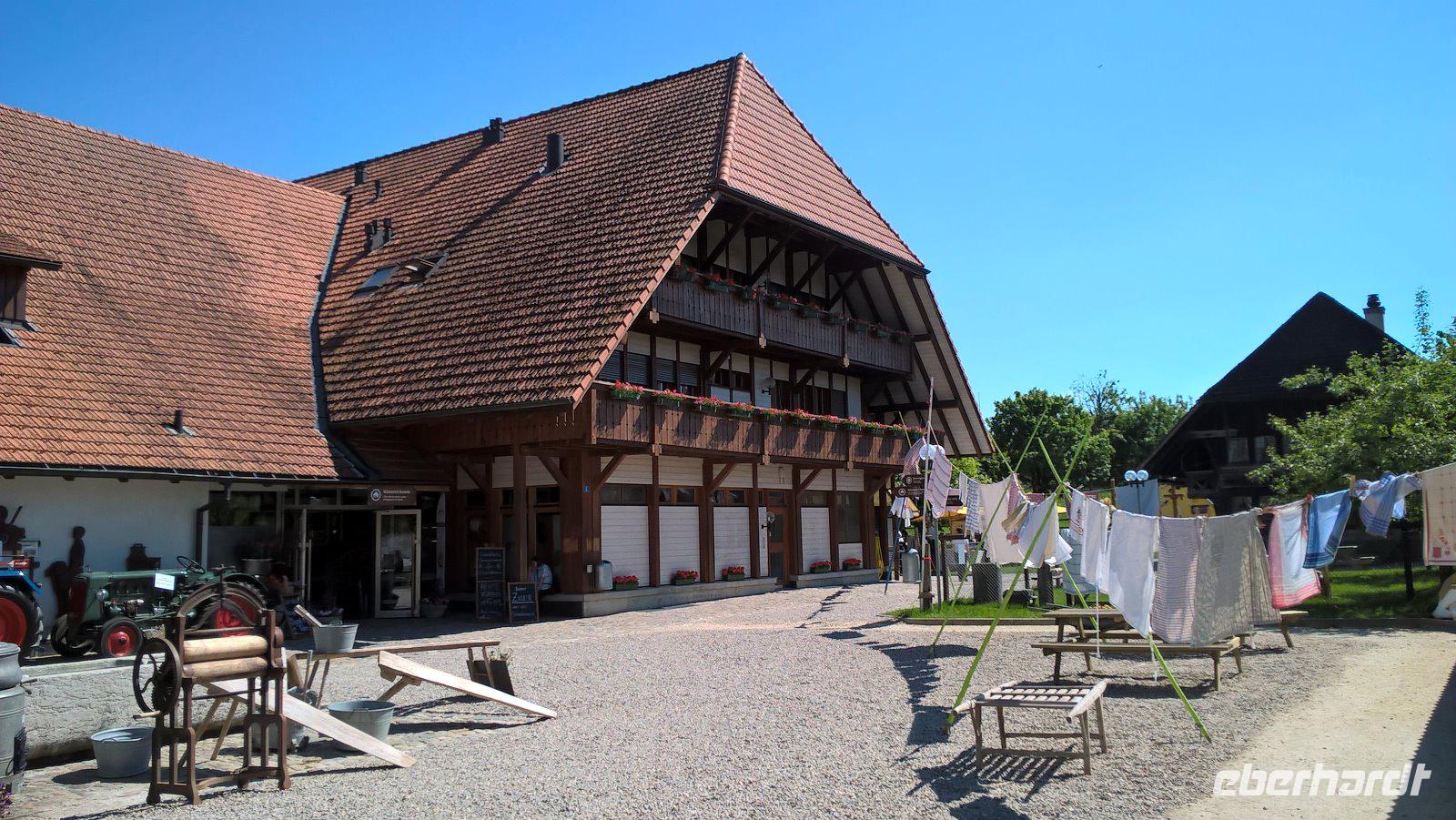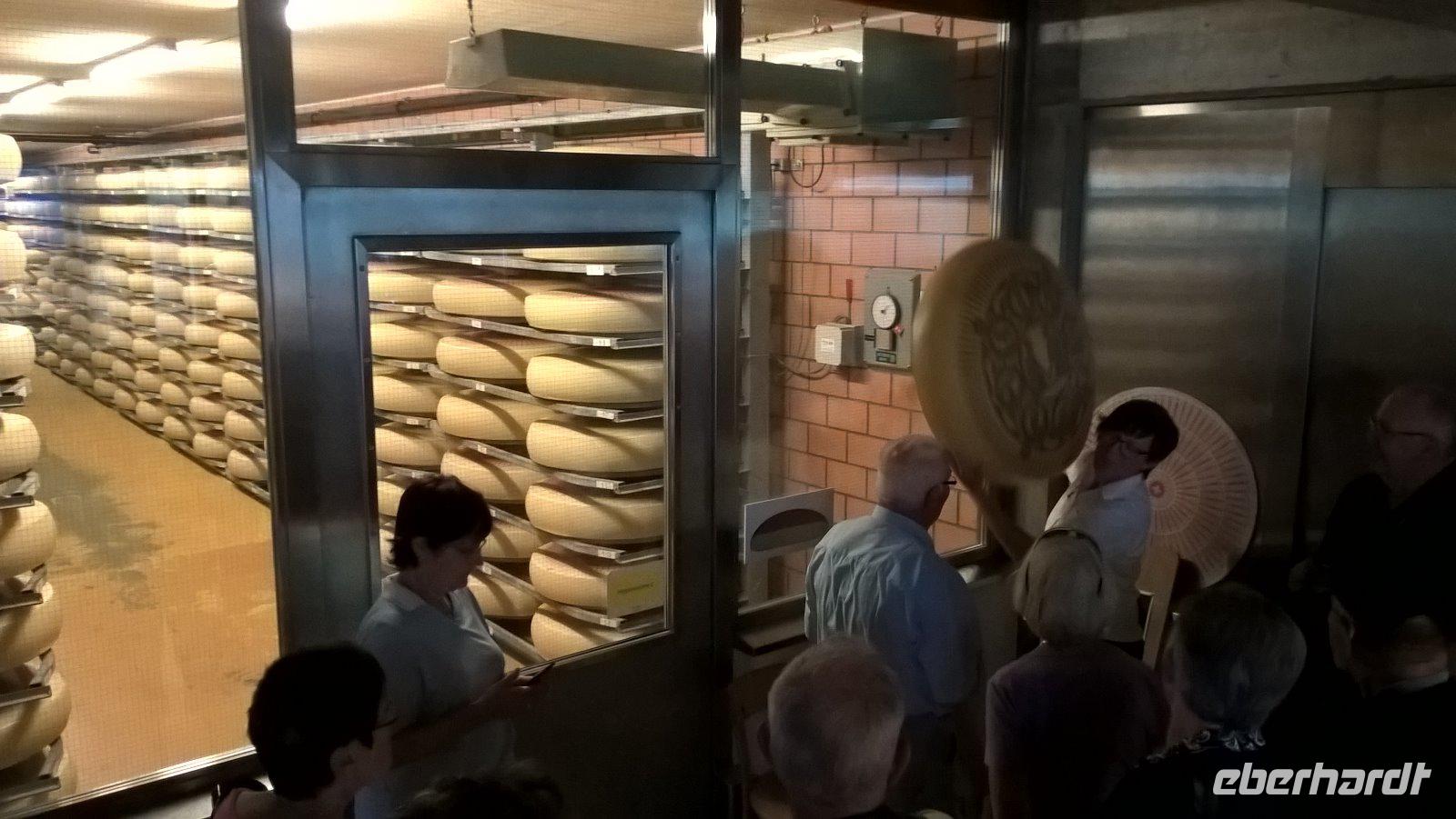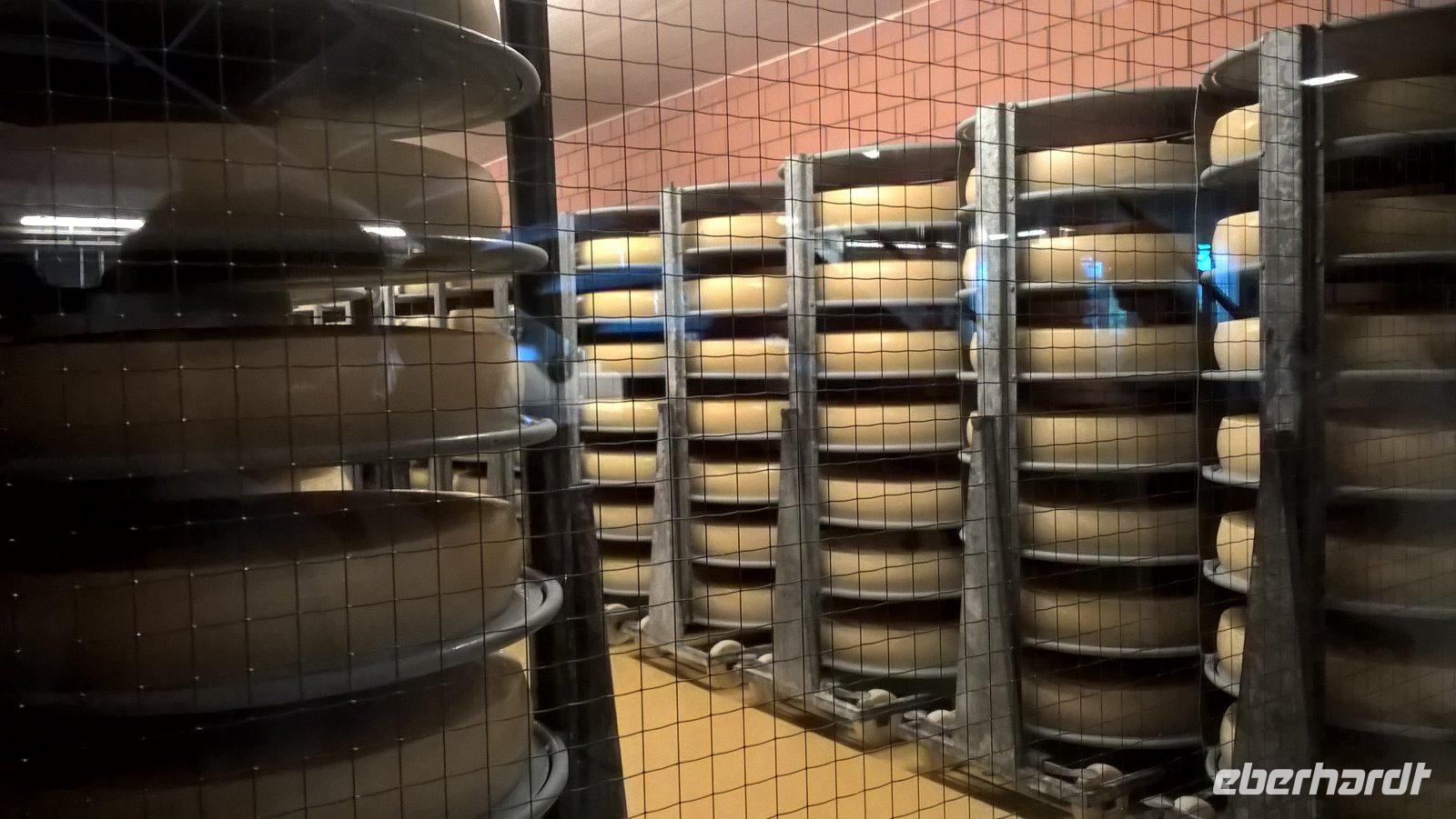 Mit vollen Bäuchen also von den Verköstigung fahren wir weiter in die Schaukäserei des Emmentals. Jetzt wollen wir endlich erfahren, wie die Löcher in den Käse kommen. Schon im Hof begrüßt uns eine Gruppe Trachtler, die singt und tanzt und musiziert. Wir bleiben kurz stehen und wollen erst gar nicht hinein in die Schaukäserei, so schön ist es die Schweizer Tradition zu erleben. Aber der Herstellung des Emmentaler Käse beizuwohnen, ist für uns am Ende doch noch ein sehr interessantes Erlebnis. Und die Verköstigung von Käse verschiedenen Alters am Ende ganz besonders.