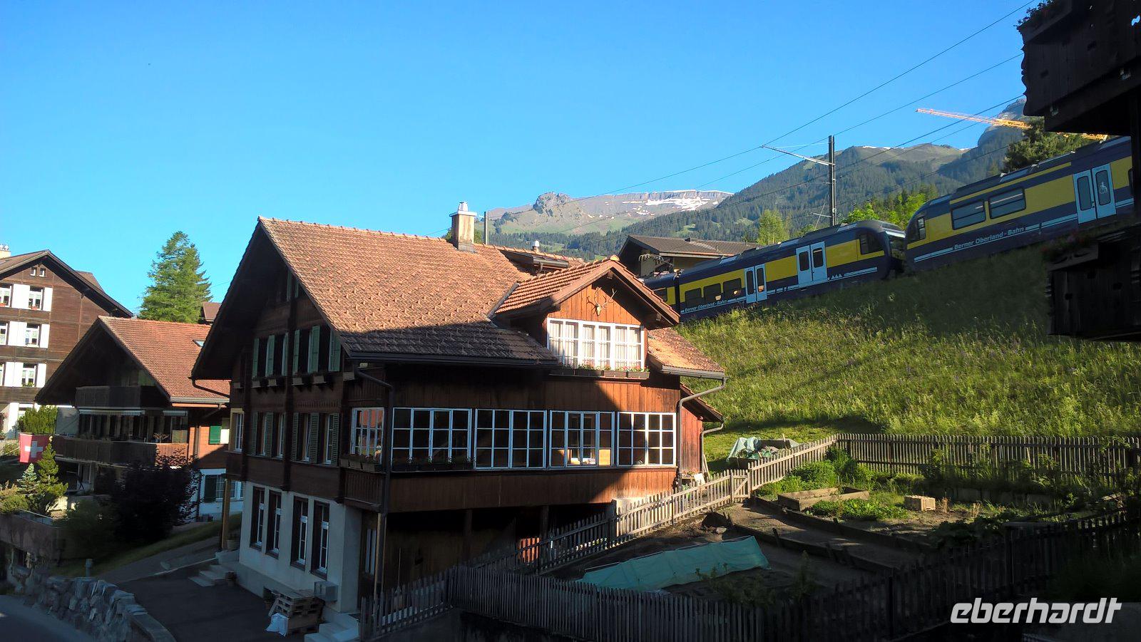 Unser morgendlicher Blick vom Hotel aus geht bei klarem Wetter auf den Eiger, einer der 3 des Dreigesteirns Jungfrau, Mönch, Eiger, selbstverständlich eines unserer Ziele der nächsten Tage.
