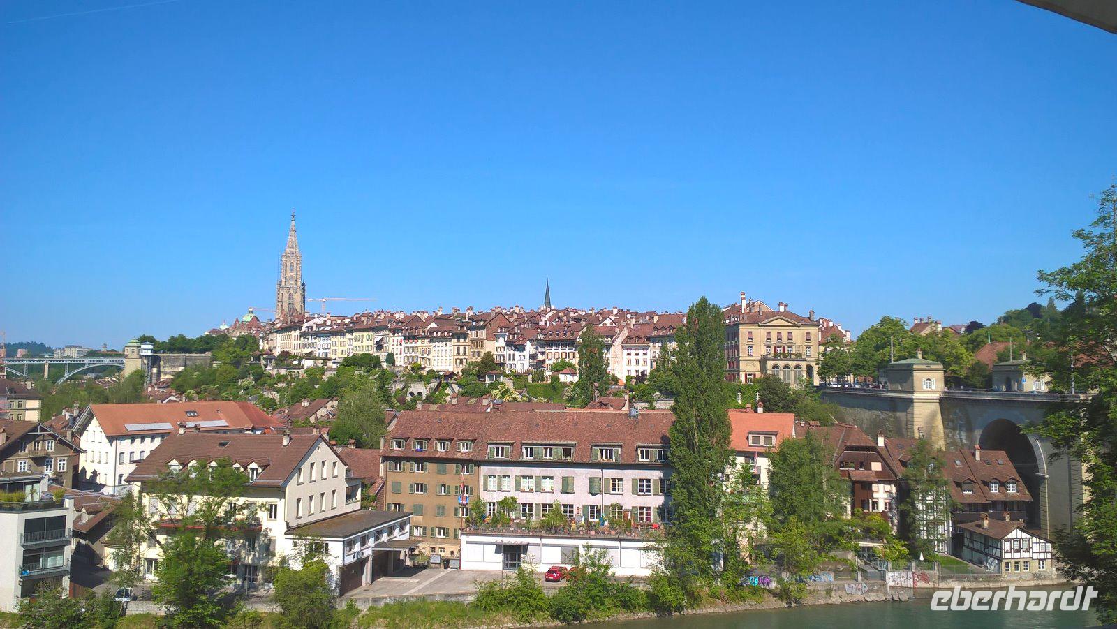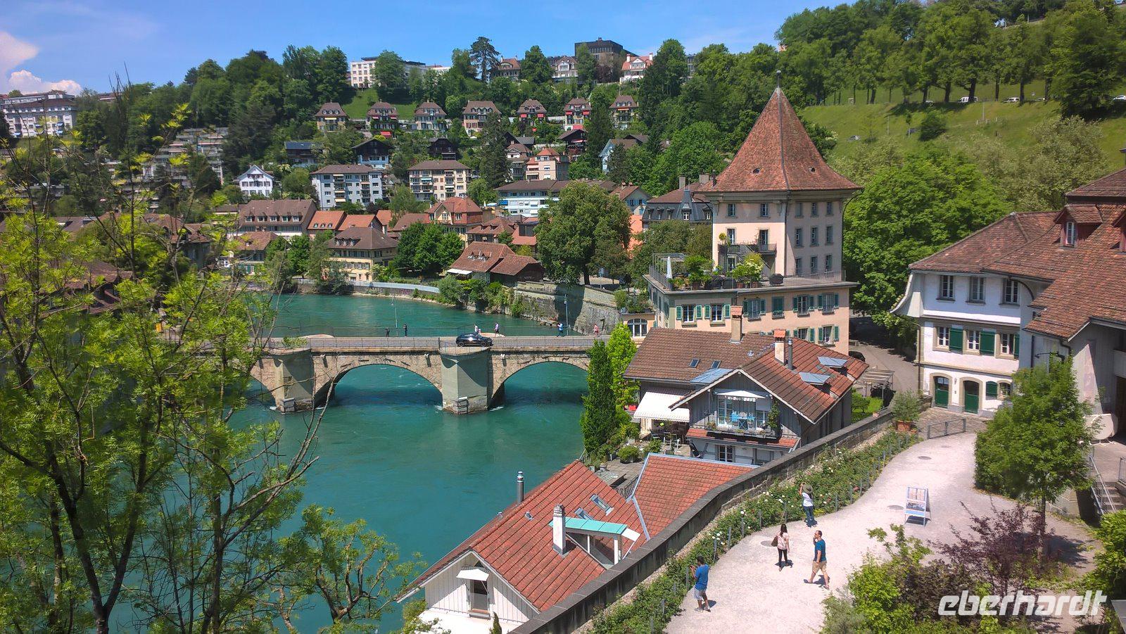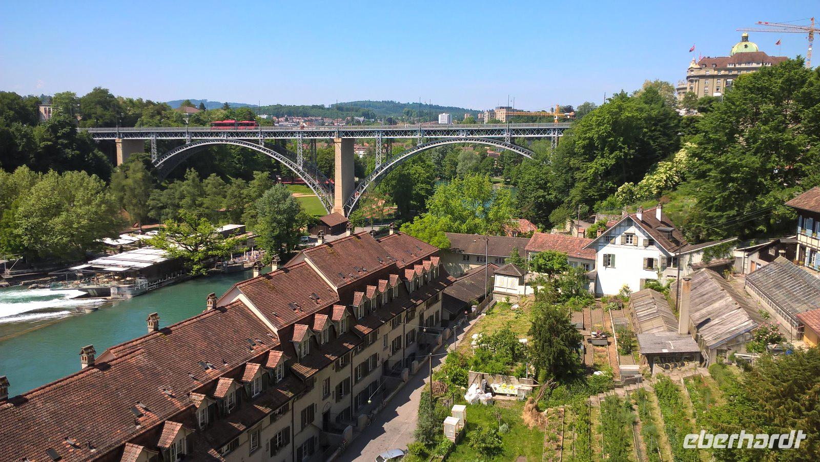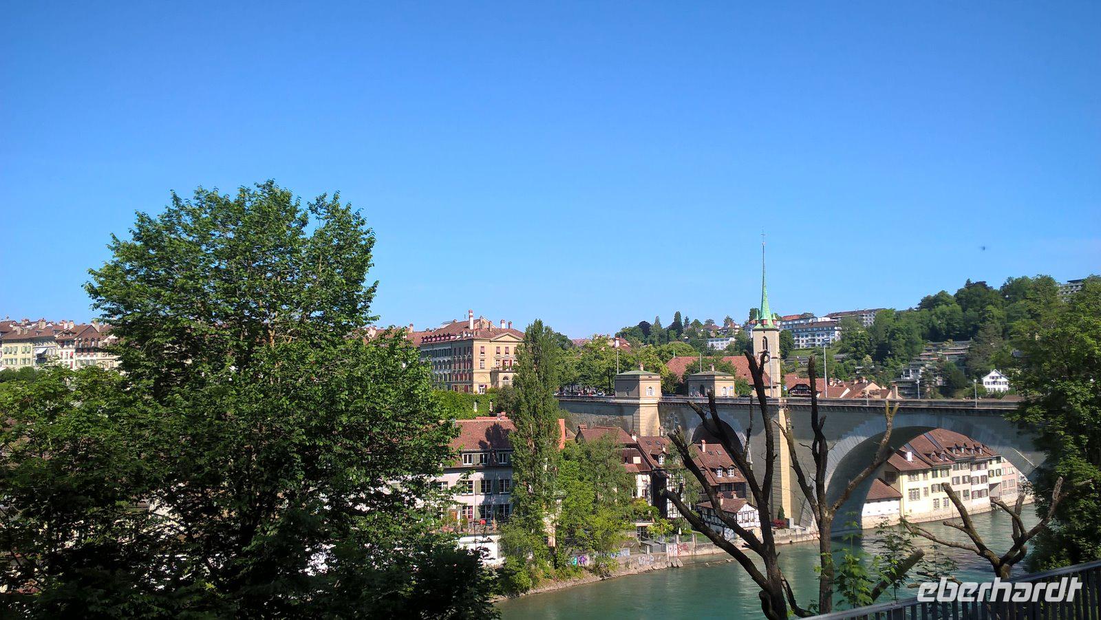 Bern gehört mit 141'920 Einwohnern (Februar 2017) - neben Zürich, Genf, Basel und Lausanne - zu den grössten Gemeinden der Schweiz; rund 390'000 Personen wohnen in der Agglomeration Bern. Die Stadt Bern ist das Zentrum der Wirtschaftsregion Bern-Mittelland. Wir erfahren: Bei der Gründung des schweizerischen Bundesstaates entstand eine Kontroverse darüber, ob die Schweiz eine Hauptstadt haben solle und welche. Sie endete in einem Kompromiss: Am 28. November 1848 wählten der National- und Ständerat die Stadt Bern als Bundessitz der Schweiz, sie wird jedoch nicht Haupt-, sondern Bundesstadt genannt und ist nur de facto, aber nicht de jure Hauptstadt der Schweiz. Nach einer etwa 2,5 stündigen Stadtbesichtigung mit einer örtlichen Reiseführerin haben wir noch etwas Zeit, Bern auf eigene Faust kennen zu lernen. Einige wollen hiesige Spezialitäten probieren und suchen eines der urigen Lokale von Bern auf. Andere wiederum wollen einmal eine Abkühlung an diesem heißen Tag und lassen sich in die Aare fallen, an deren Ufer sich ein Freibad befindet.