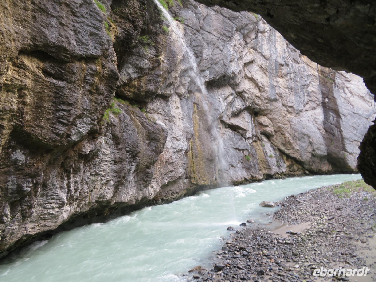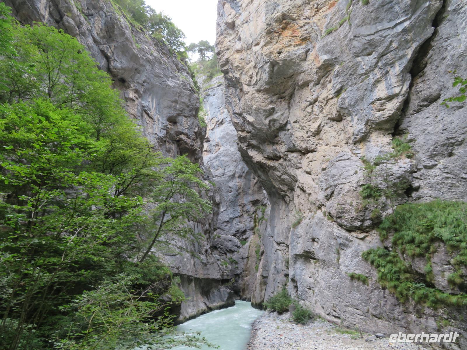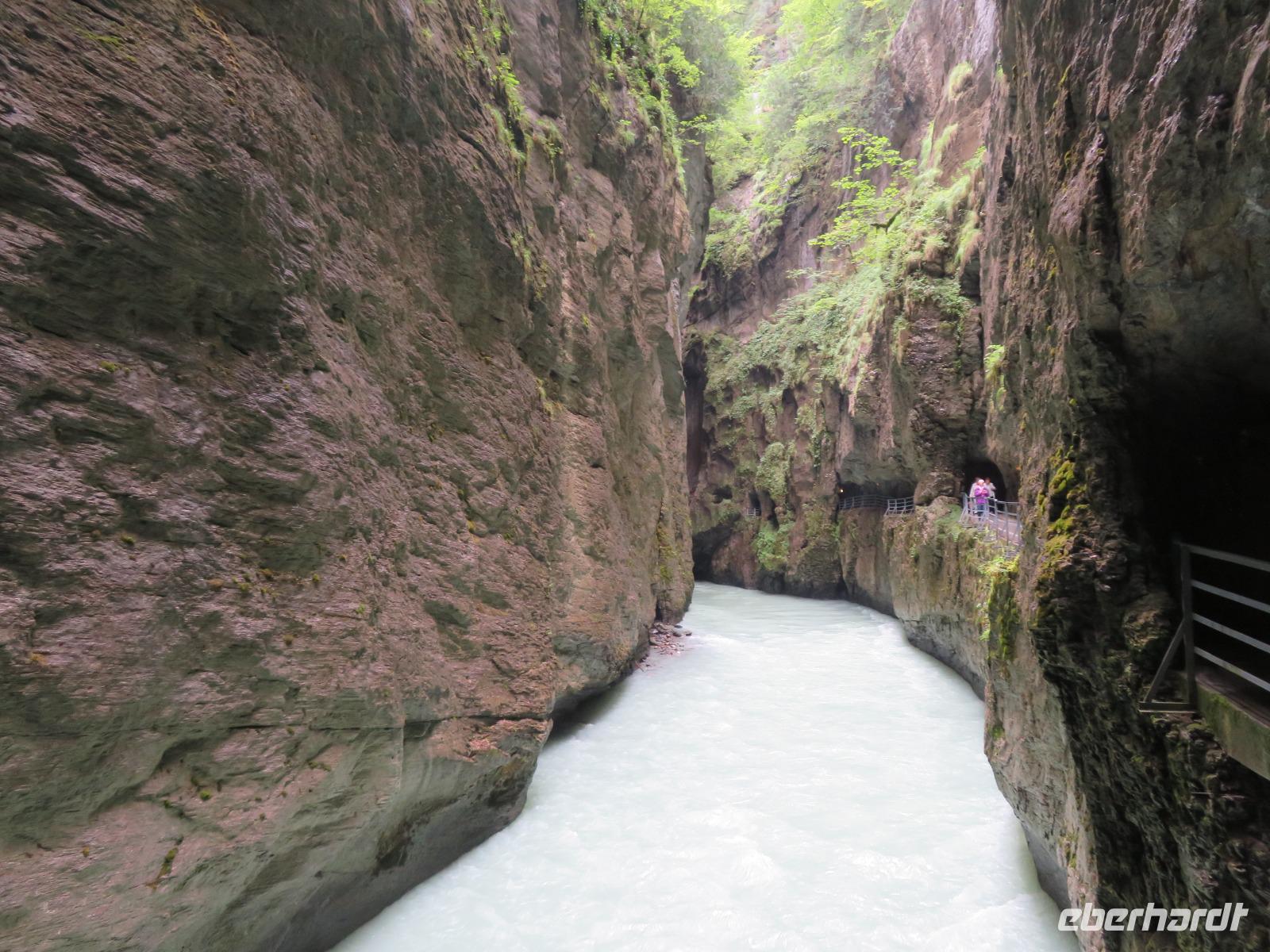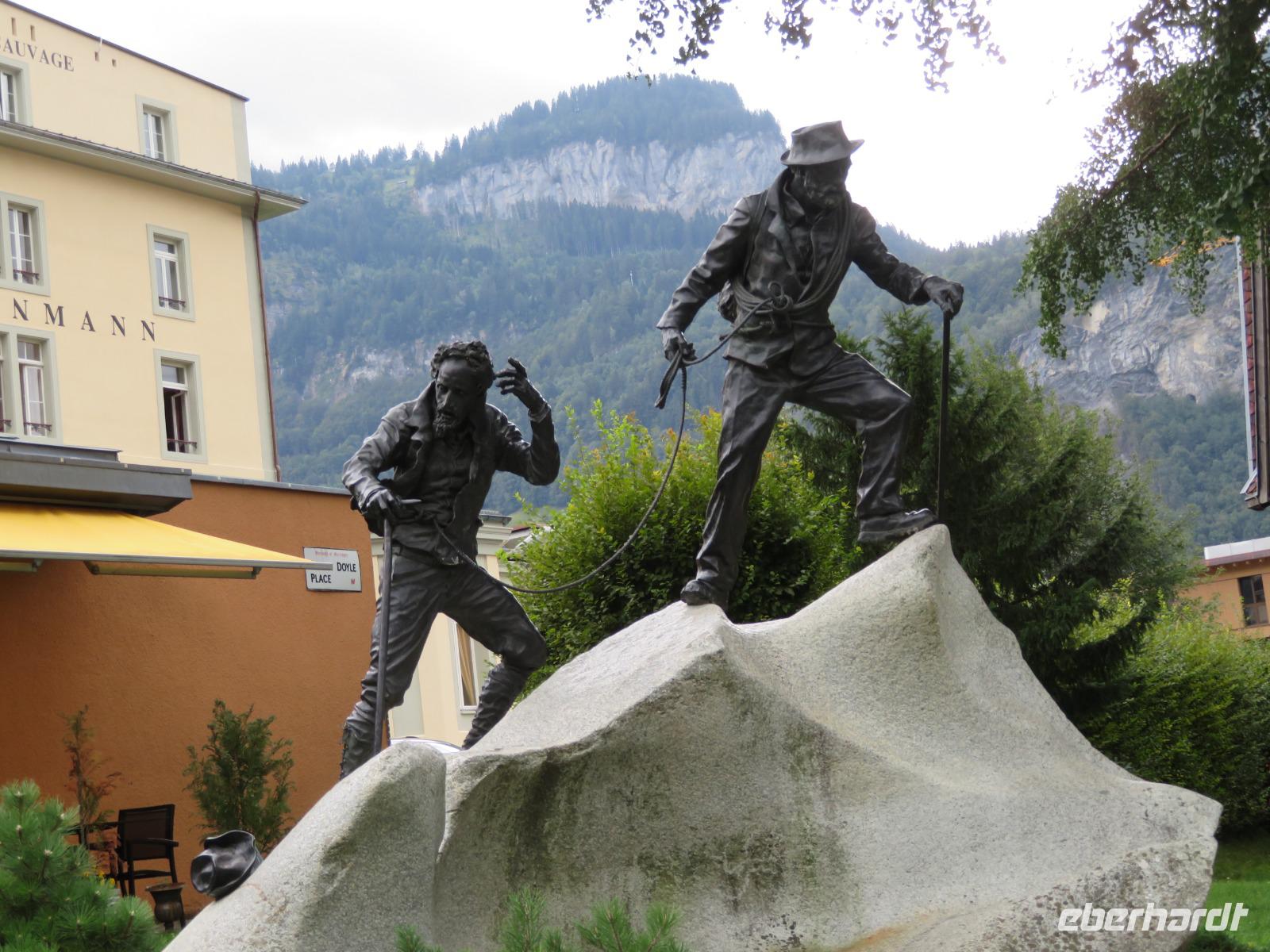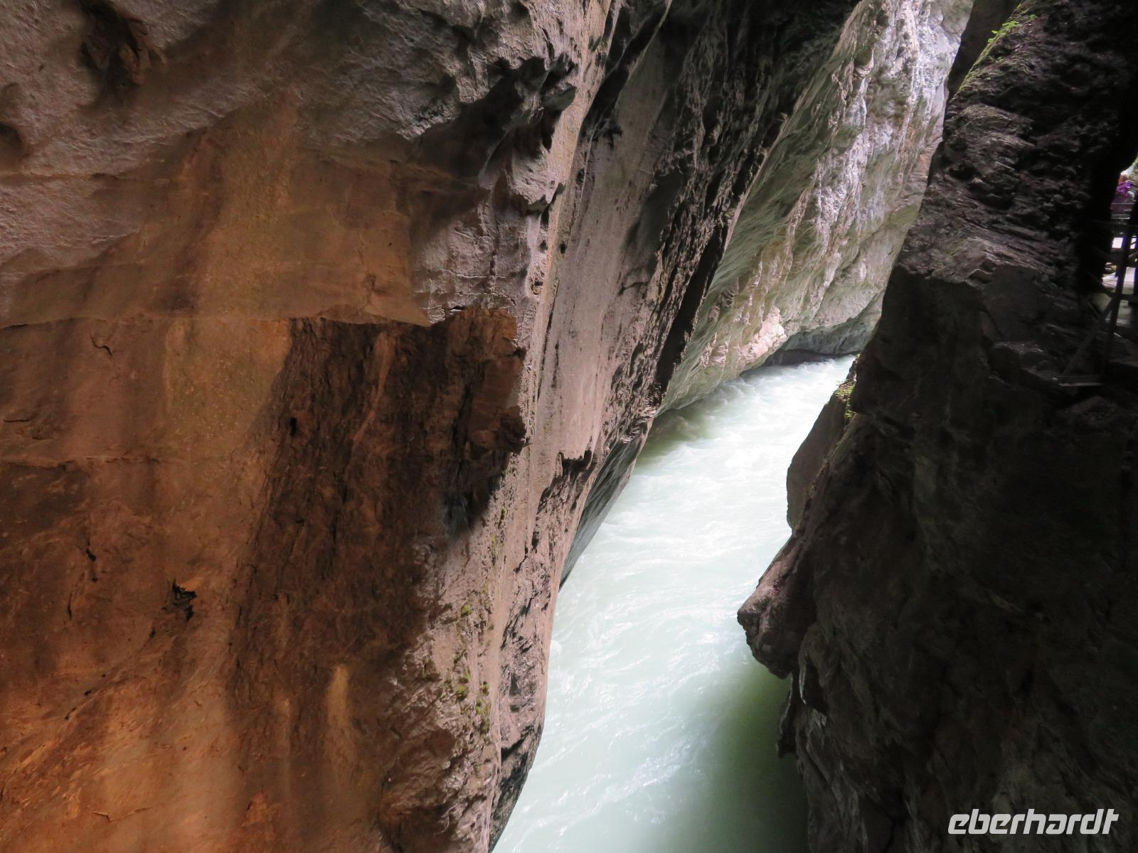 Am Morgen geht es mit unserem Bus zur Aareschlucht. Ein gewaltiger Felsriegel aus hartem Gestein versperrt seit der letzten Eiszeit den Weg der Aare durch das Haslital. Seither arbeitet sich die Aare seit vielen Millionen Jahren unaufhörlich durch den Felsriegel. Wir spazieren an imposanten bis zu 180 Meter hohen Felswänden vorbei. Dabei bestaunen wir die eindrücklichen Gletschermühlen und sehen einen Wasserfall. An der engsten Stelle zwängt sich das Wasser in nur einem Meter Breite durch das harte Gestein. Nach dem interessanten Spaziergang reisen wir weiter nach Meiringen. Arthur Canon Doule weilte einige Zeit in Meiringen und schrieb einige seiner bekannten Romane. Daran erinnern das Denkmal für Sherlok Holmes und einige Informationstafeln zur Geschichte um den vermeintlichen Tod von Sherlok Holmes am Reichenbachfall. Anschließend führt uns unsere Tour nach Brienz. Im Dorf am gleichnamigen See arbeiten und leben viele Schnitzer und Holzbildhauer. Leider fängt es nun an zu regnen, dennoch spazieren wir etwas am Seeufer entlang und entdecken einige der schönen Holzplastiken. Am frühen Nachmittag kehren wir nach Interlaken zurück und alle verbringen den Nachmittag nach ihren Wünschen.