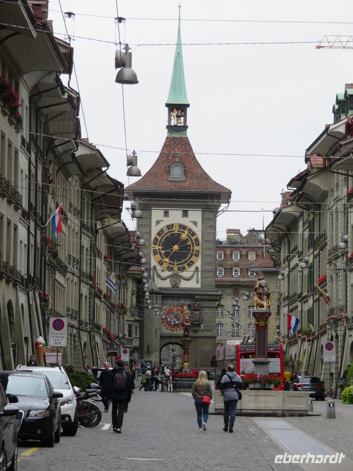 Heute steht ein Besuch der Bundeshauptstadt Bern auf unserem Programm. Wir erreichen den Bärenpark und die können die Wappentiere von Bern, drei stattliche Braunbären sehr gut beobachten. Unsere Stadtführer erwarten uns zu einer interessanten Stadtrundfahrt und einem Stadtrundgang. Zunächst geht es in den Rosengarten, wo über 200 Rosensorten blühen und sich uns ein herrlicher Blick über die Stadt eröffnet. Leider regnet es und die Sicht ist nicht so gut. Unsere Stadtführer Marie-Therese und Daniel berichten uns über die interessante Geschichte der Stadt. Wir sehen den Bundesplatz mit dem Bundeshaus und der schweizerischen Nationalbank. Durch die Kramgasse fahren wir direkt durch die Altstadt. Die imposanten Sandsteinhäuser mit den wunderschönen Laubengängen beeindrucken uns. Wunderschöne historische Brunnen zieren die Stadt. Natürlich darf ein Blick auf das Münster mit dem Portal mit der Darstellung des jüngsten Gerichtes nicht fehlen. Besonders fasziniert uns der Zytgloggenturm mit seiner einmaligen astronomischen Uhr. Ein Schmied aus Deutschland erbaute das technische Meisterwerk im 15.Jahrhundert. Drei Jahre arbeitete er an seiner einzigen Uhr, die er je baute. Auch heute funktioniert sie noch immer mit dem Original-Uhrwerk. Uns bleibt genügend Zeit für einen individuellen Spaziergang durch Bern. Am Mittag bringt uns der Bus nach Thun. Wir unternehmen einen kleinen Spaziergang durch die schöne ehemalige Zähringerstadt. Dabei bestaunen wir an der AEK Bank eine ungewöhnliche Festgeldanlage: vor der Bank sind 1.826 Franken in 1.826 Münzen in den Boden eingelassen. Diese erinnern an das Jahr 1826, das Gründungsjahr der Bank. Nun erwartet uns das Motorschiff Bubenberg. Auf einer gemütlichen Fahrt geht es über den Thunersee nach Interlaken. Wir lassen die Landschaft an uns vorüberziehen sehen die lieblichen Orte am Ufer. In Interlaken-West verlassen wir das Schiff und fahren mit dem Bus zum Hotel. Am Abend verwöhnt uns das Team vom Hotel wieder mit einem leckeren Abendessen.