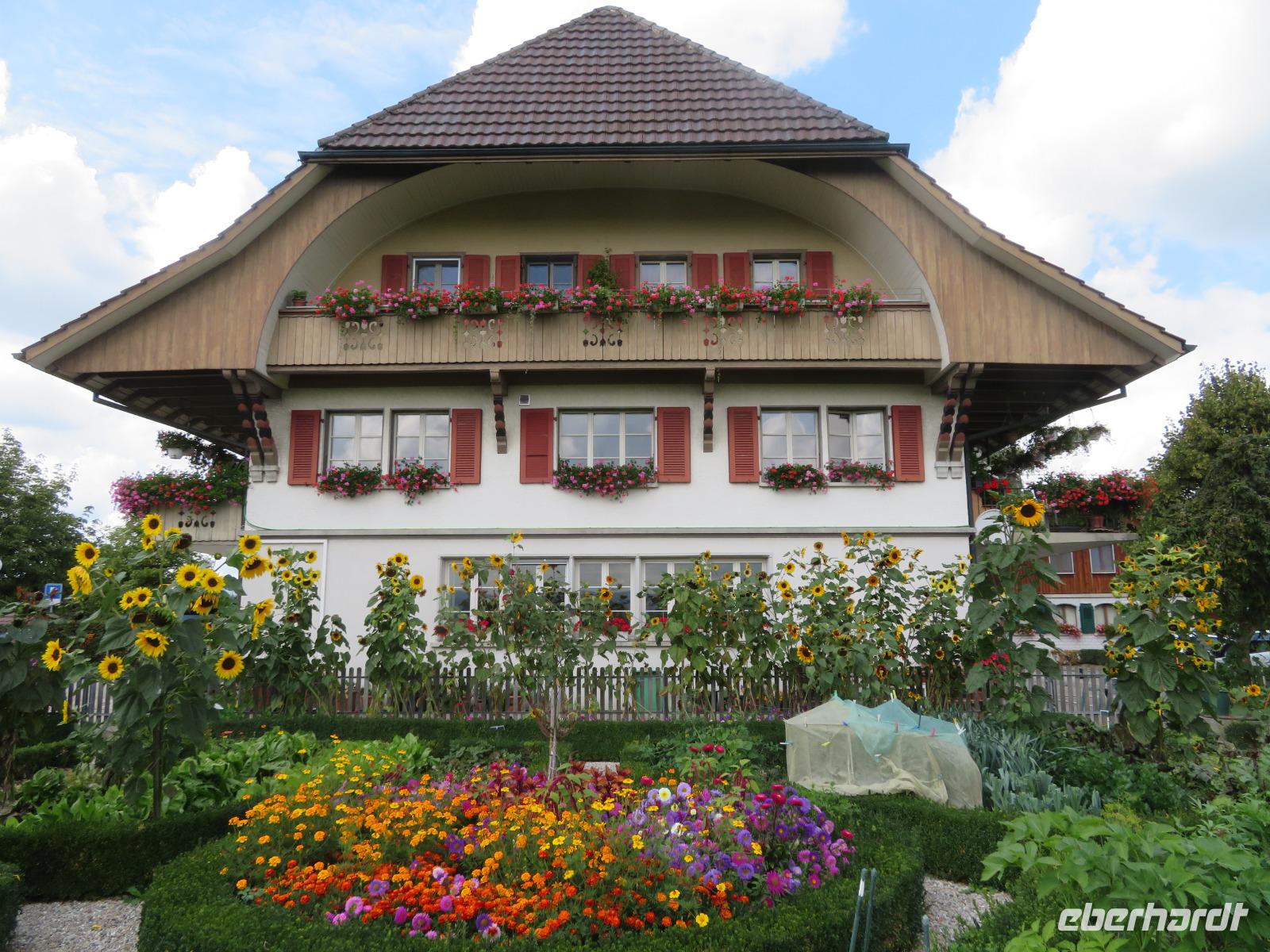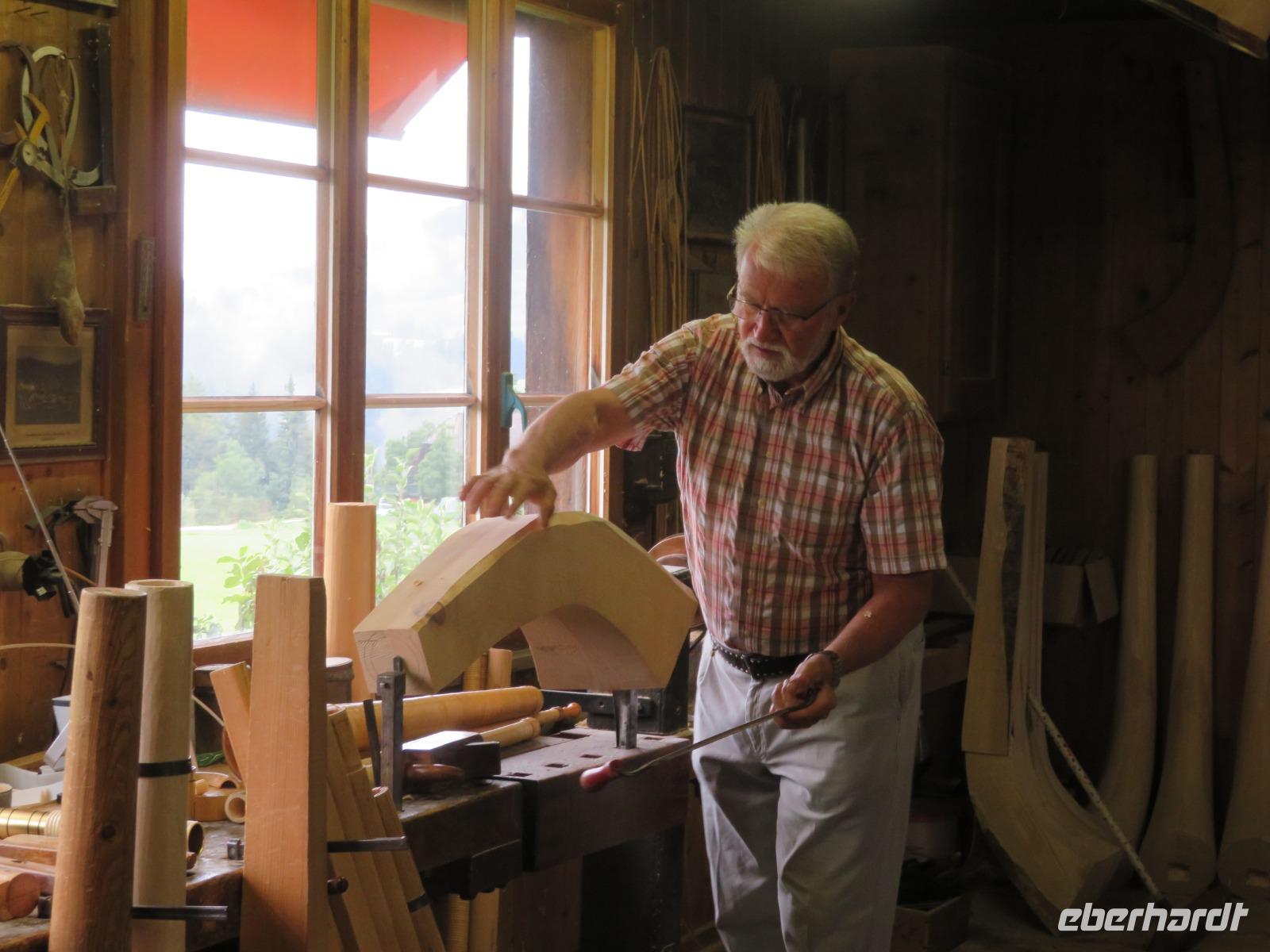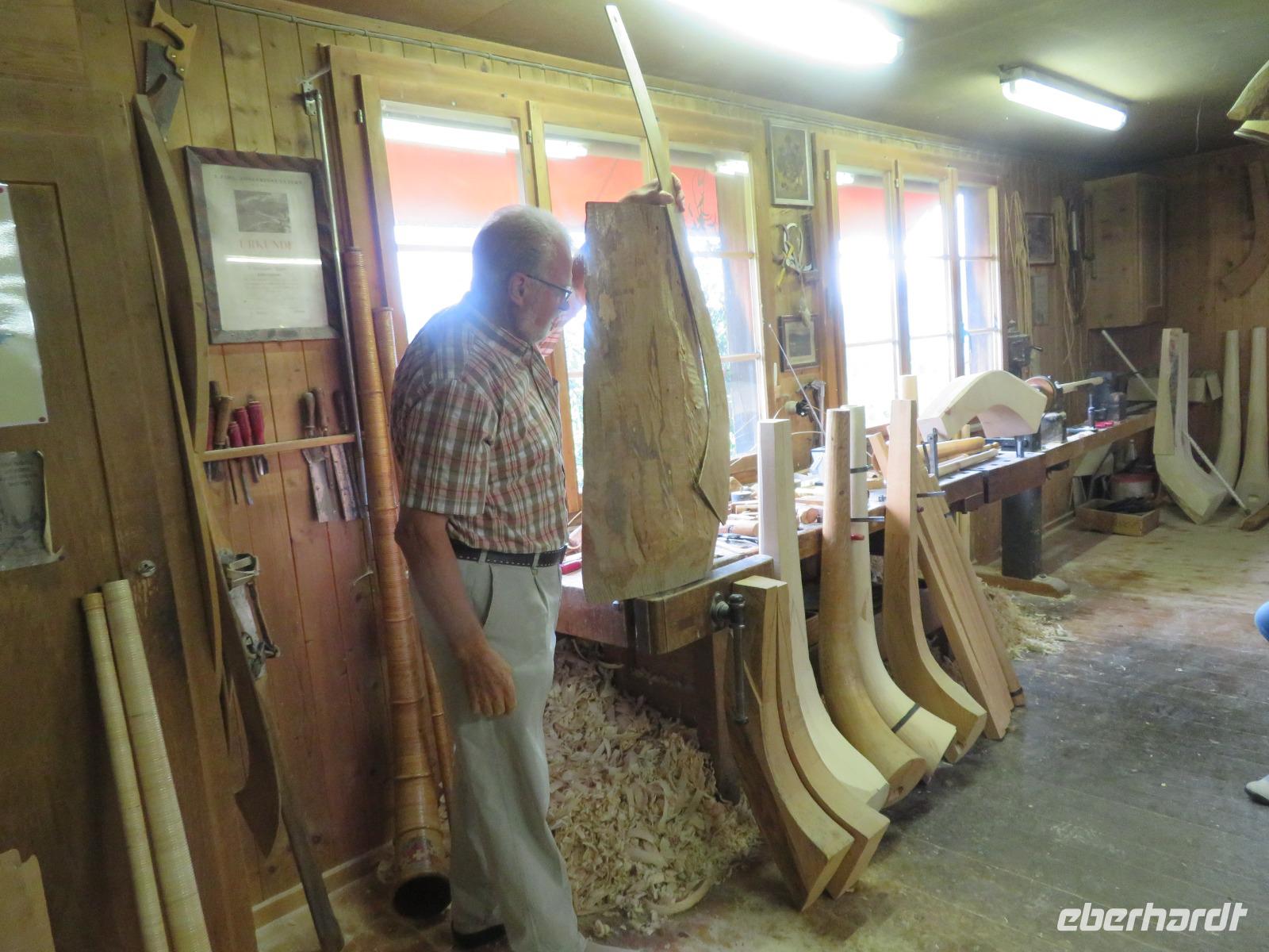 Heute erwartet uns ein spannender Ausflug in das Emmental. Das Emmental besticht durch seine liebliche Landschaft, hübsche Dörfer und viele traditionelle Handwerksbetriebe. Zunächst fahren wir nach Eggiwil. Auf dem Knubel erwartet uns Familie Bachmann in ihrer Alphornwerkstatt. Herr Bachmann erklärt uns in seiner Werkstatt sehr anschaulich die Geschichte seiner Familie, des Alphorns und dessen Herstellung. Er erzählt und demonstriert uns sehr anschaulich, wie die Alphörner aus Tannenholz in mühevoller Handarbeit gebaut werden. Nur sehr wenige Arbeitsgänge führen Herr Bachmann und sein Sohn mit Hilfe von Maschinen aus. Hobeln, Schleifen und Kleben - alles wird immer noch mit selbstgebauten Spezialwerkzeugen des Schwiegervaters von Herrn Bachmann per Hand ausgeführt. Für die Herstellung eines Alphorns benötigt Herr Bachmann etwa 80 Arbeitsstunden. Wir sind begeistert so nah und anschaulich diese Handwerkskunst kennen lernen zu dürfen. Anschließend führt uns unsere Reise weiter durch das wunderschöne Emmental mit seinen typischen Bauernhöfen nach Trubschachen. In der Erlebniswelt Kambly tauchen wir ein in die Welt der Kekse. Im Jahr 1910 kam ein junger Bäckergeselle aus dem Waadtland der Liebe wegen in das Emmental. Er lernte in einer Bäckerei und begann Brezeli - feine Biscuite-Kekse - zu backen. Seit damals schon werden hier die leckeren Kambly-Kekse gebacken. In einer kleinen Multi-Media-Show erleben wir wieder sehr anschaulich die Geschichte der Familienfirma. Wohl nur hier erleben wir eine Küche, in der sich wie von Geisterhand die Schubladen alleine öffnen und schließen, der Quirl in der Schüssel den Teig rührt und das Nudelholz diesen alleine ausrollt. So eine Küche wünscht sich wahrscheinlich jede Hausfrau. Zwei Konditorinnen beobachten wir bei der Arbeit. Natürlich können wir die vielen leckeren Kekse und Gebäcke nach Herzenslust probieren. Keiner kann diesen Köstlichkeiten widerstehen. Zu verführerisch sind die Leckereien und so wandert manch Kekstüte mit in den Bus. Wieder haben wir eine lange Handwerkstradition im Emmental kennengelernt.