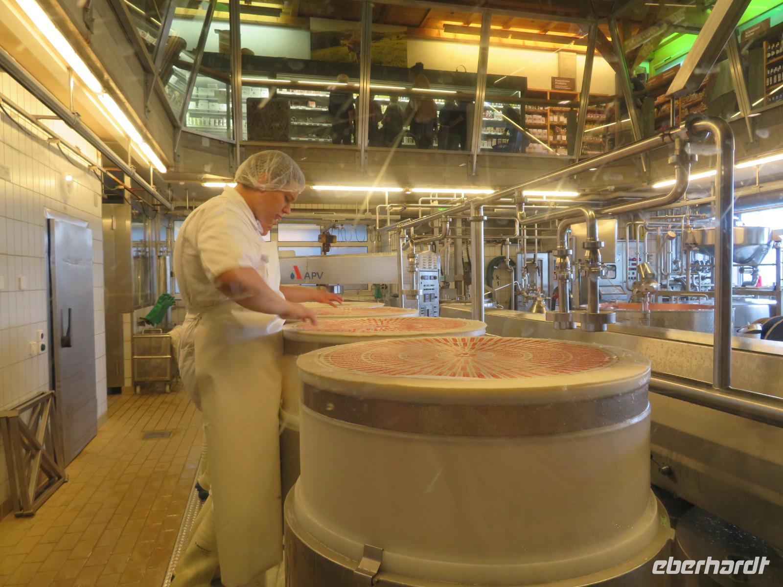 Am Nachmittag ist die Emmentaler Schaukäserei unser Ziel. Während einer Führung erleben wir zuerst, wie in den verschiedenen Jahrhunderten die Käseherstellung erfolgte. Wir schauen beim Käsen in der Holzhütte über dem offenen Feuer zu. In der ehemaligen Käserei von 1950 sehen wir, wie langsam Technik die schwere Arbeit erleichtert. In der heutigen modernen Produktion mit automatisierten Abläufen, aber auch immer noch per Muskelkraft sehen wir, wie die großen Käselaibe entstehen. Auf dem neuen Königsweg erfahren wir viel über die Geschichte des Emmentaler Käses aber auch, wie die berühmten Löcher in den Emmentaler Käse kommen. Es wird ganz spezielle Säure der Milch zugesetzt und diese bildet Gasblasen im Käse. Daraus entstehen dann die Löcher im Käse. Zum Schluss dürfen wir den Käse verkosten und den Geschmack der verschiedenen Reifegrade probieren. Anschließend bringt uns der Bus nach Interlaken zurück.