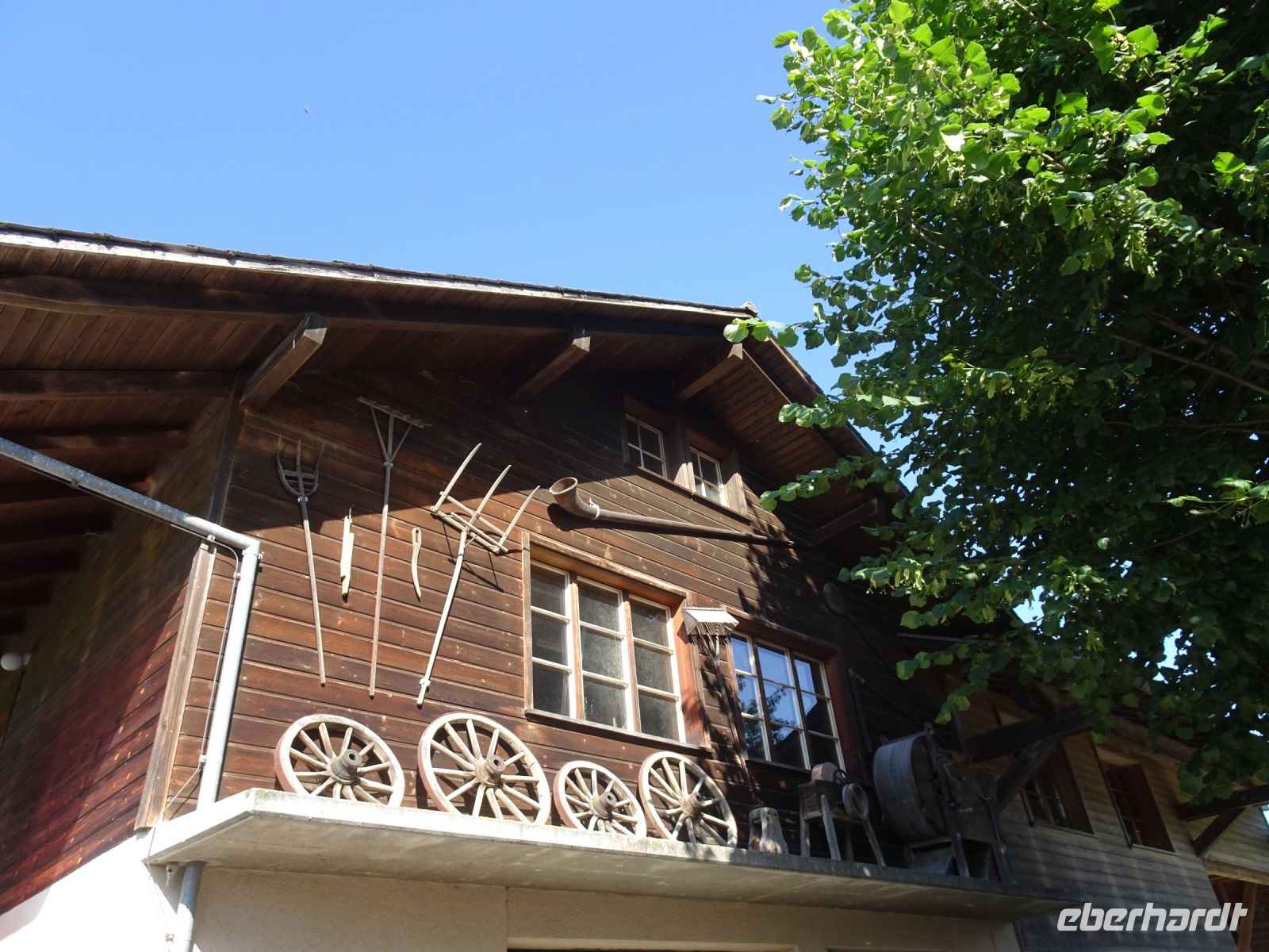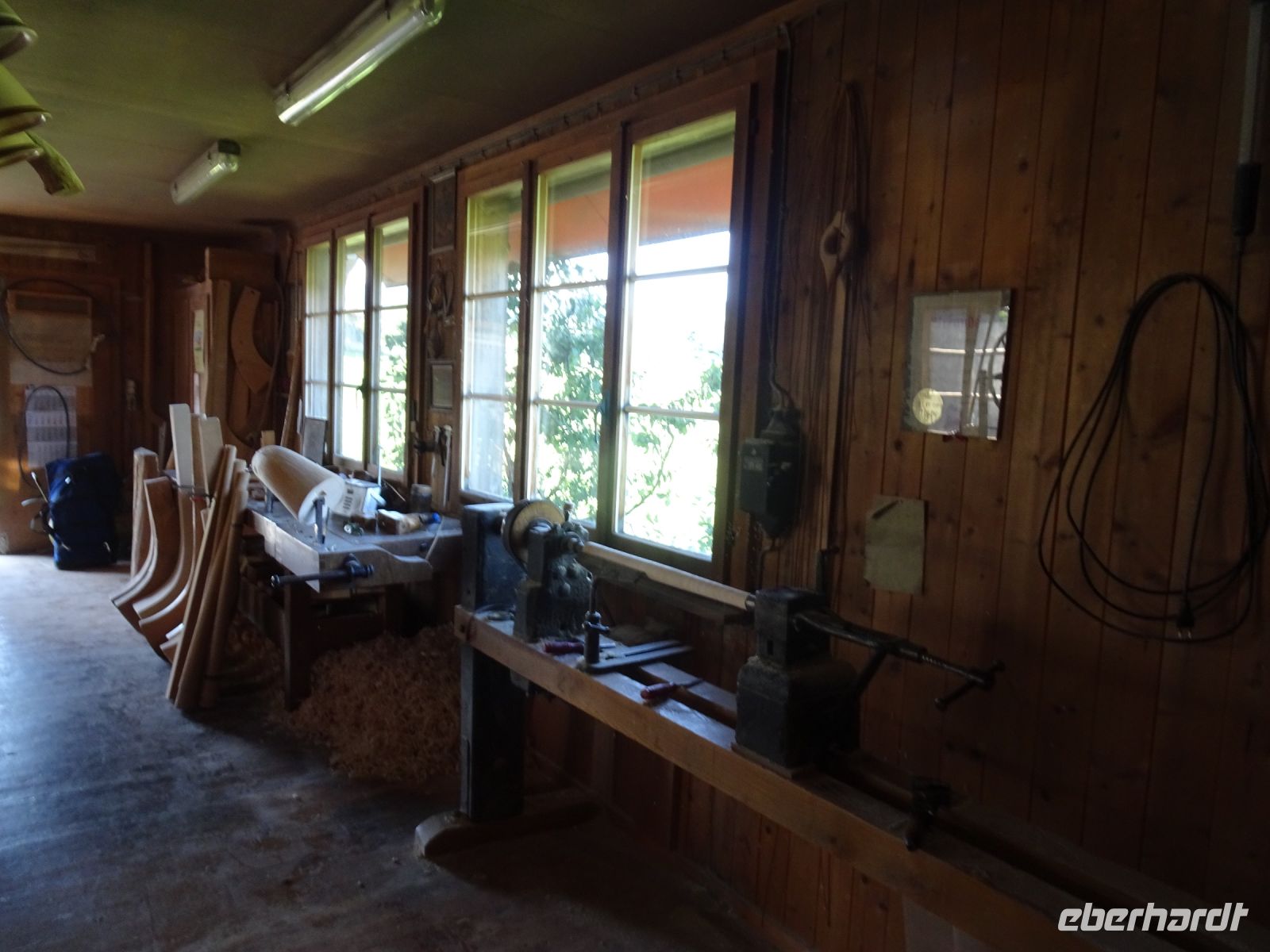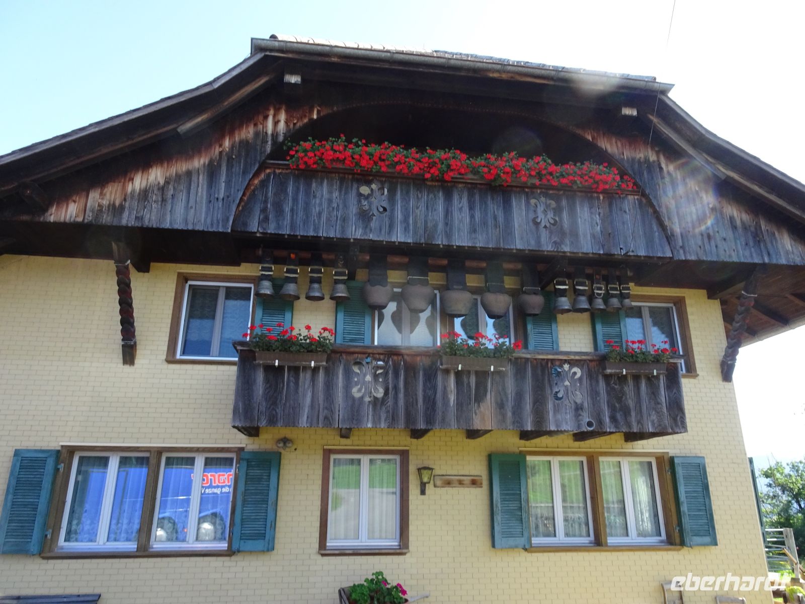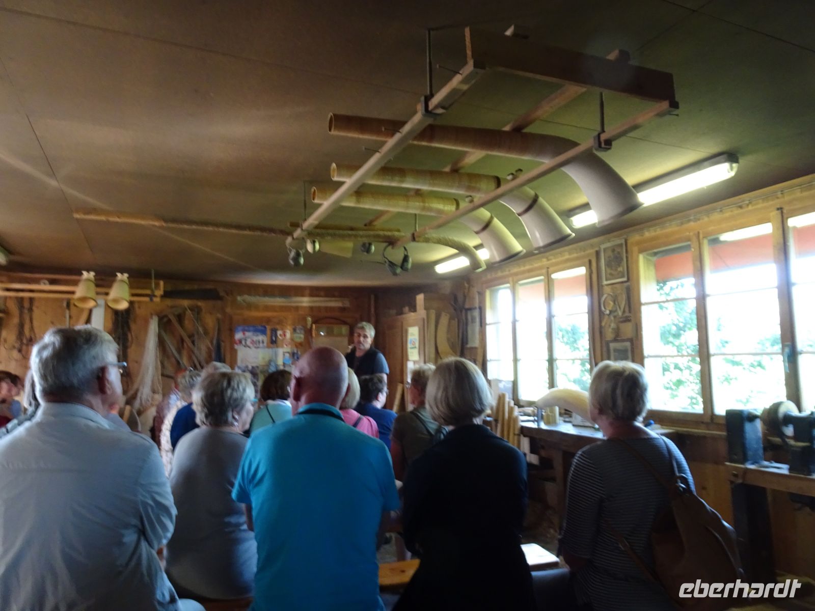 Ab 7.00 gibt es Frühstück, eine Dame in regionalem Gewand reicht uns den Kaffee. Bald brechen wir auf und nehmen Kurs auf Schweizer Traditionen. Zunächst besuchen wir eine Alphornmacherei. Bei einem interessanten Vortrag erfahren wir viel über das Leben der Familie, die seit fast einhundert Jahren Alphörner herstellt. Der Großvater schnitzte sein Alphorn noch aus einem krummen Bäumchen und sein Freund brachte es irgendwie zum Klingen. Der Sohn, unser Gastgeber, arbeitet inzwischen mit modernen Methoden und verkauft Alphörner in alle Welt.