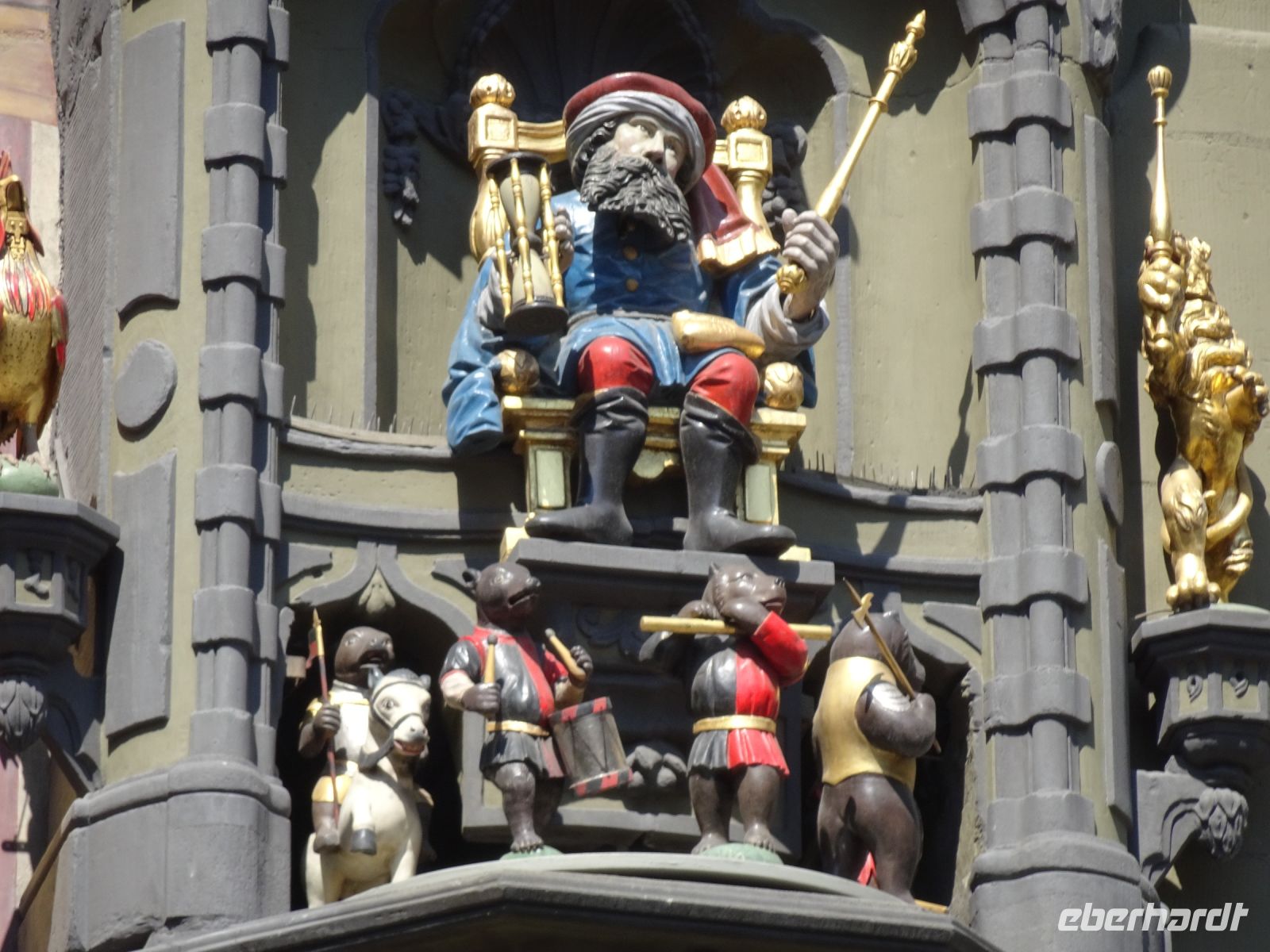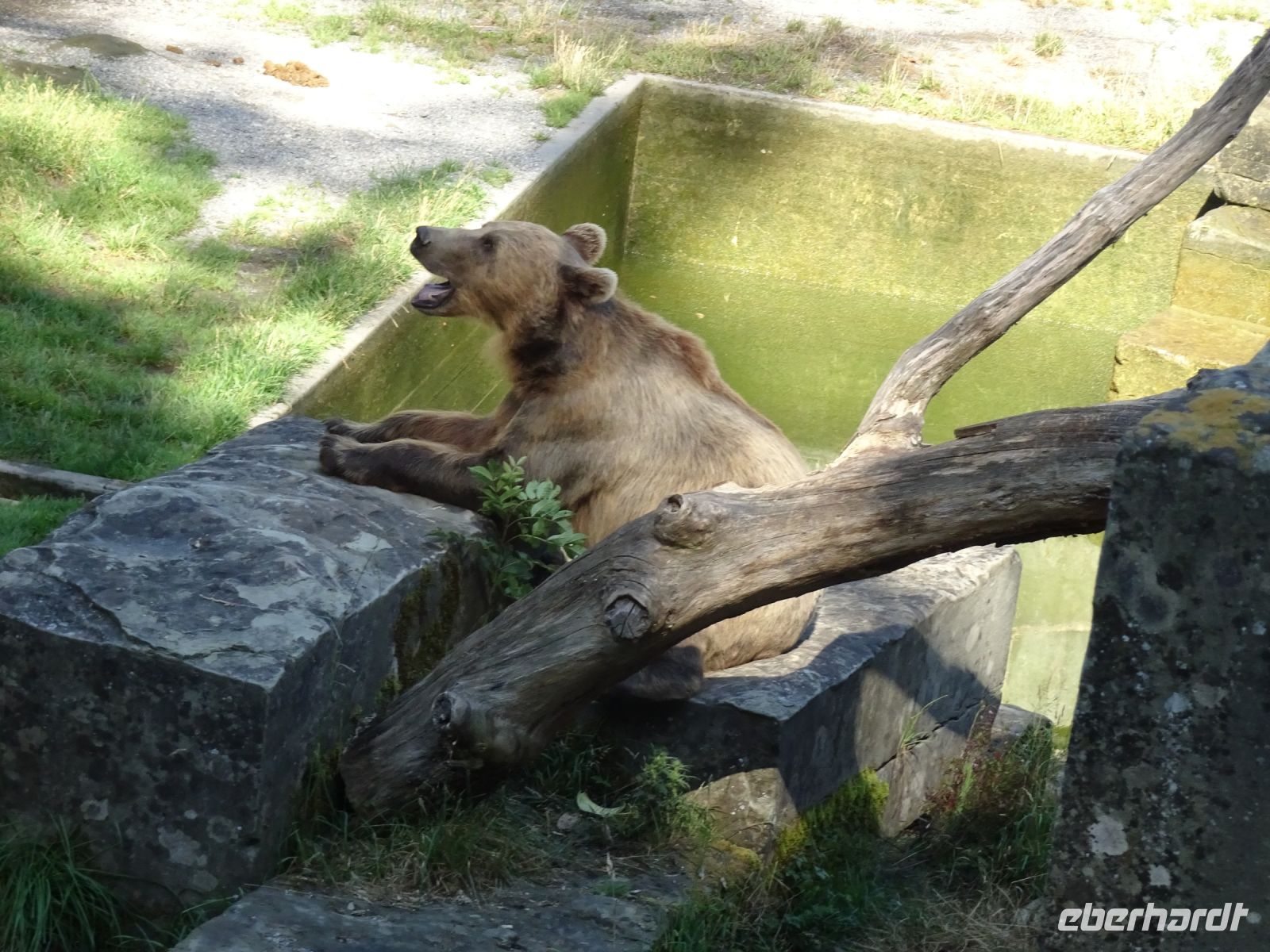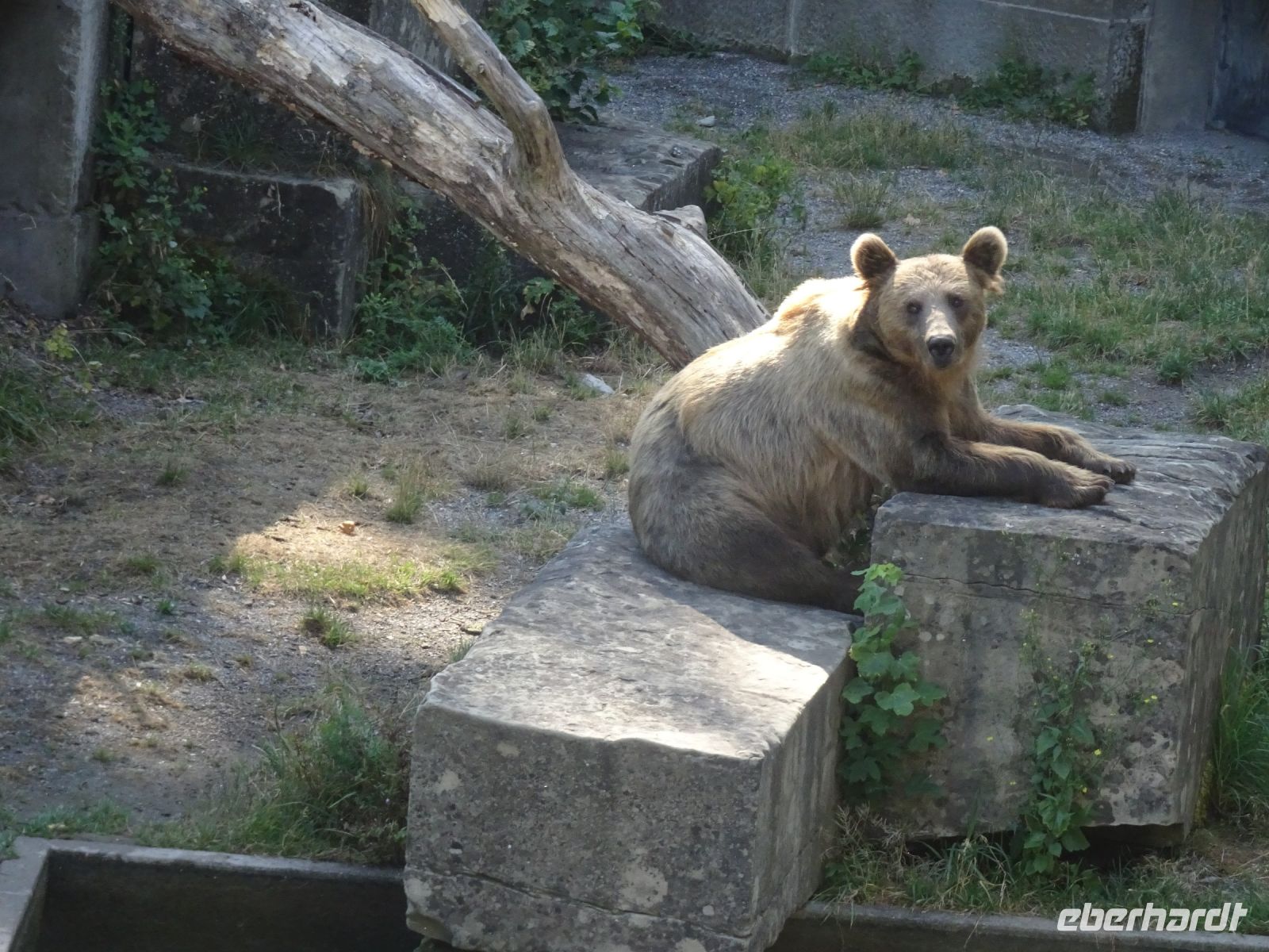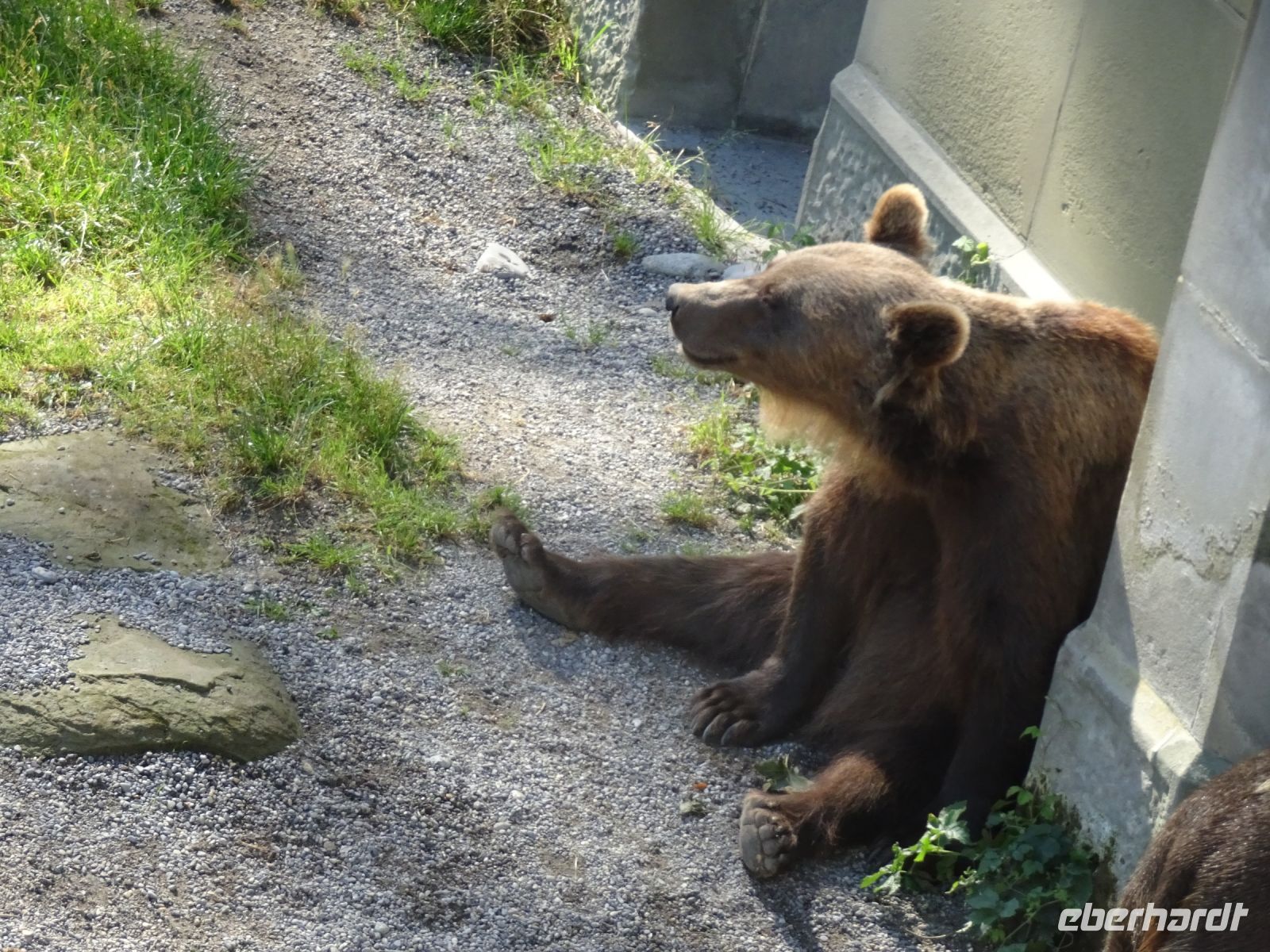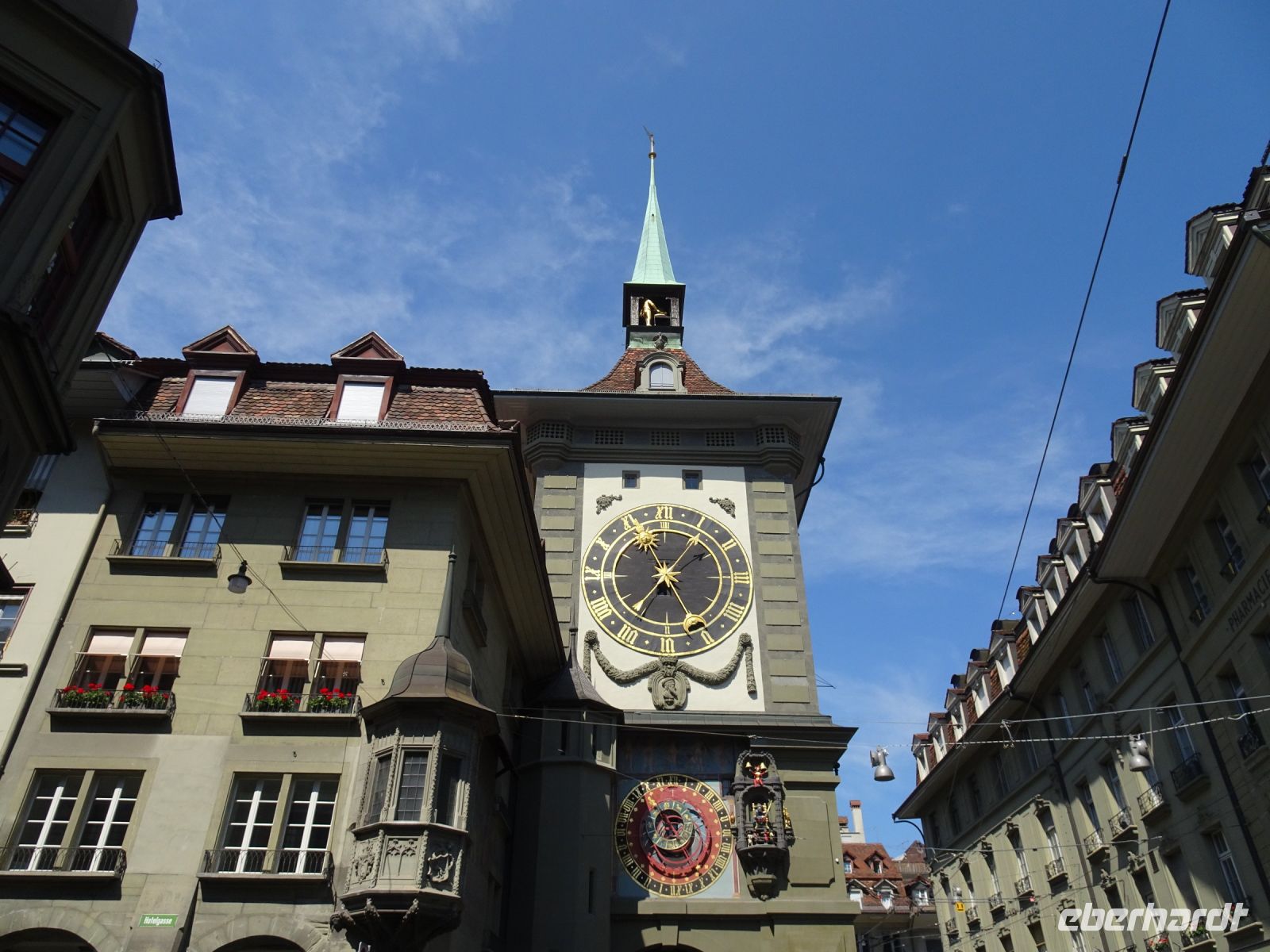 Den Vormittag verbringen wir in Bern. Unseren Stadtführer Daniel treffen wir am Bärengraben. Hier aalen sich drei Braunbären in der Sonne. Die Lebensbedingungen erscheinen uns kritisch, aber Daniel klärt uns auf, dass die Bären sich hier nur vorübergehend aufhalten, da sie ansonsten im Bärengarten wohnen und dort viel Platz zum Bärenwohlfühlen ist. Na prima. Mit dem Bus fahren wir zum Rosengarten, wo wir nicht nur die schönen Blumen bewundern können, sondern auch eine fantastische Aussicht auf Bern haben. Noch ein Stück fahren wir mit dem Bus, dann steigen wir aus und gehen zu Fuß weiter. Daniel zeigt uns die schönsten Straßen und wichtigsten Gebäude und gibt uns Tipps, wo wir uns um 12 Uhr am besten postieren, um das mechanische Wunder der Zeituhr zu beobachten. Zwei Stunden stehen nun für eigene Erkundungen zur Verfügung.
