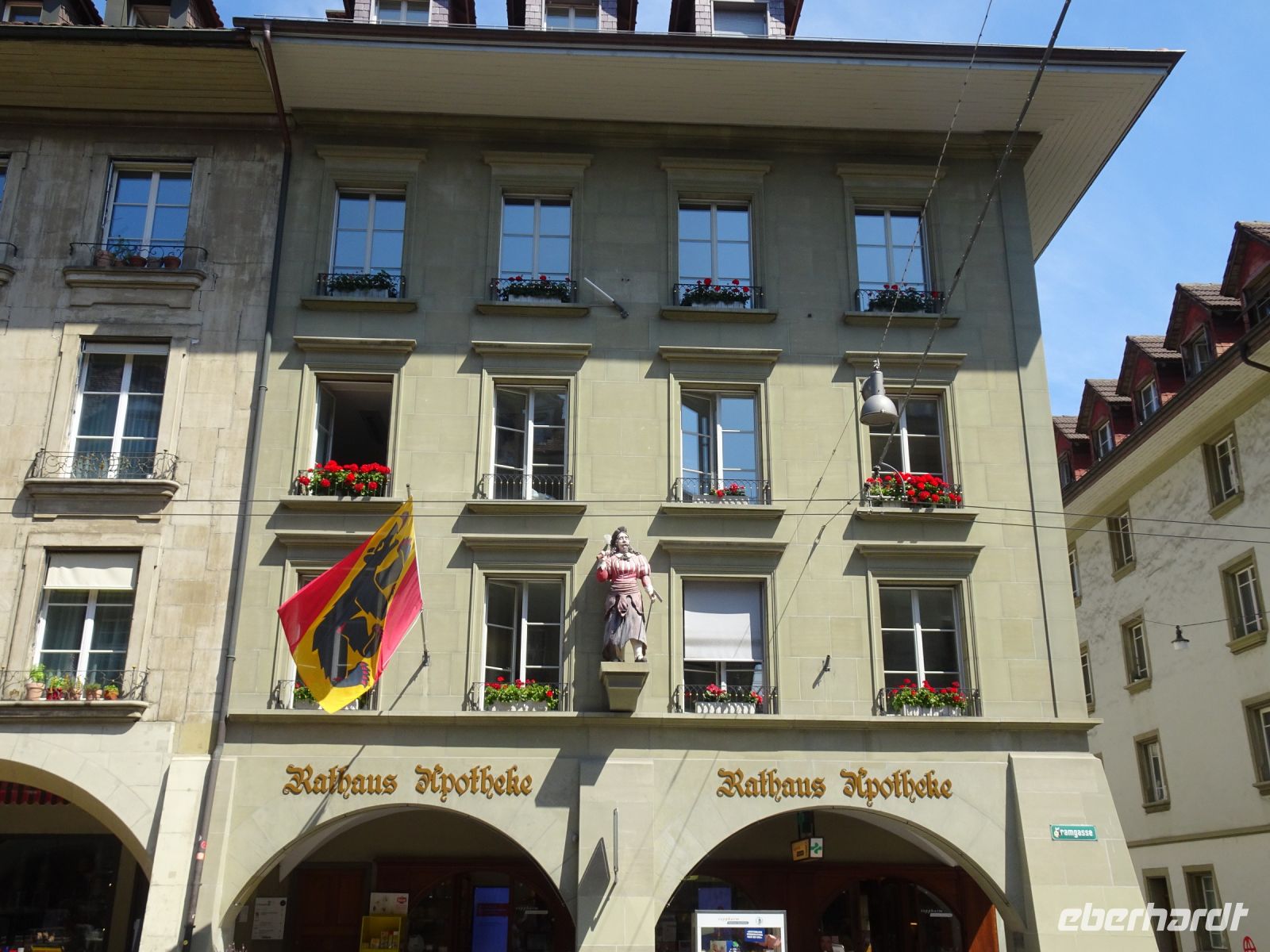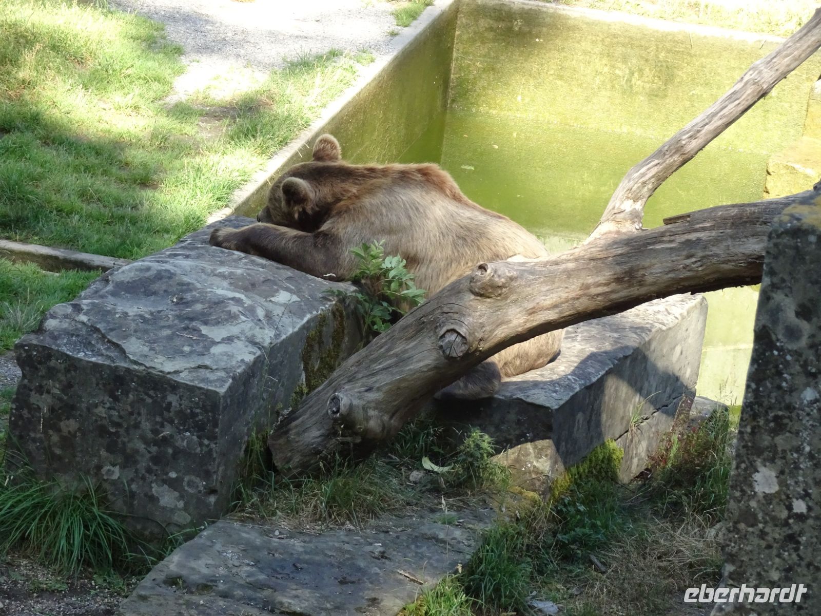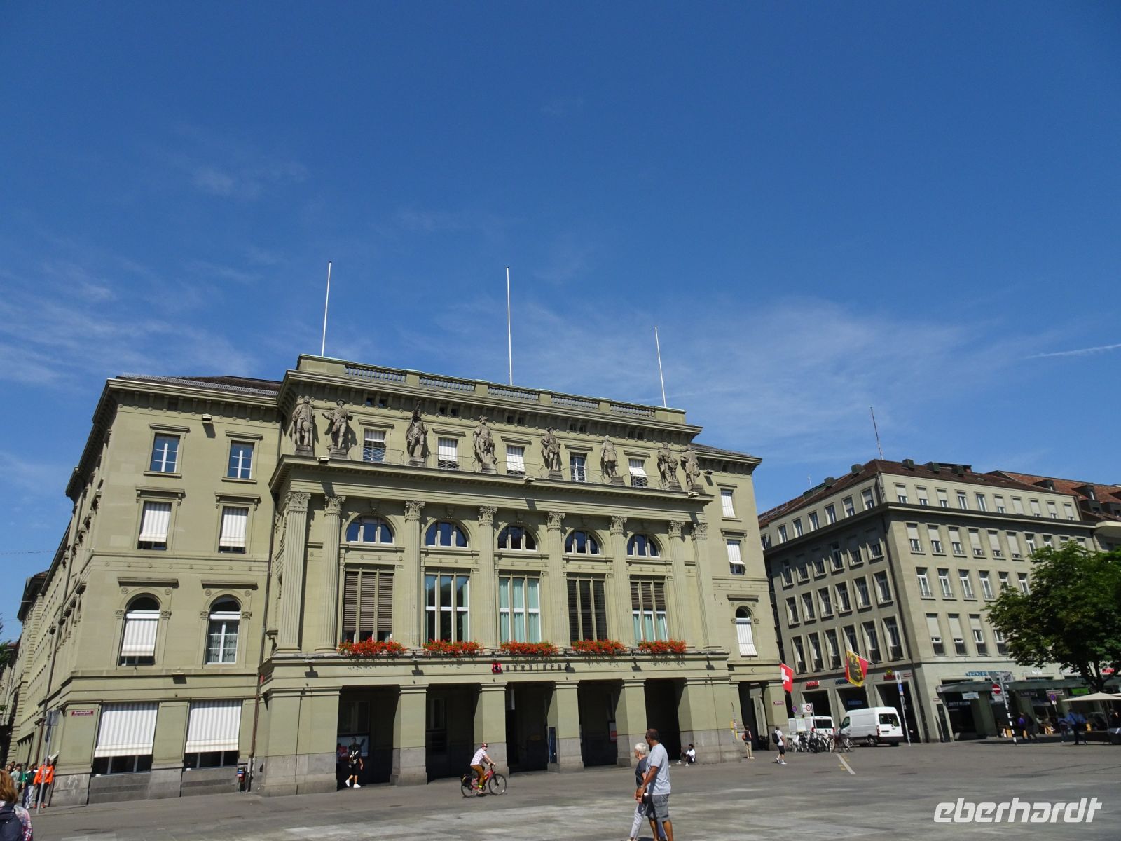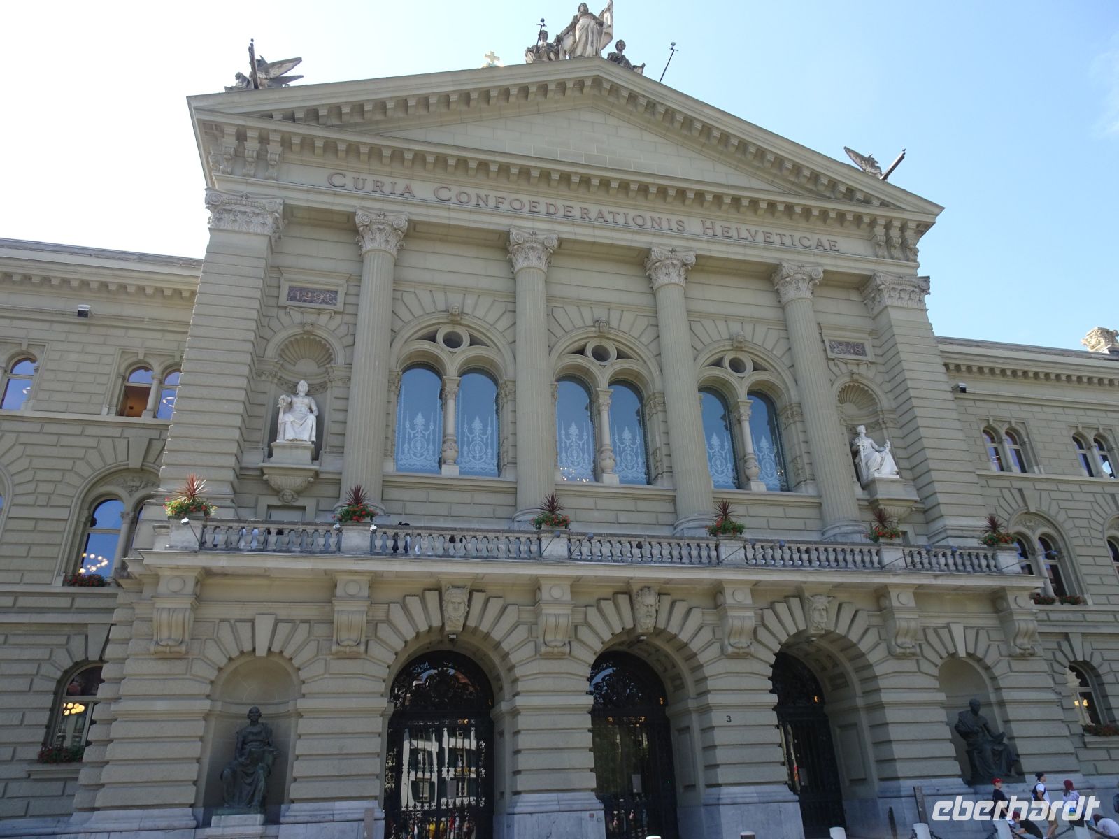 Den Vormittag verbringen wir in Bern. Unseren Stadtführer Daniel treffen wir am Bärengraben. Hier aalen sich drei Braunbären in der Sonne. Die Lebensbedingungen erscheinen uns kritisch, aber Daniel klärt uns auf, dass die Bären sich hier nur vorübergehend aufhalten, da sie ansonsten im Bärengarten wohnen und dort viel Platz zum Bärenwohlfühlen ist. Na prima. Mit dem Bus fahren wir zum Rosengarten, wo wir nicht nur die schönen Blumen bewundern können, sondern auch eine fantastische Aussicht auf Bern haben. Noch ein Stück fahren wir mit dem Bus, dann steigen wir aus und gehen zu Fuß weiter. Daniel zeigt uns die schönsten Straßen und wichtigsten Gebäude und gibt uns Tipps, wo wir uns um 12 Uhr am besten postieren, um das mechanische Wunder der Zeituhr zu beobachten. Zwei Stunden stehen nun für eigene Erkundungen zur Verfügung.