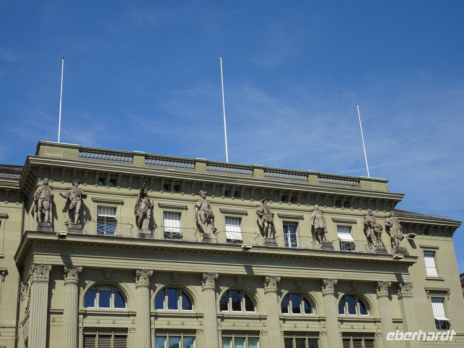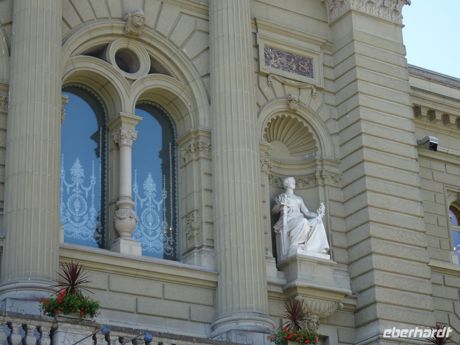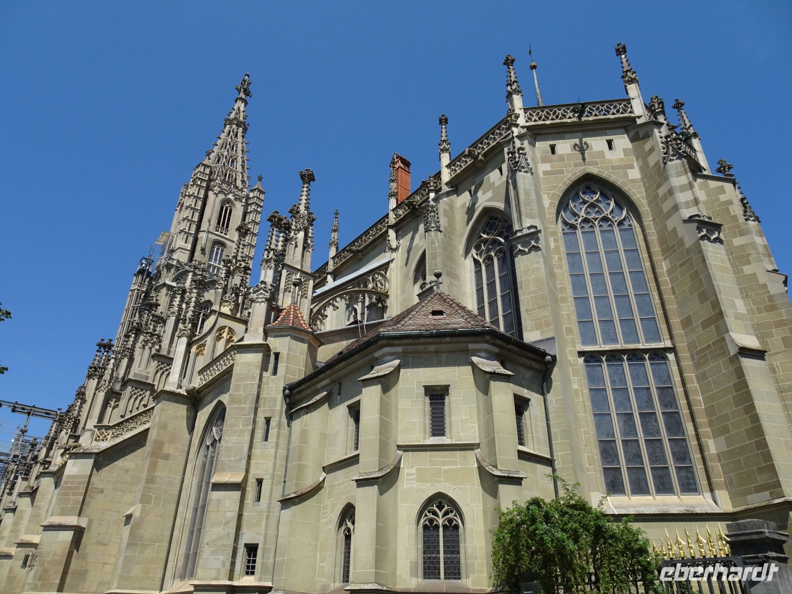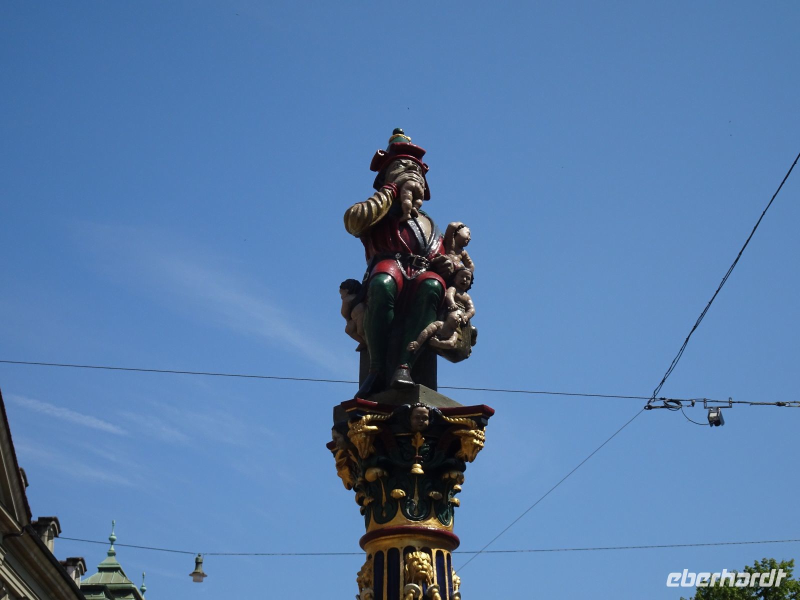 Den Vormittag verbringen wir in Bern. Unseren Stadtführer Daniel treffen wir am Bärengraben. Hier aalen sich drei Braunbären in der Sonne. Die Lebensbedingungen erscheinen uns kritisch, aber Daniel klärt uns auf, dass die Bären sich hier nur vorübergehend aufhalten, da sie ansonsten im Bärengarten wohnen und dort viel Platz zum Bärenwohlfühlen ist. Na prima. Mit dem Bus fahren wir zum Rosengarten, wo wir nicht nur die schönen Blumen bewundern können, sondern auch eine fantastische Aussicht auf Bern haben. Noch ein Stück fahren wir mit dem Bus, dann steigen wir aus und gehen zu Fuß weiter. Daniel zeigt uns die schönsten Straßen und wichtigsten Gebäude und gibt uns Tipps, wo wir uns um 12 Uhr am besten postieren, um das mechanische Wunder der Zeituhr zu beobachten. Zwei Stunden stehen nun für eigene Erkundungen zur Verfügung.