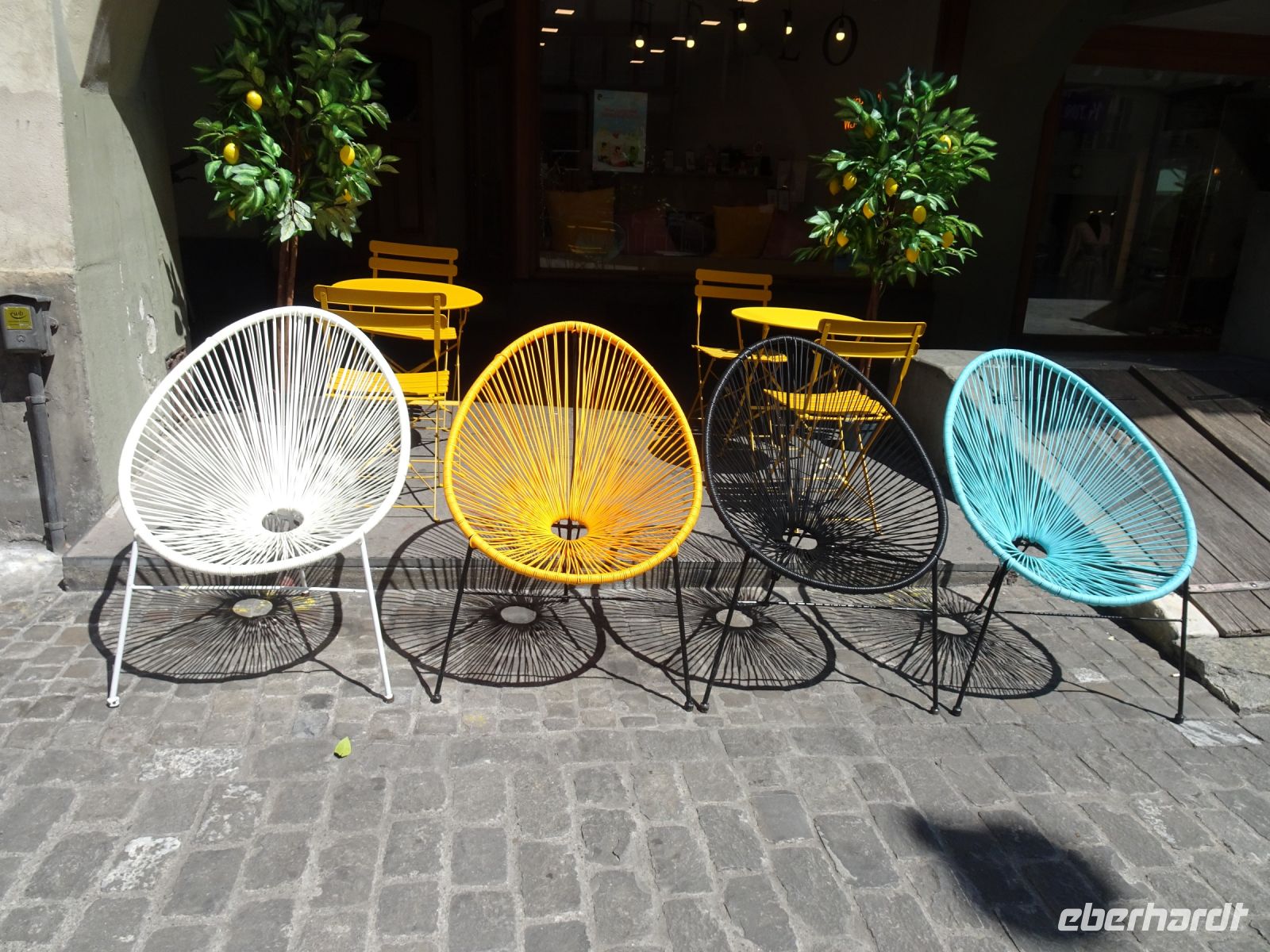 Das Wetter ist uns wieder hold, die Sonne scheint, der Himmel ist blau. Ein guter Tag, um eine Pause am Brienzersee einzulegen. Ein gemütlicher Spaziergang führt am Ufer entlang, an einigen Stellen kannten sich kostenlos Liegestühle ausleihen und bequem die Aussicht auf den See und die traumhafte Umgebung zu genießen.
