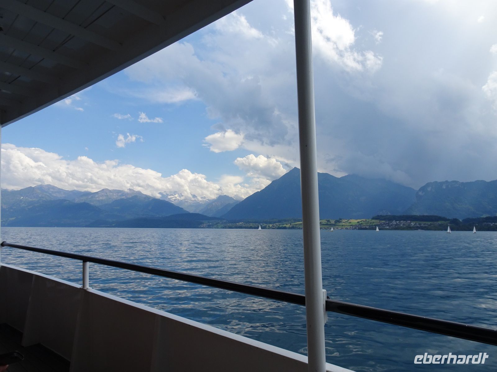 Während der zwei Stunden Fahrt erleben wir, welche verschiedenen Witterungen auf einem See eintreten können. Vom schönsten Sonnenschein über Blitz, Donner und Regen ist alles dabei. Dennoch bleibt es eine vergnügliche Fahrt und es ist Zeit, sich noch ein bisschen besser kennenzulernen.