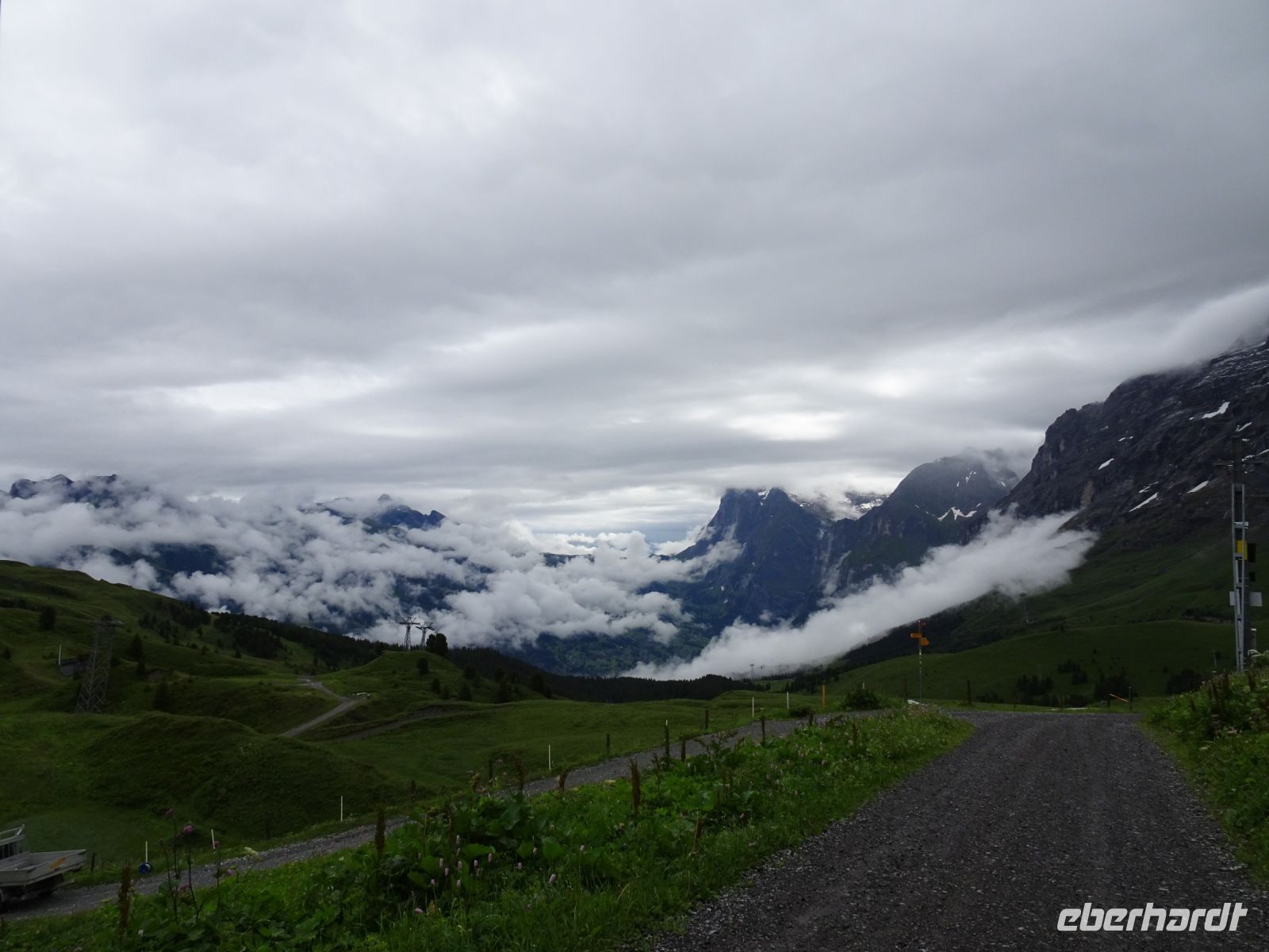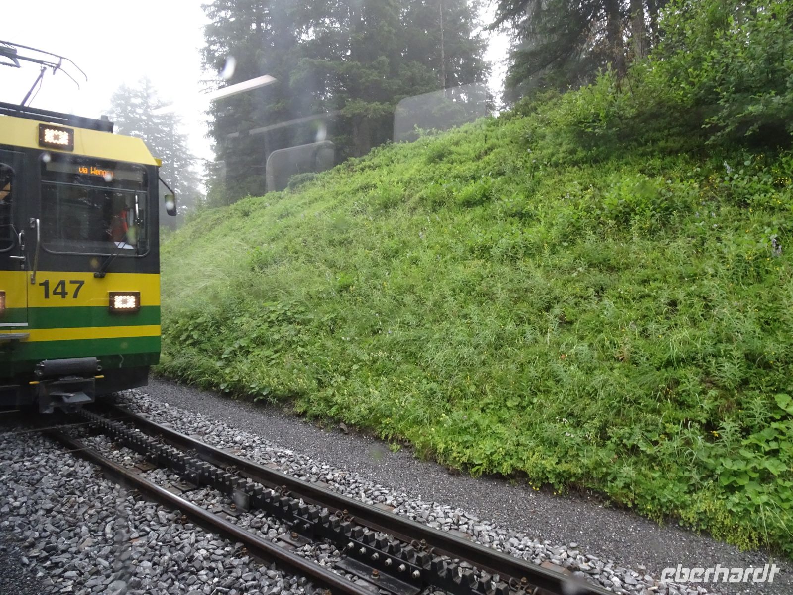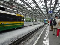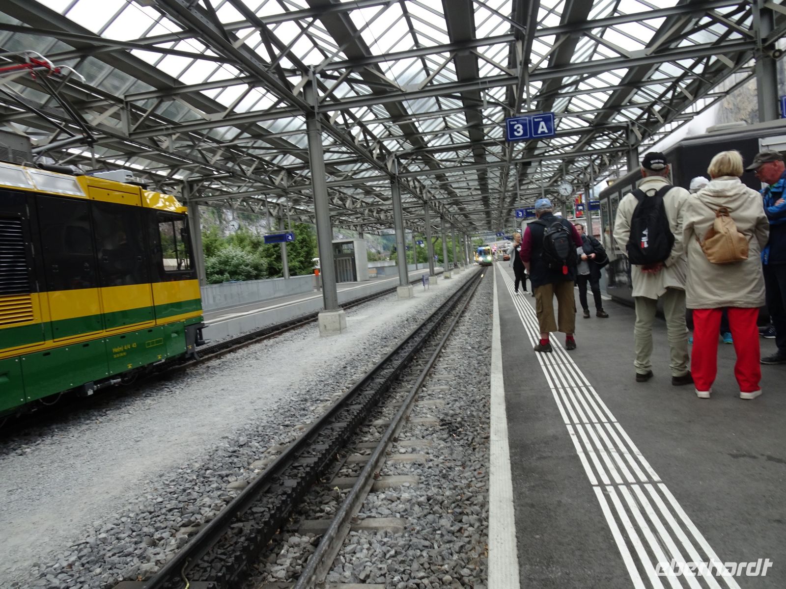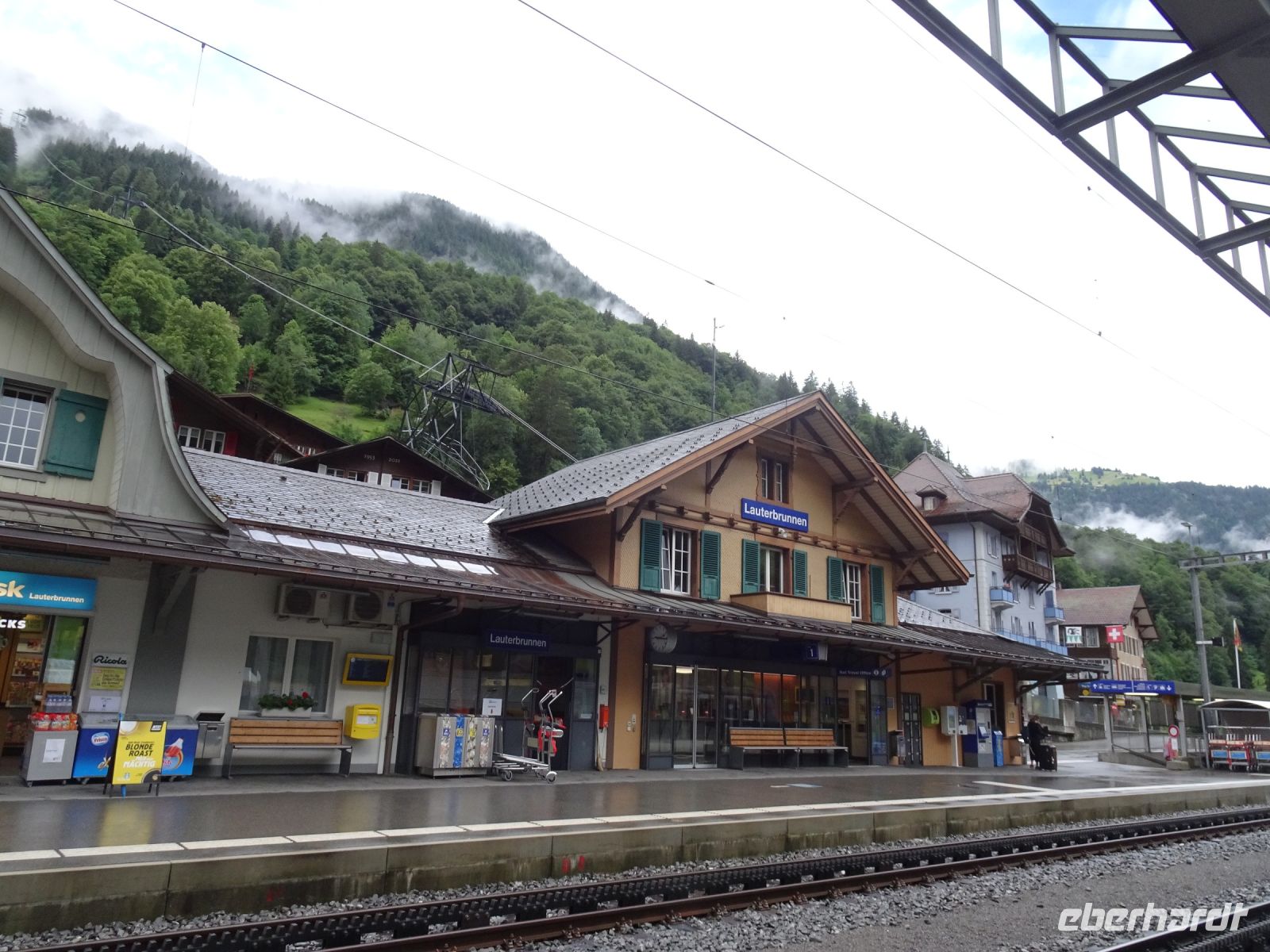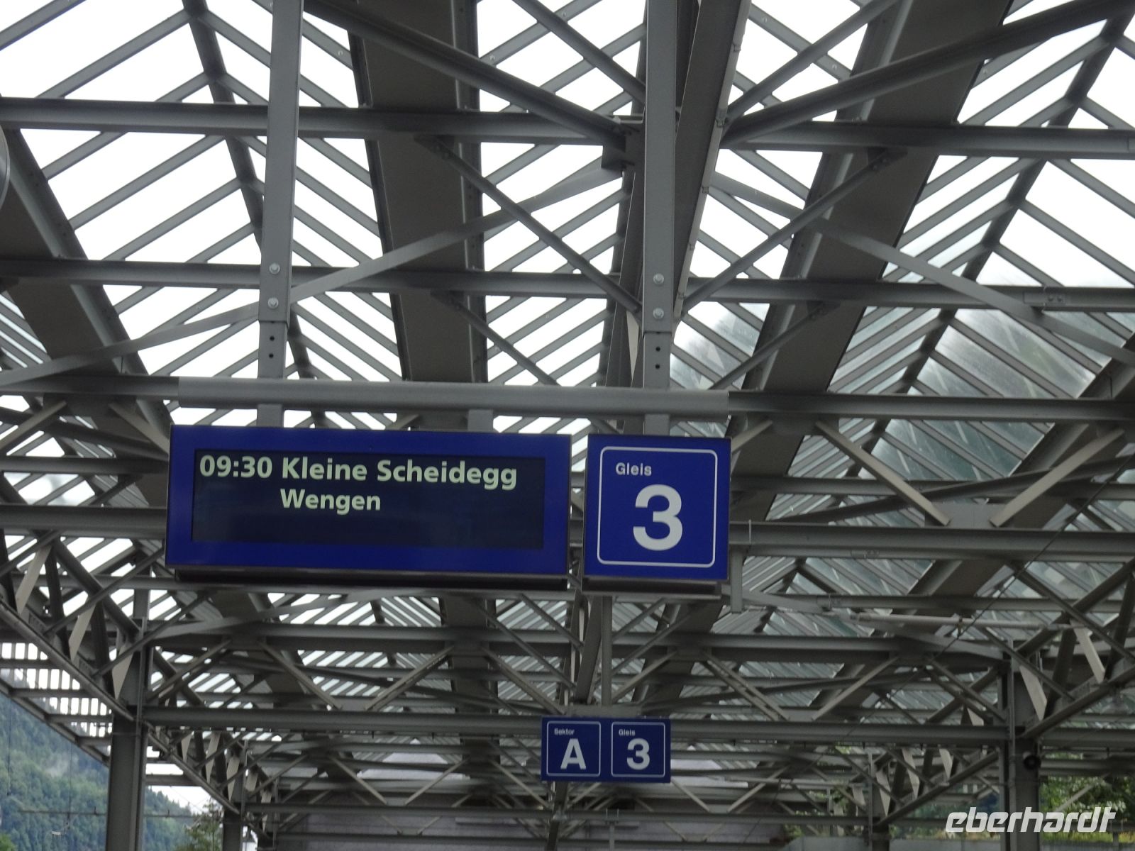 Alle Befürchtungen scheinen wahr zu werden. Der Himmel ist grau und es regnet. Ausgerechnet heute. Mit unserem Eberhardt Bus fahren wir nach Lauterbrunnen. Von hier aus geht es mit der Zahnradbahn weiter auf die Kleine Scheidegg. Weder Eiger, noch Mönch, noch Jungfrau lassen sich blicken. Ab und zu ist eine Bergspitze zu sehen, es gibt hier also welche. Rührige Bahnarbeiter begrüßen uns und zeigen uns, in welchem Wagen der Jungfraubahn Plätze für uns reserviert sind. Und es gibt eine Überraschung: wir müssen nicht am Eigergletscher umsteigen, sondern fahren bis zum Jungfraujoch durch. Unterwegs legt der Zug einen Stopp ein. Mitten im Tunnel gibt es große Fenster, von denen man einen einmaligen Blick auf den Gletscher hat. Heute leider nicht. Wir dürfen trotzdem aussteigen und uns das milchige Weiß anschauen. Am Jungfraujoch angekommen, gehen wir gemeinsam zur Haupthalle, von der aus ein Rundweg beginnt, den jeder individuell und in eigenem Tempo ablaufen kann. Etwa eine Stunde ist dafür kalkuliert, je nachdem wie lange man sich an den einzelnen Stationen aufhält, können es auch eineinhalb oder zwei Stunden werden, bleibt immer noch eine Stunde für die kulinarische Versorgung. Restaurants gibt es hier genug. Vielleicht liegt es an der katastrophalen Wettervorhersage, dass außer uns nur noch ein paar indische Gruppen und eine Gruppe Mönche heute hier sind. Im Vergleich zu anderen Zeiten ist es relativ leer. Den Rundgang beginnen wir am besten mit der Auffahrt zur Sphinx. Außer, es ist gerade eine Gruppe Inder angekommen. Mit dem Fahrstuhl erreichen wir eine Aussichtsplattform und mit ein bisschen Geduld und Glück, so wie bei uns, verzieht sich der Nebel und es eröffnet sich eine kaum zu beschreibende Bergwelt. Zurück von der Plattform folgen wir den Ausschilderungen Alpine Sensation. Hier erwartet den Besucher eine überdimensionale Schneekugel, für die wir uns etwas Zeit nehmen. Melodisch untermalt wird hier der Tagesablauf in einem Bergdorf dargestellt. Begleitet von fröhlichen Jodelgesängen bewegen sich Figuren und Eisenbahnen, öffnen sich Fenster und gehen wieder zu, ein unterhaltsames Spektakel. Wir folgen dem Weg weiter und treffen auf den Erfinder der Jungfraubahn. Anschließend gelangen wir in den Eispalast. Hier sind diverse aus Eis geschnitzte Figuren zu sehen und sogar eine spezielle Weinsorte, die in eingefrorenen Fässern reift. Hat man diese Attraktionen absolviert, bleibt noch der Weg zum Aletschgletscher. Mit passendem Schuhwerk kann man auf dem Aletschgletscher herumspazieren. Vollgesaugt mit Erlebnissen, begeben wir uns zum Bahnhof. Innerhalb einer halben Stunde erreichen wir das Terminal vom Eigergletscher und steigen hier in den Eiger-Express um. Dieser ist eine neu eröffnete Gondelbahn, die uns nach Grindelwald bringt. Etwas außerplanmäßig erwartet uns hier nicht Wolfram mit dem Eberhardt Bus, da er zu einem Notfall gerufen wurde und so fahren wir eben mit der Bahn nach Interlaken zurück.
