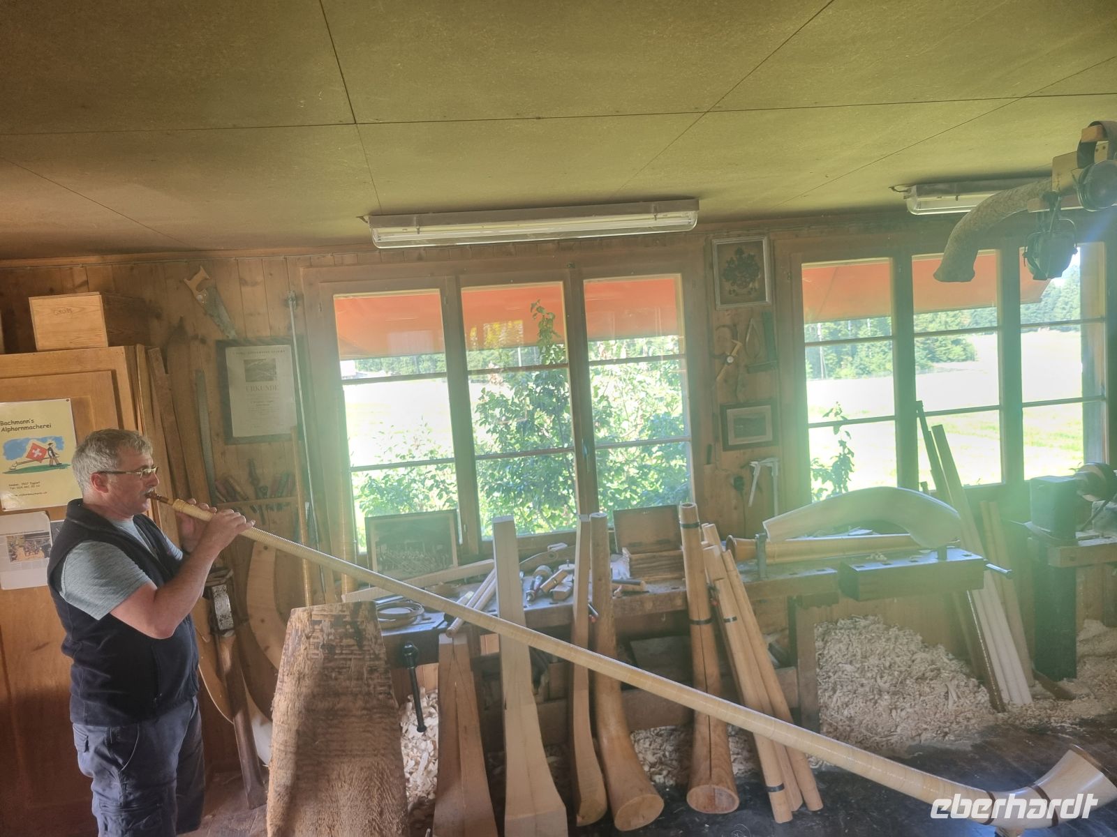 Ein weiterer Höhepunkt unserer Reise führte uns ins berühmte Emmental – eine Region, die weit mehr zu bieten hat als grüne Hügel und den berühmten Käse. Auf unserer Rundfahrt erlebten wir eindrucksvoll, wie im Emmental altes Handwerk, kulinarische Spezialitäten und gelebte Kultur aufeinandertreffen. Am Vormittag besuchten wir zunächst Bachmann's Alphornmacherei, wo wir spannende Einblicke in die Kunst des Alphornbaus erhielten. In liebevoller Handarbeit entstehen hier aus Holzklötzen die imposanten Instrumente, die bis heute fest zur Schweizer Musikkultur gehören. Herr Bachmann führte uns durch seine Werkstatt und erklärte mit viel Herzblut die einzelnen Arbeitsschritte – vom rohen Baumstamm bis zum volltönenden Alphorn. Anschließend ging es weiter zur Kambly Erlebniswelt in Trubschachen. In der stilvoll gestalteten Kekswelt konnten wir die traditionsreichen „Guetzli“ nicht nur verkosten, sondern auch deren Geschichte und Herstellung kennenlernen. Natürlich durfte ein ausgiebiger Besuch im Laden mit feinen Mitbringseln nicht fehlen. Den Nachmittag verbrachten wir in der Emmentaler Schaukäserei in Affoltern. Hier tauchten wir ein in die Welt des berühmten Emmentaler AOP. Bei einer Führung erfuhren wir, wie aus Milch, Zeit und viel Sorgfalt die Laibe mit den typischen Löchern entstehen. Der Besuch endete mit einer kleinen Degustation. Mit vielen Eindrücken und dem Gefühl, dem „echten Emmental“ ein Stück nähergekommen zu sein, traten wir am späten Nachmittag die Rückfahrt an. Ein rundum gelungener Tag, der uns die traditionellen Seiten der Schweiz auf sehr persönliche Weise näherbrachte.