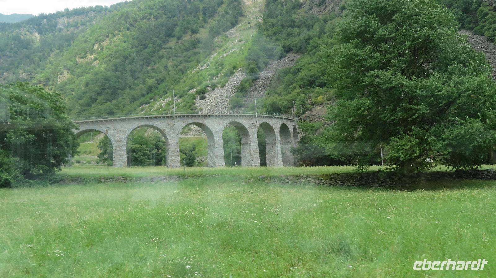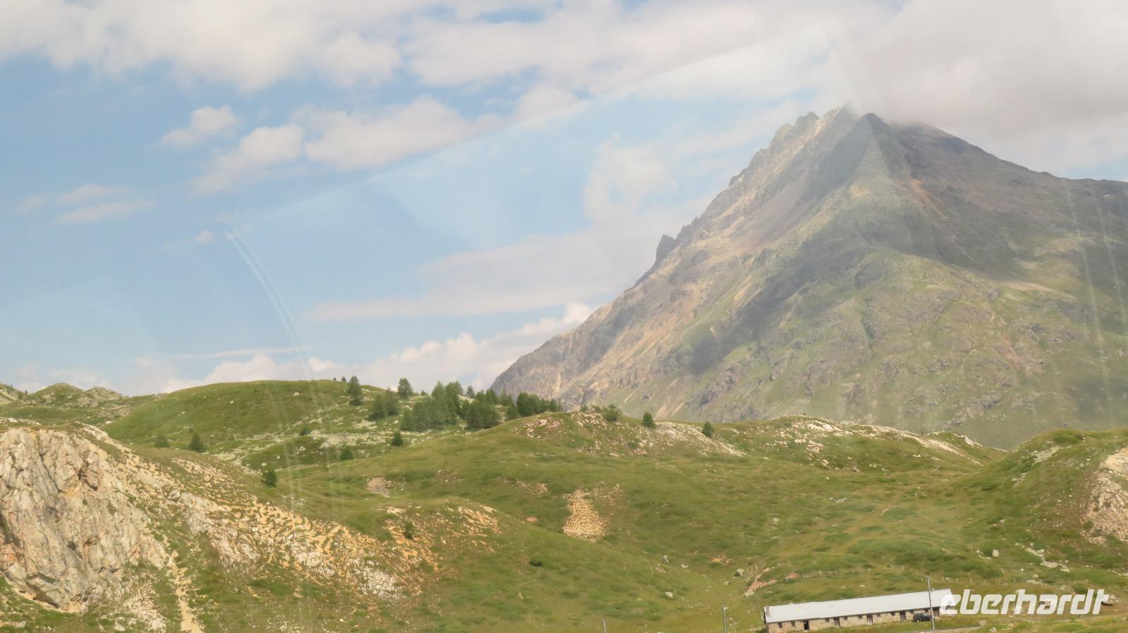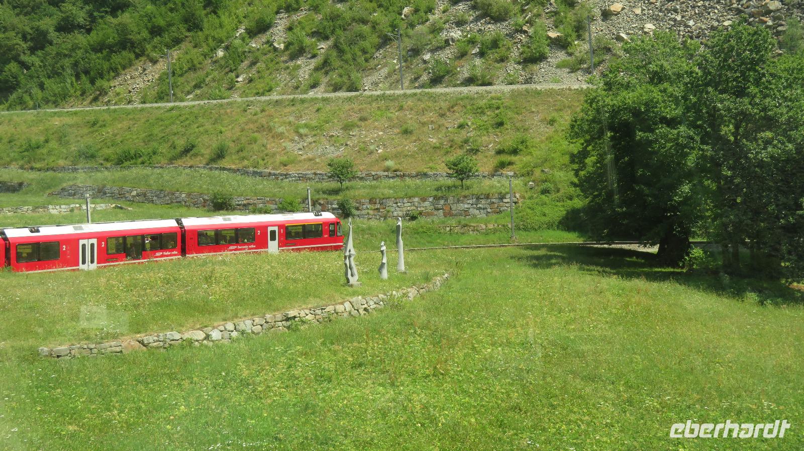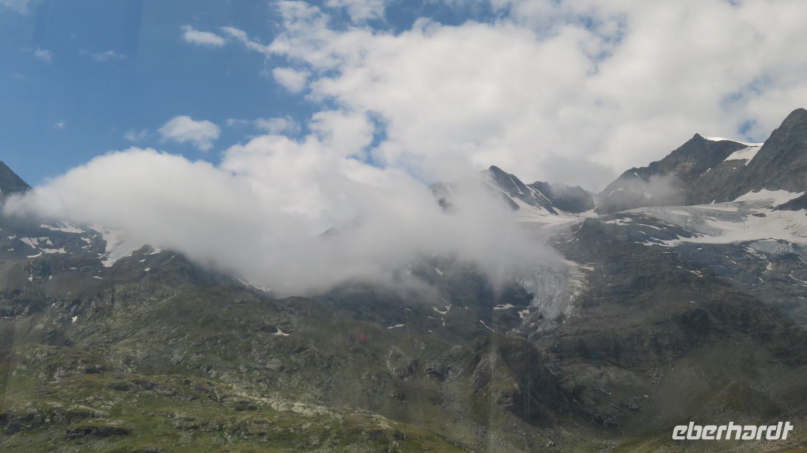 Wir freuten uns auf die schöne Fahrt mit dem Bernina Express. Wir starteten wieder in Tiefencastel und fuhren bis nach Tirano. Eine Fahrt von den Alpen in das mediterane Tirano auf der schönsten Bahnstrecke der Alpen erwartete uns. Den ersten Höhepunkt gab es In Filisur, dort konnten wir das Landwasserviadukt bestaunen. Immer wieder folgten spektakuläre Aussichten. Der Zug erreichte seinen höchsten Punkt in 2253m Höhe den Bahnhof Ospizio Bernina. Nun ging es stätig abwärts. Durch das Valposchiavo Tal vorbei am gleichnamigen See erreichten wir das Kreisviadukt in Brusio. Das beeindruckendste Bauwerk des Bernina Express verlängert die Strecke um damit den Höhenunterschied auszugleichen. Von dort fuhr der Bernina Express als Straßenbahn nach Tirano. Dort angekommen spürten wir das besondere Klima. Es war sehr heiß. In einem typischen Restaurant kehrten wir zum Mittagessen ein. Anschließend fuhren wir auf den Bernina Pass auf 2330m Höhe. Vor uns lag der Morteratschgletscher, mit einer Länge von 6,4 km ist er der drittgrößte Gletscher der Ostalpen. Vorbei an St. Moritz erreichten wir wieder den Julierpass und unser Hotel. Das Wetter änderte sich und es fing an zu regnen.