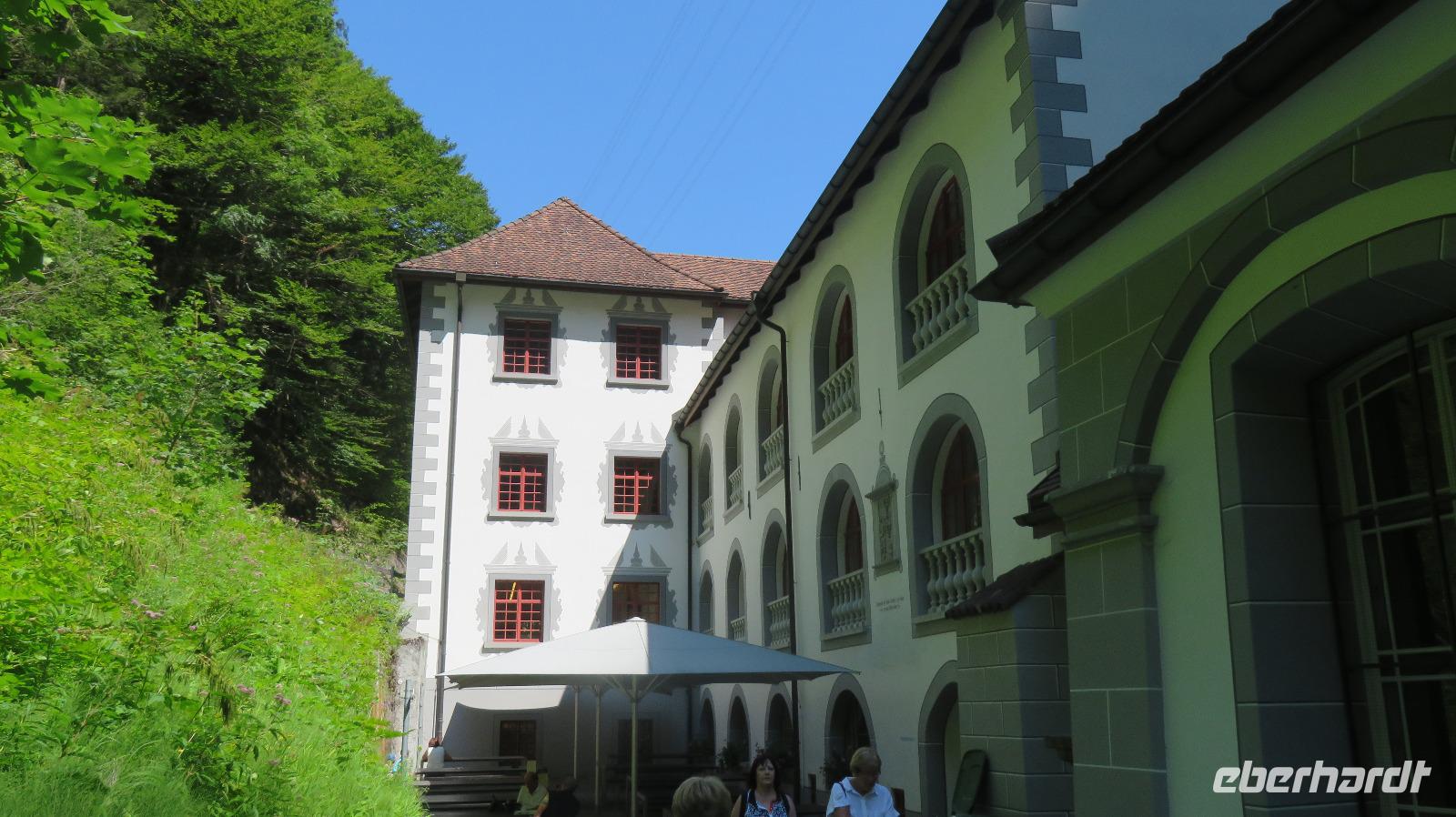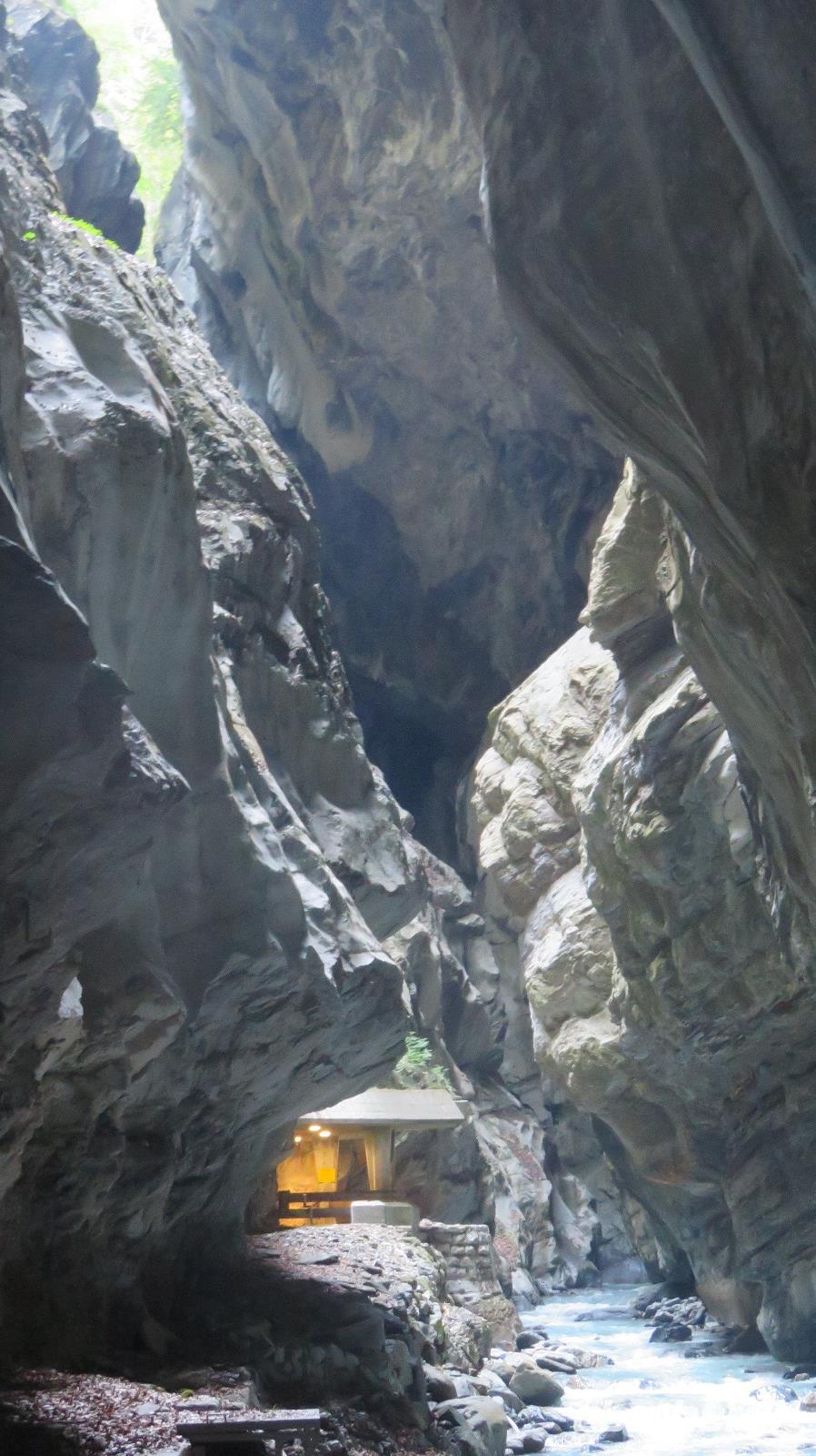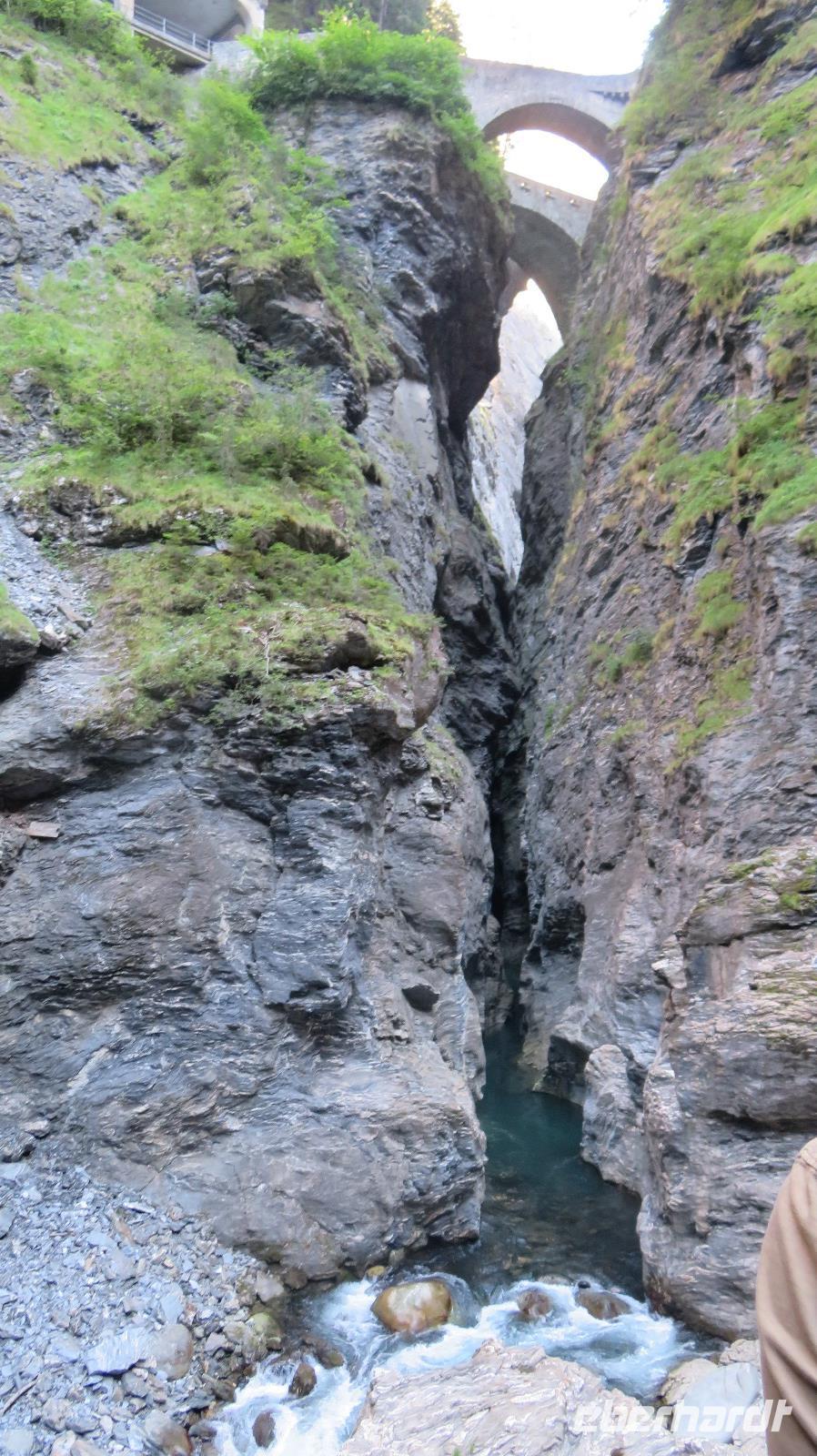 Heute besuchten wir die Taminaschlucht. Wir fuhren in den Kurort nach Bad Ragaz. Am Bahnhof brachte uns der Schluchtenbus auf etwas abenteuerlicher Strecke in das Alte Kurbad Bad Pfäffers. Es erwartete uns eine interessante Führung durch das ehemalige Kurbad und die Taminaschlucht. Bis 1963 fanden dort noch Kuren statt. Danach verfiel das Badehaus bis es erst 1983 saniert wurde. Eine interessante Ausstellung, alte Wannenbäder, die gut erhaltene Küche, einige Gästezimmer und die kleine Kapelle waren sehenswert. Bekannteste Gäste waren Johanna Spyri und Victor Hugo. Durch Zufall fanden Jäger 1240 eine heiße Quelle in der Taminaschlucht. Einige Zeit später wurde die Schlucht und die Quelle als Heilwasser genutzt. Die Wirkung des Wassers bestätigte auch der Arzt Paracelsus. Abenteuerlich wurden die Kurgäste an einem Seil in die Schlucht gelassen. Erst einige Jahre später wurden in der Schlucht Badehäuser gebaut. Ab 1840 wurde das Wasser in Holzleitungen nach Bad Ragaz geleitet wo es auch heute noch in den Kurhotels genutzt wird. Vorbei am Mainfeld wo die Bündner Herrschaft auf 107 ha Wein anbaut fuhren wir nach Savognin. Auch im Sommer bietet der Wintersportort die Savognin Bergbahn zu nutzen. Zuerst schwebten wir mit einem Sessellift über die Bergwiesen. Ab der Mittelstation fuhr uns die Kabinenbahn auf 2160m Höhe. Die phantastische Aussicht in die Graubündner Berge bei strahlend blauen Himmel ließ uns den Atem anhalten. Einige spazierten auf dem Enzianweg und betrachteten die Almblumen und andere ließen es sich auf der Berghütte munden. Anschließend besuchten wir die bekannte Viamala Schlucht. Schon der Blick von oben in die Schlucht versprach etwas Besonderes. Die steilen Felswände gehen 300m in die Tiefe. Nachdem wir 359 Stufen nach unten liefen bestaunten wir die Strudeltöpfe und die einzigartigen Felsformationen. Der Besuch war ein schöner Abschluss eines erlebnisreichen Tages.