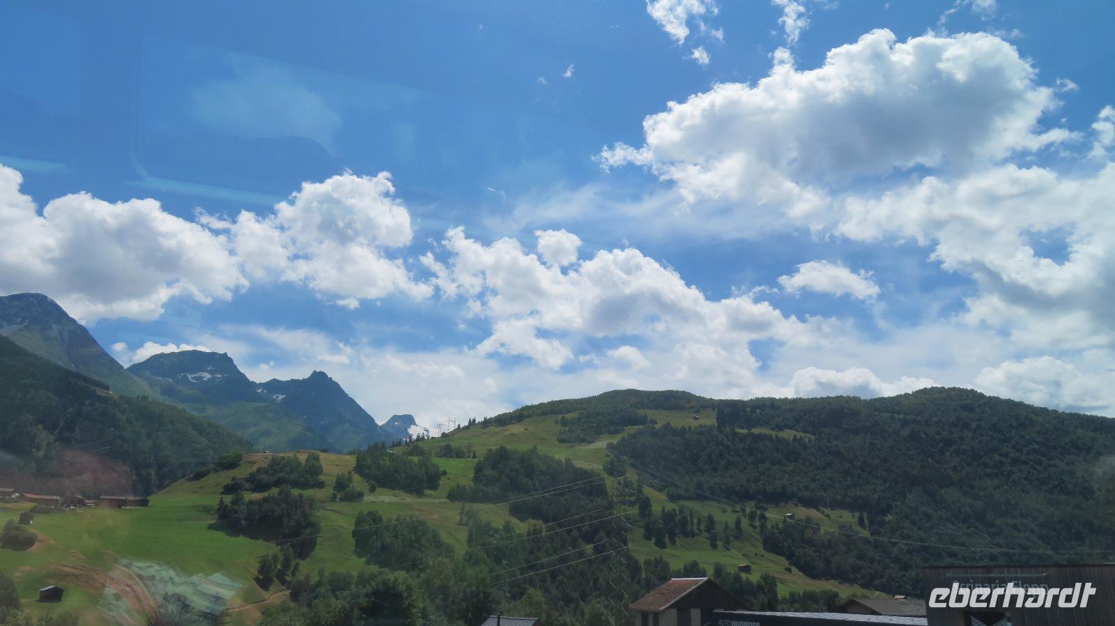 Voller Erwartungen starteten wir pünktlich in Dresden. Wir erreichten unseren letzten Zustieg in Ulm. Dort setzten wir unsere Fahrt fort und erreichten Bregenz und kurz danach die Grenze in St. Margarethen. Vorbei an Lichtenstein und Chur führte unsere Reise nach Tiefencastel. Im Hotel Albula & Julia wurden wir bereits erwartet. Es regnete und es entstand ein schöner Regenbogen. Wir hofften für Morgen auf schönes Wetter.