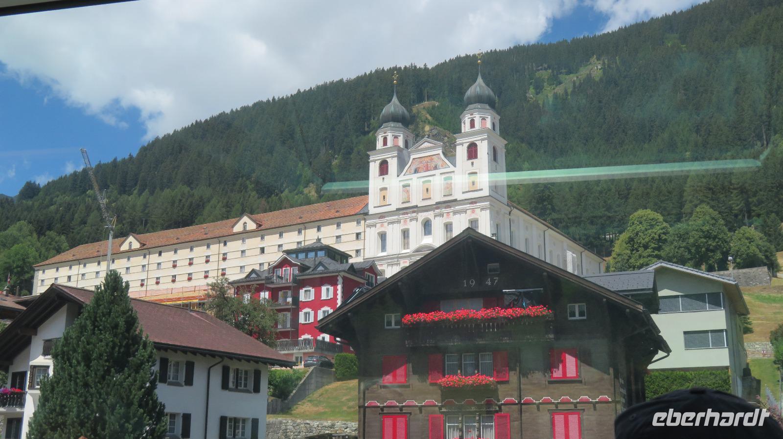 Der erste Blick am Morgen richtete sich auf den Himmel. Werden sich die Wolken verziehen? Gemütlich spazierten wir zum Bahnhof in Tiefencastel. Der Glacier Express wird auch als der langsamste Schnellzug der Welt bezeichnet. Im Panoramawagen nahmen wir Platz und fuhren nach Chur. Von dort fuhr der Zug in das atemberaubende Rheintal, auch „Gran Canyon der Schweiz" genannt. Durch wunderschöne Berglandschaft erreichten wir den 2033m hohen Oberalppass. Von dort führte uns die Reise vorbei am Kloster Disentis nach Andermatt. Mit dem Bus fuhren wir an der Schöllaschlucht vorbei, wo sich die legendäre Teufelsbrücke befindet. Nach immer wieder neuen Aussichten vorbei am Vierwaldstättersee erreichten wir Altdorf. Bekannt wurde der Ort durch die Apfelschuss Szene aus Wilhelm Tell, die Friedrich Schiller dort benannt hat. Auf dem Hauptplatz befindet sich das Wilhelm Tell Denkmal. Anschließend erreichten wir das Kloster Einsiedel und besichtigten die wunderschöne Klosterkirche. Im vorderen Teil der Kirche befindet sich eine achteckige Kapelle aus schwarzen Marmor, wo sich auch eine schwarze Madonna zu sehen ist. Auf unserer Rückreise fuhren wir vorbei am Zürichsee und durch das Saganer Land zum Hotel.