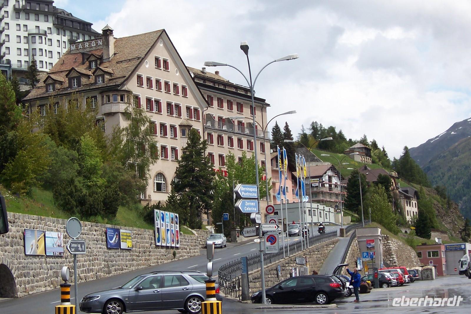 Nun geht es aber nach St. Moritz als ?Top of The World? der in aller Welt berühmte exklusivste und teuerste Wintersportort der Alpen. Zwei Stunden nehmen wir uns Zeit den Ort zu erkunden. Die Hotelpaläste und Geschäfte sind zum großen Teil noch geschlossen. Wir erleben St. Moritz bei Regen und verlassen den Wintersportort wieder.
