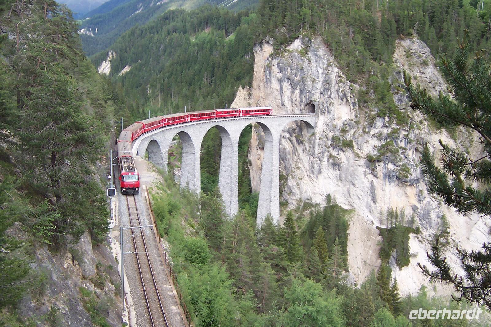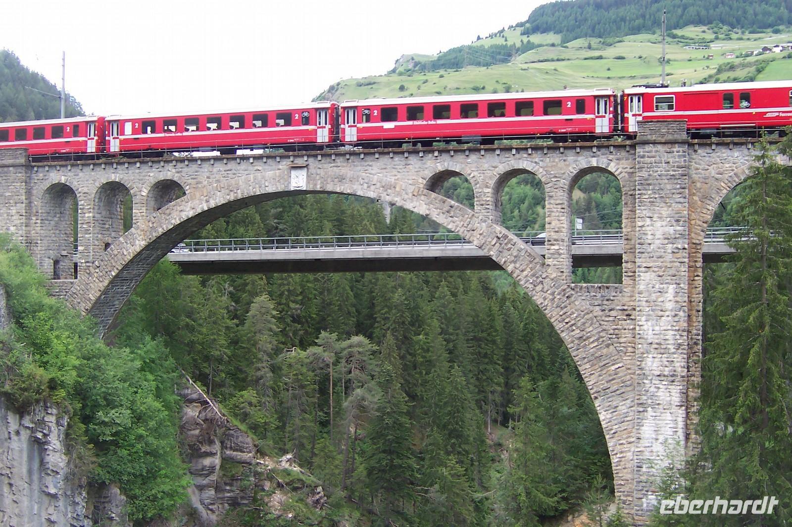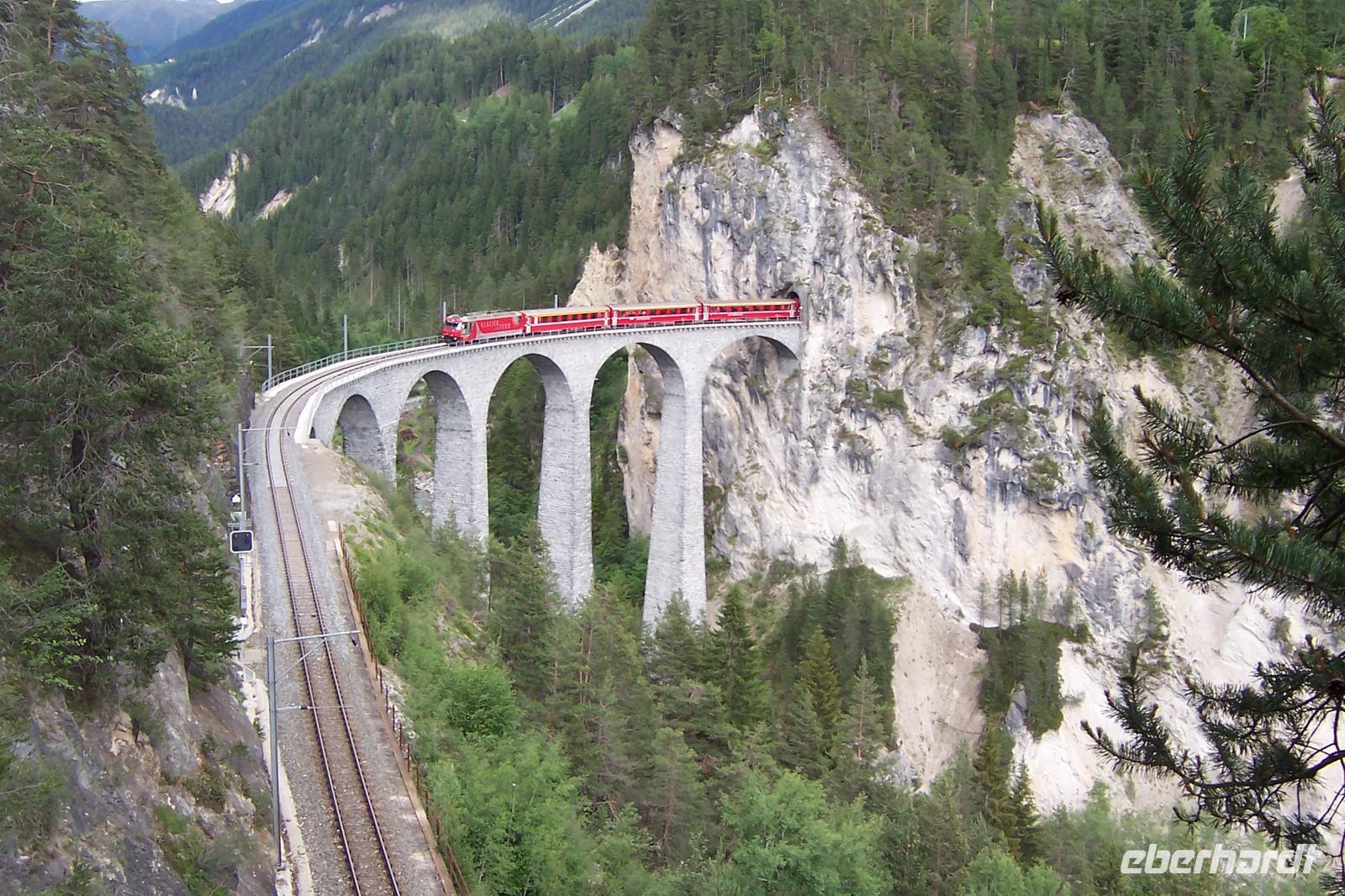 Von Davos aus geht es durchs schöne Landwassertal, der Zügenschlucht nach Filisur. Heute überqueren wir das Landwasserviadukt. Unseren Fotostopp sehen wir vom Zug aus.