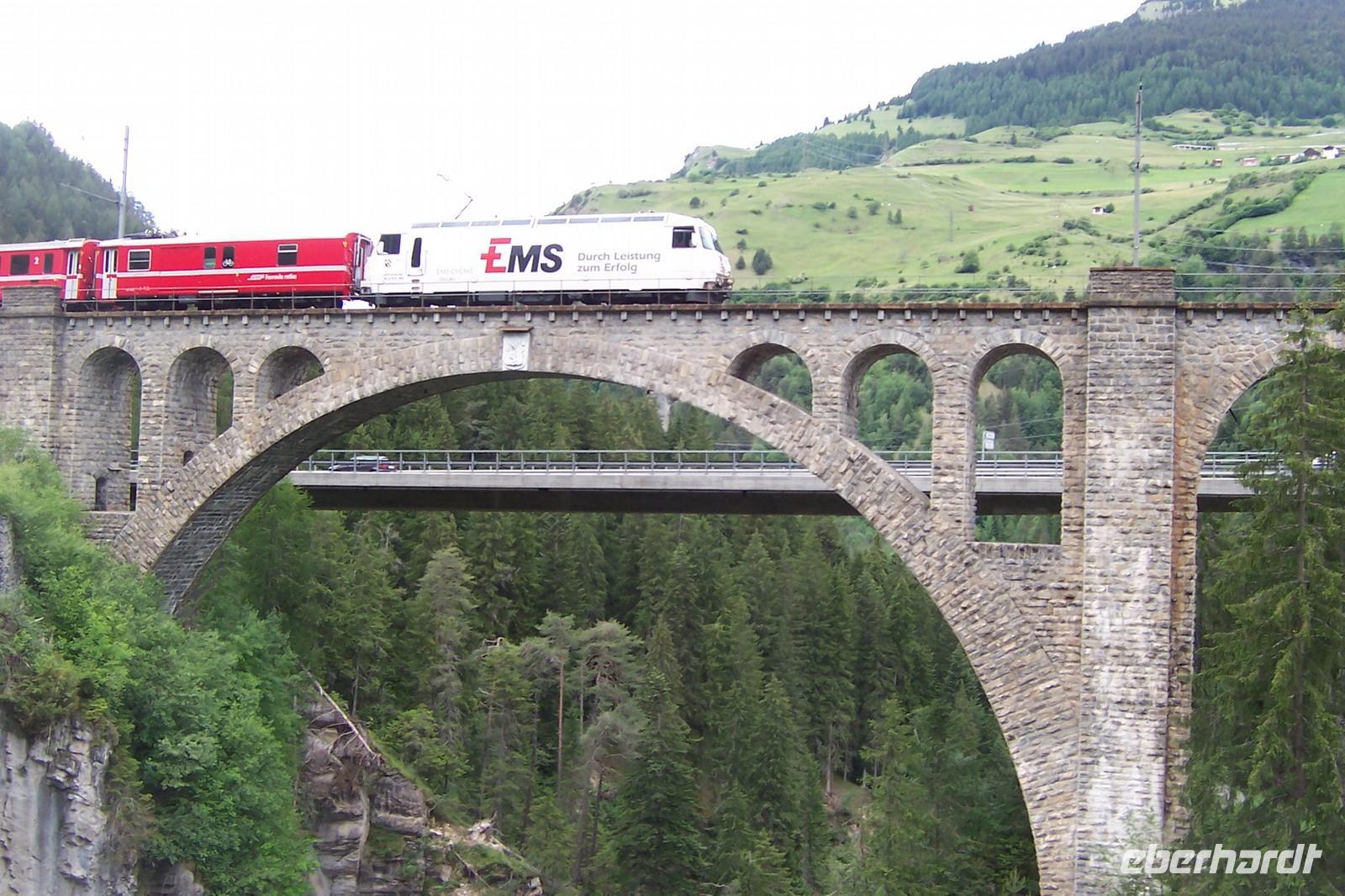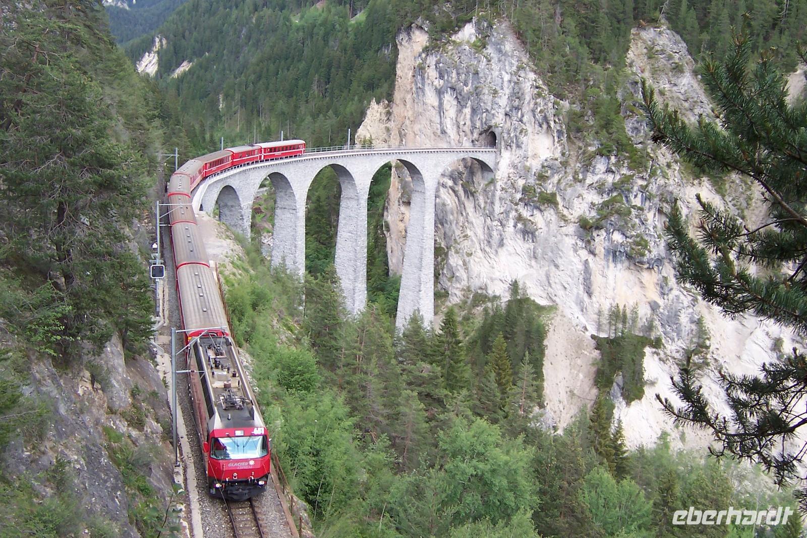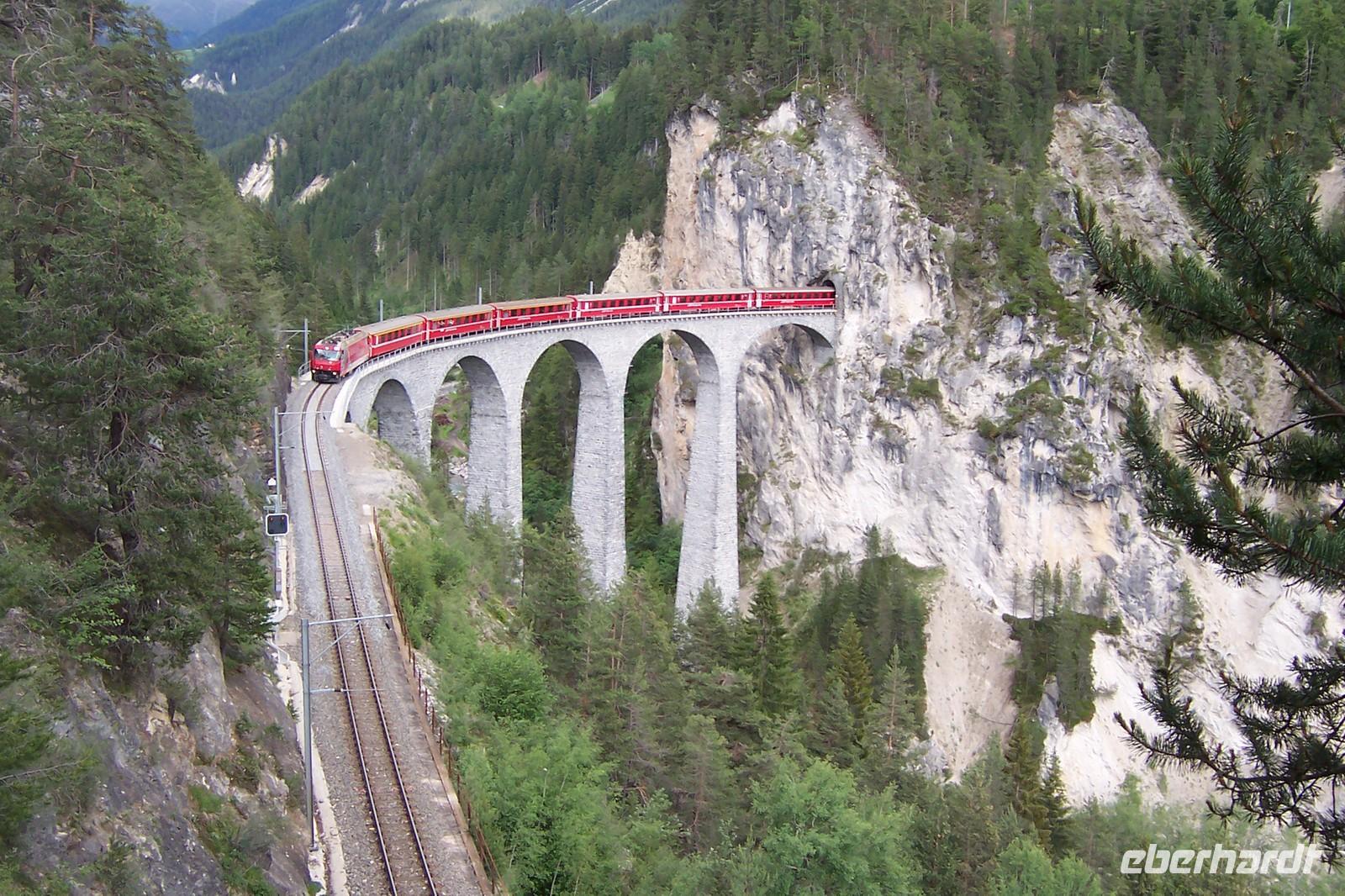 Von Davos aus geht es durchs schöne Landwassertal, der Zügenschlucht nach Filisur. Heute überqueren wir das Landwasserviadukt. Unseren Fotostopp sehen wir vom Zug aus.