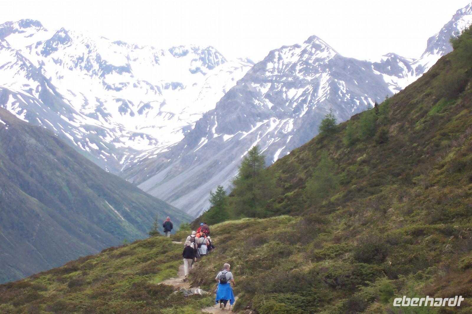 Der größere Teil der Gruppe wandert durch die Gornergratschlucht. Andere machen einen Einkaufsbummel in Zermatt.