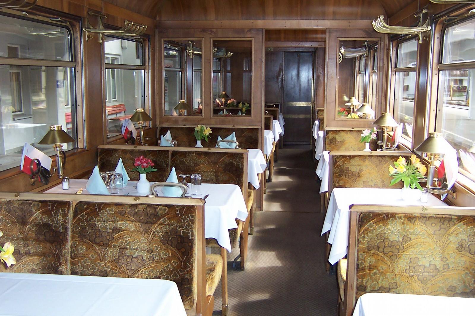 Zwischenzeitlich haben wir die Waggons gewechselt. Wir nehmen unser Mittagessen in historischen Speisewagen ein.