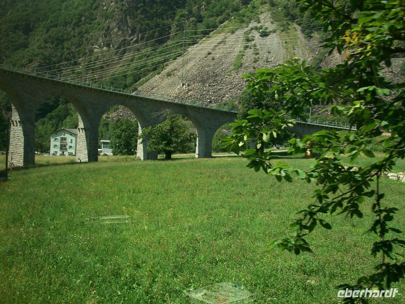 Bald sehen wir an der Vegetation dass wir im mediterranen Klima angelangt sind, ein Reiz dieser Tour welche vom Hochgebirgsklima bis zu den warmen Temperaturen des Mittelmeers alles zu bieten hat. So wie sich das Klima ändert so ändert sich auch die Vegetation. Hier schauen die staunenden Augen des Reisenden nun auf eine große Üppigkeit von Edelkastanien, Feigenbäumen und überhaupt einer schönen Flora die dieser Region eigen ist. Während der nun folgenden Strecke fahren wir wie eine Straßenbahn durch kleinere Orte, dann wieder durch reine Natur und enden dann schließlich im Tal des Flusses Adda. Kurz zuvor haben wir die Grenze zu Italien überschritten und als sich die Zugtüren öffnen, dringt ein Schwall sehr warmer Luft hinein. Hier in Tirano, so heißt der Ort, ist es Hochsommer, die Sonne meint es sehr gut und unsere Reisegruppe stärkt sich erst einmal beim Italiener um die Ecke. Danach verbleibt noch Zeit für eigene