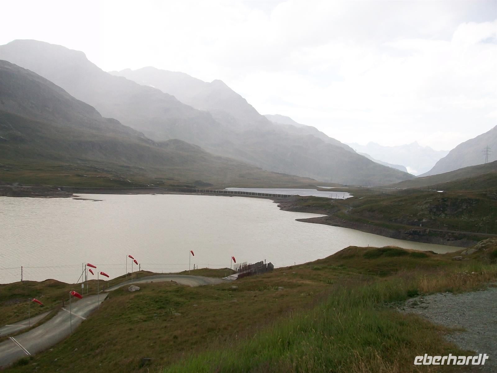 Wir fahren entlang des Sees der oben am Pass in über 2 000 Metern seine Wasserfläche ausgebreitet hat und leichte Wellen bildet.
