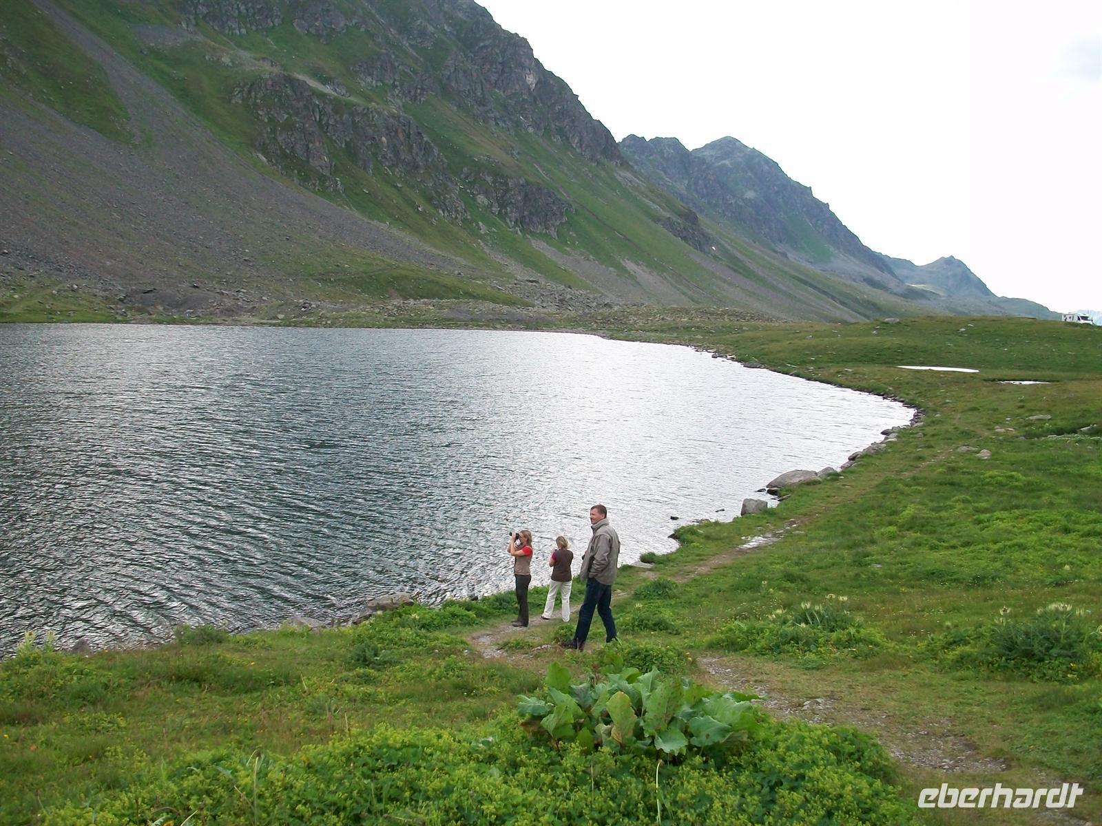 Später fahre ich wieder hinunter und lege noch einen Stopp am Schwarzsee ein. Dieser kleine Gebirgssee kann schöner nicht liegen, eingebettet in einer Senke widerspiegelt er die Bergwelt in seinem Wasser. Hier lohnt ein Rundgang um diesen See in dem sich selbst in dieser Höhe zahlreiche kleine Fische tummeln. Bei jedem Meter den man um diesen See herumgeht eröffnen sich neue Perspektiven an denen sich das Auge kaum satt sehen kann.