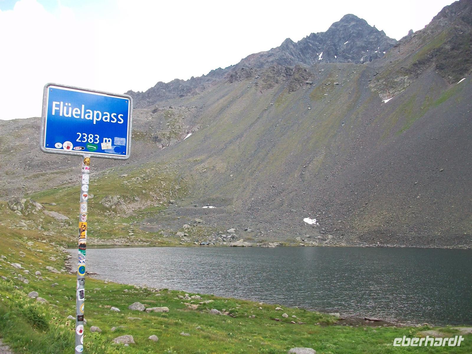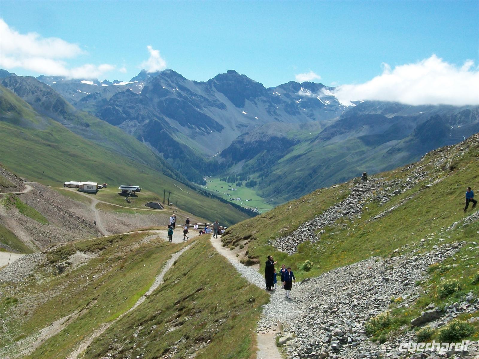6.8.2012. Der Wetterbericht ließ das schlimmste befürchten, manchmal irren sich auch die Meteorologen, zumindest hat das heute Vormittag den Anschein. Auf unserem Weg hinauf zum Flüelapass lacht uns die Sonne ins Gesicht, weiße Kumuluswolken ziehen am blauen Firmament ihre Bahn und lassen den Tag schön beginnen.
