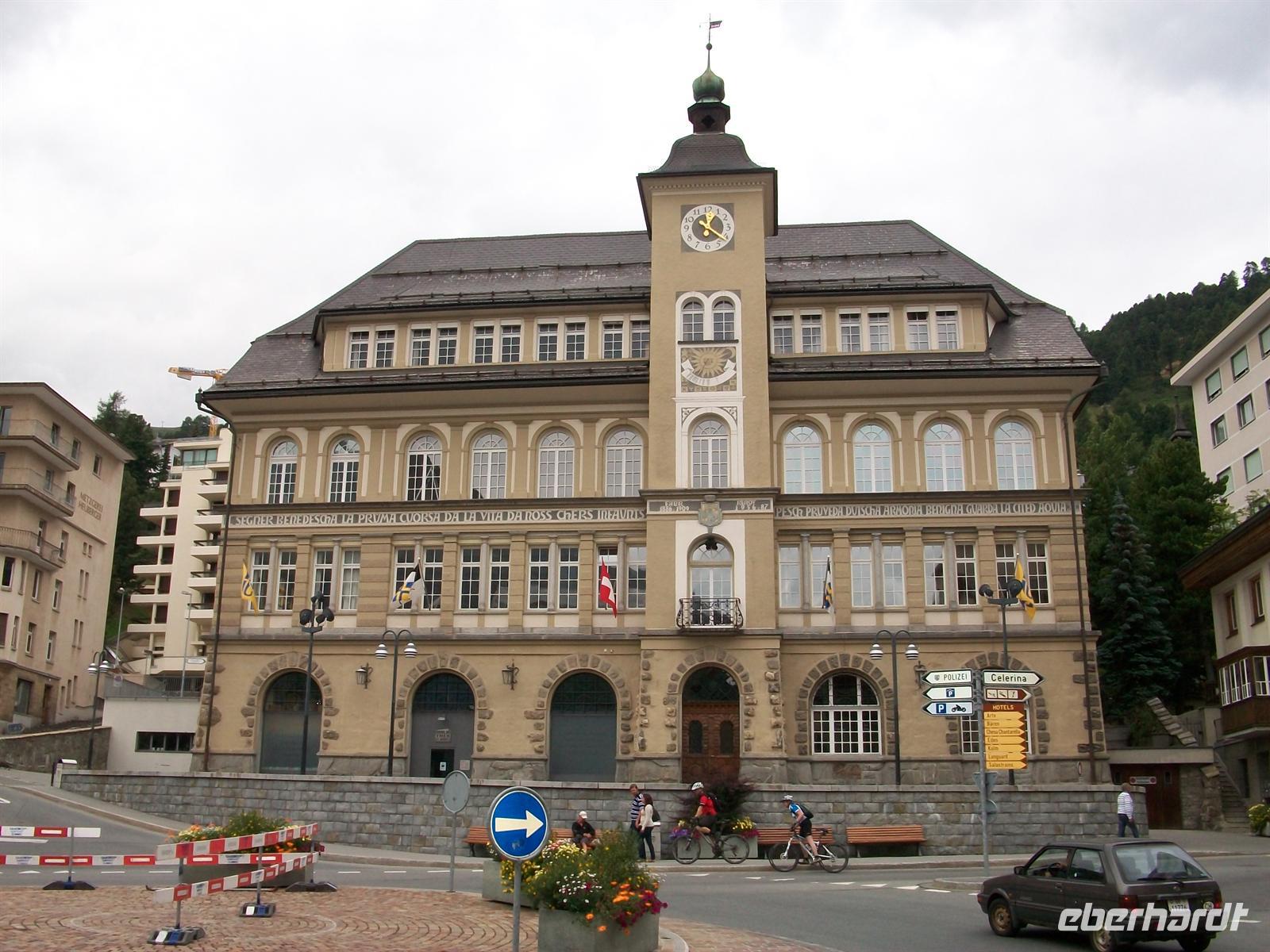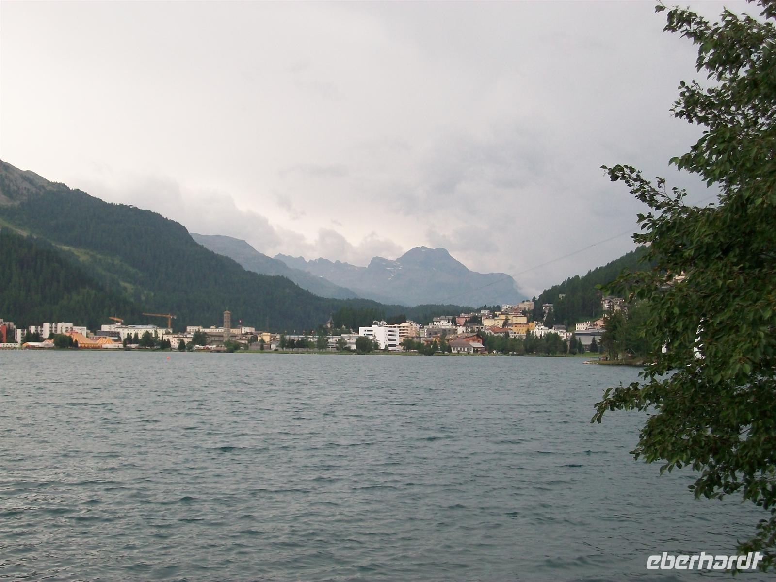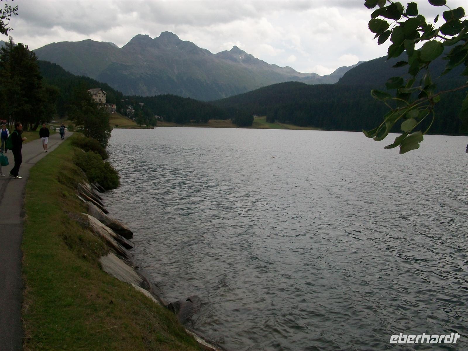 Es geht nun flussaufwärts und immer durch das schöne Tal hindurch welches der Inn hier bildet. Malerisch sind die Ortschaften die wir durchfahren und gegen 12.00 Uhr erreichen wir Sankt Moritz. Dieser Ort liegt am gleichnamigen See und ist der bedeutendste hier im Engadin. Beim Bummel durch Sankt Moritz werfen wir einen Blick auf die schönen Auslagen der Geschäfte, bei manchen Preisen muss man schon zweimal hinschauen.