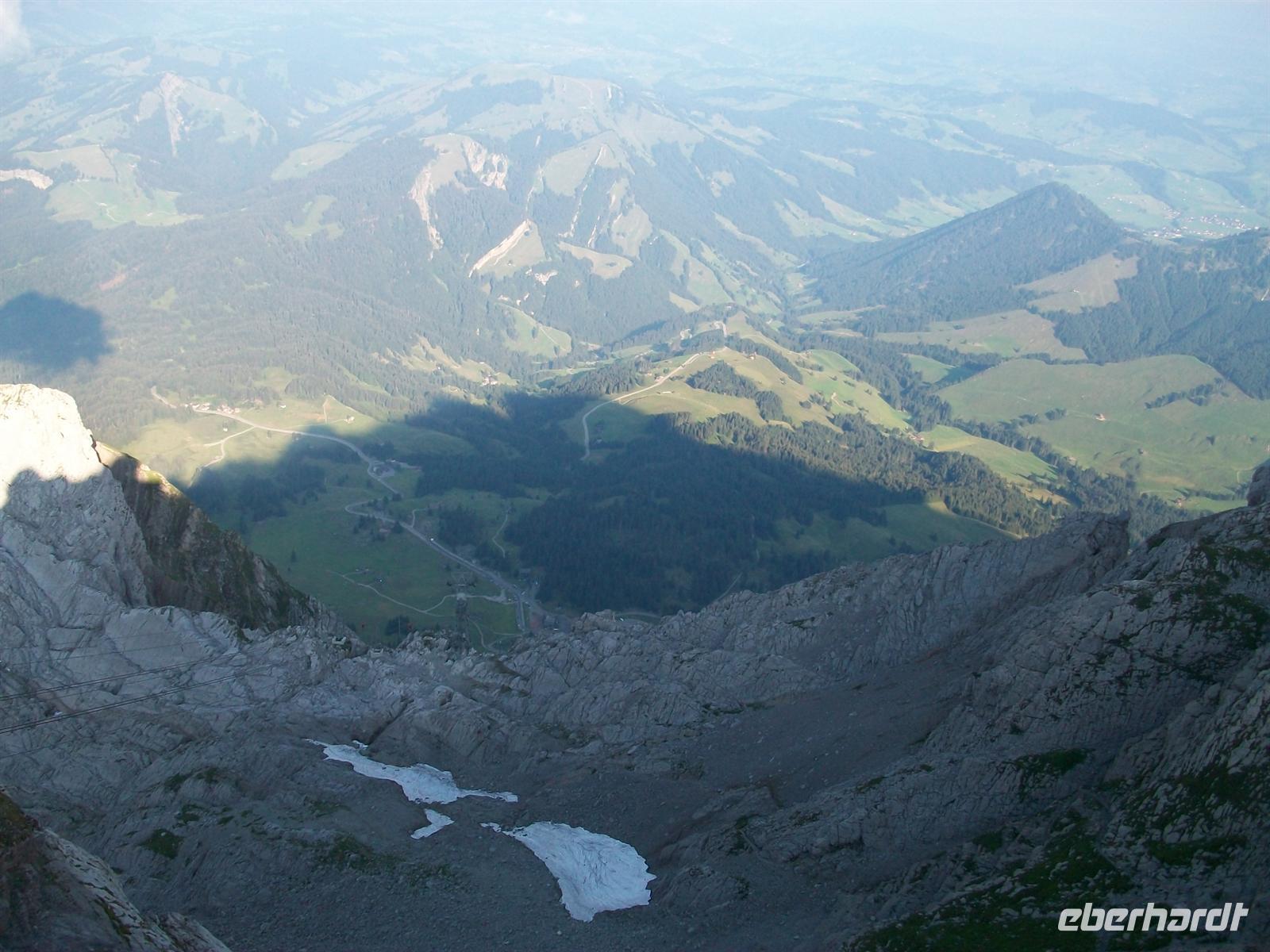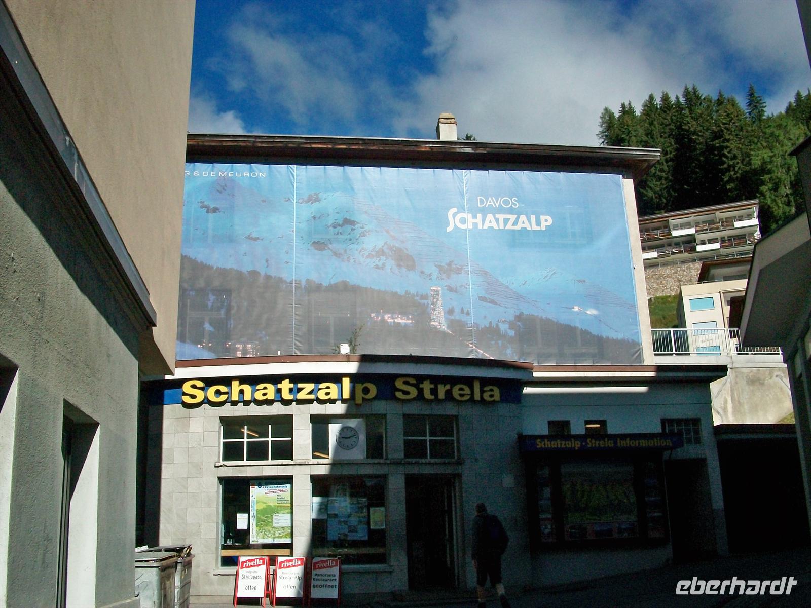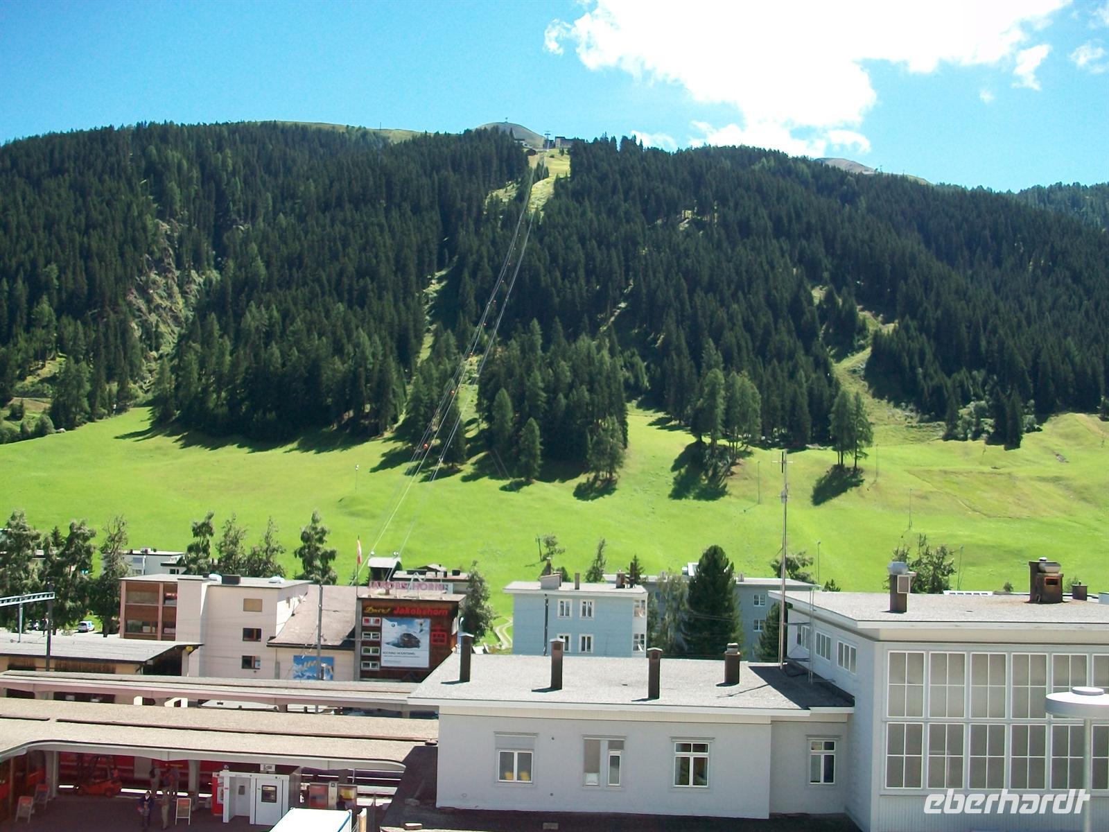 An der Bergstation zurück genieße ich noch einen schönen Blick hinunter auf die Häuser von Davos und das Tal welches sich in der Ferne aufzulösen scheint.
