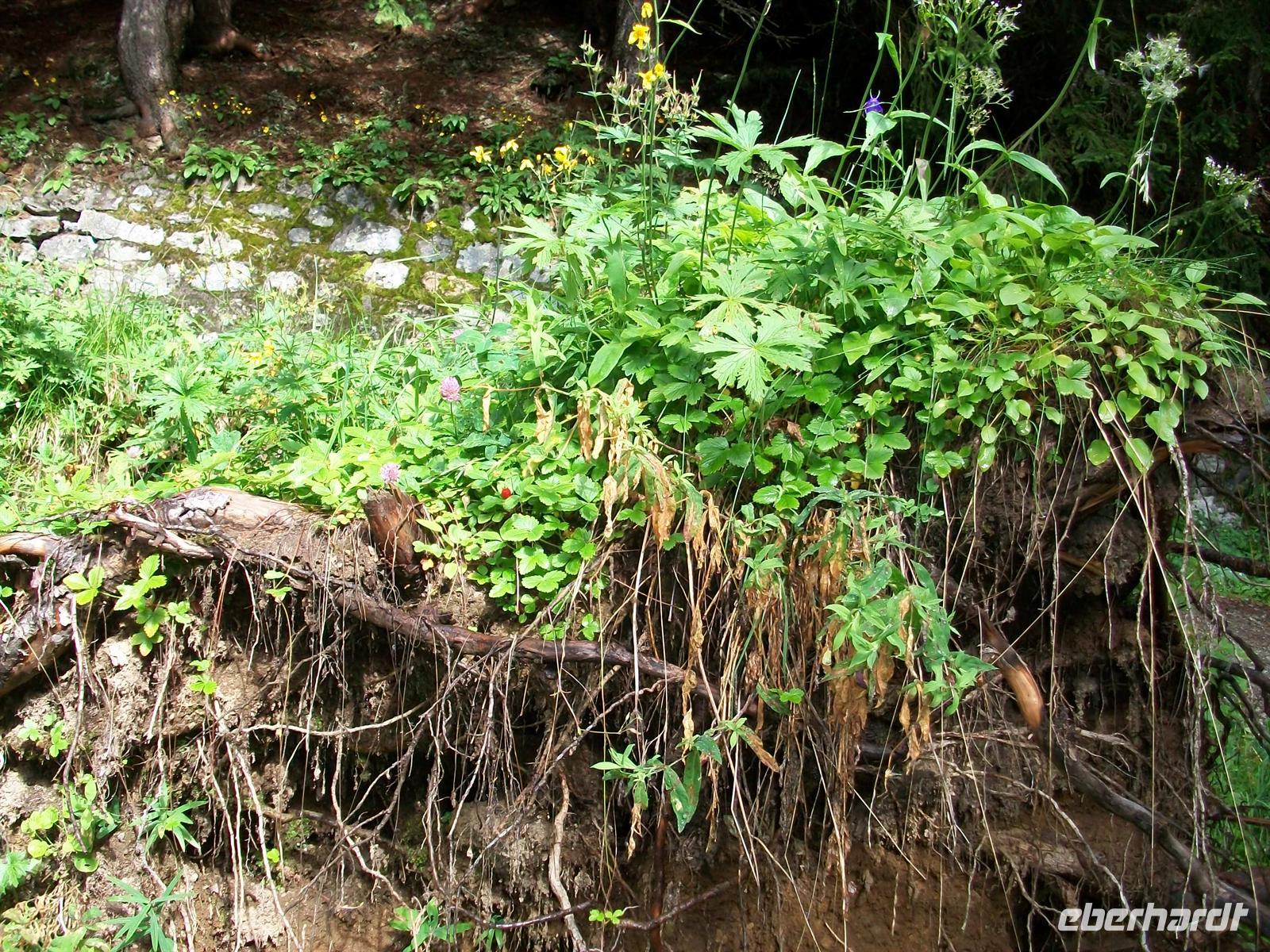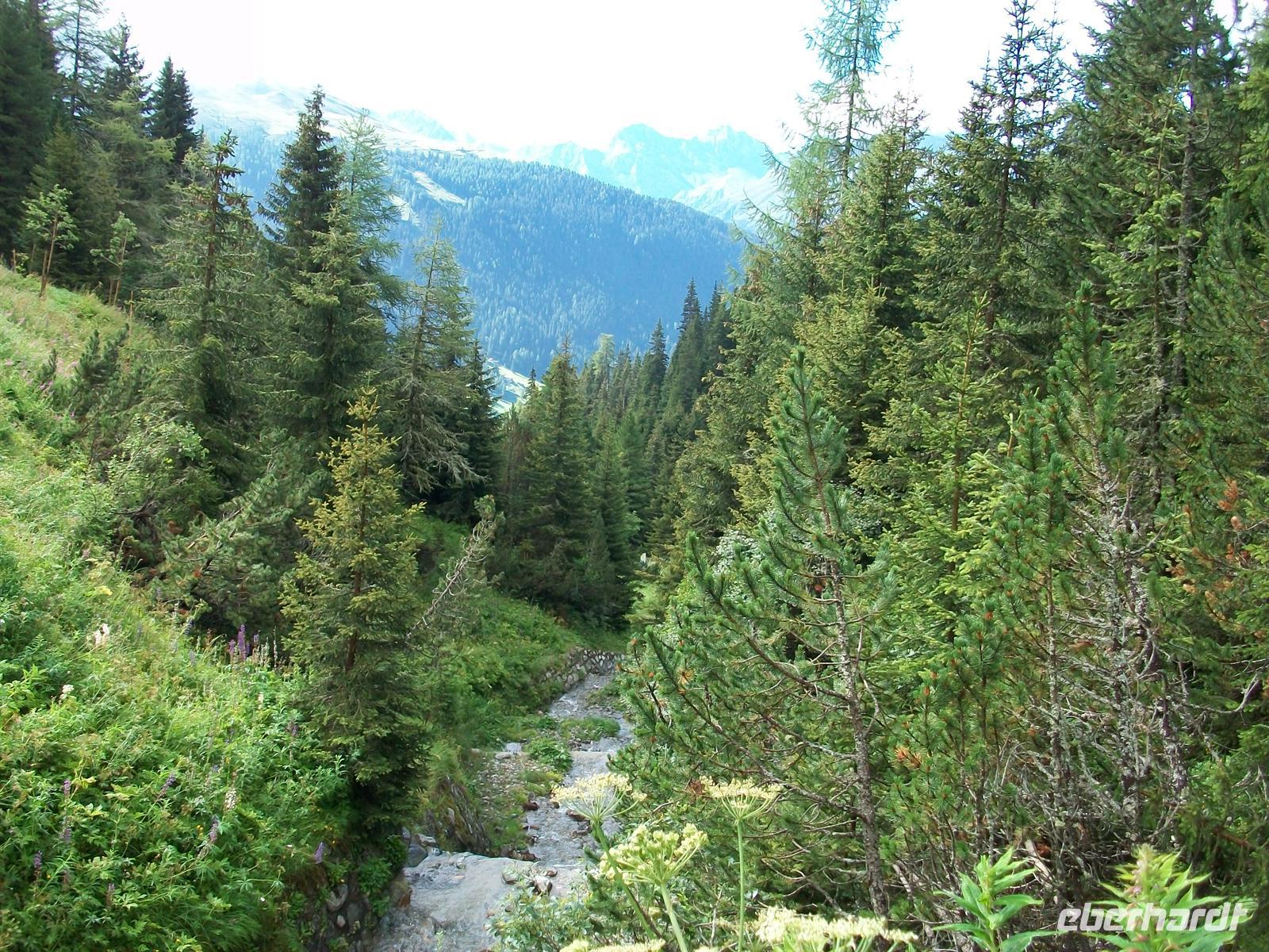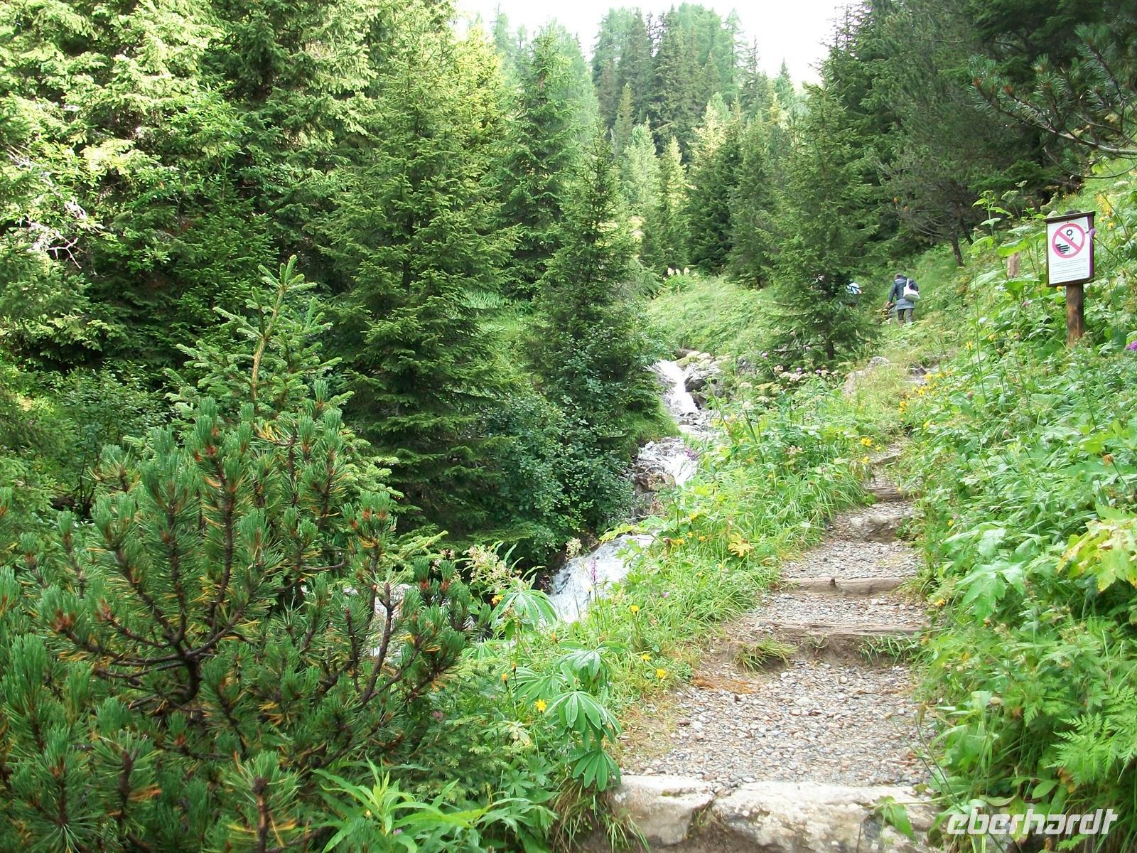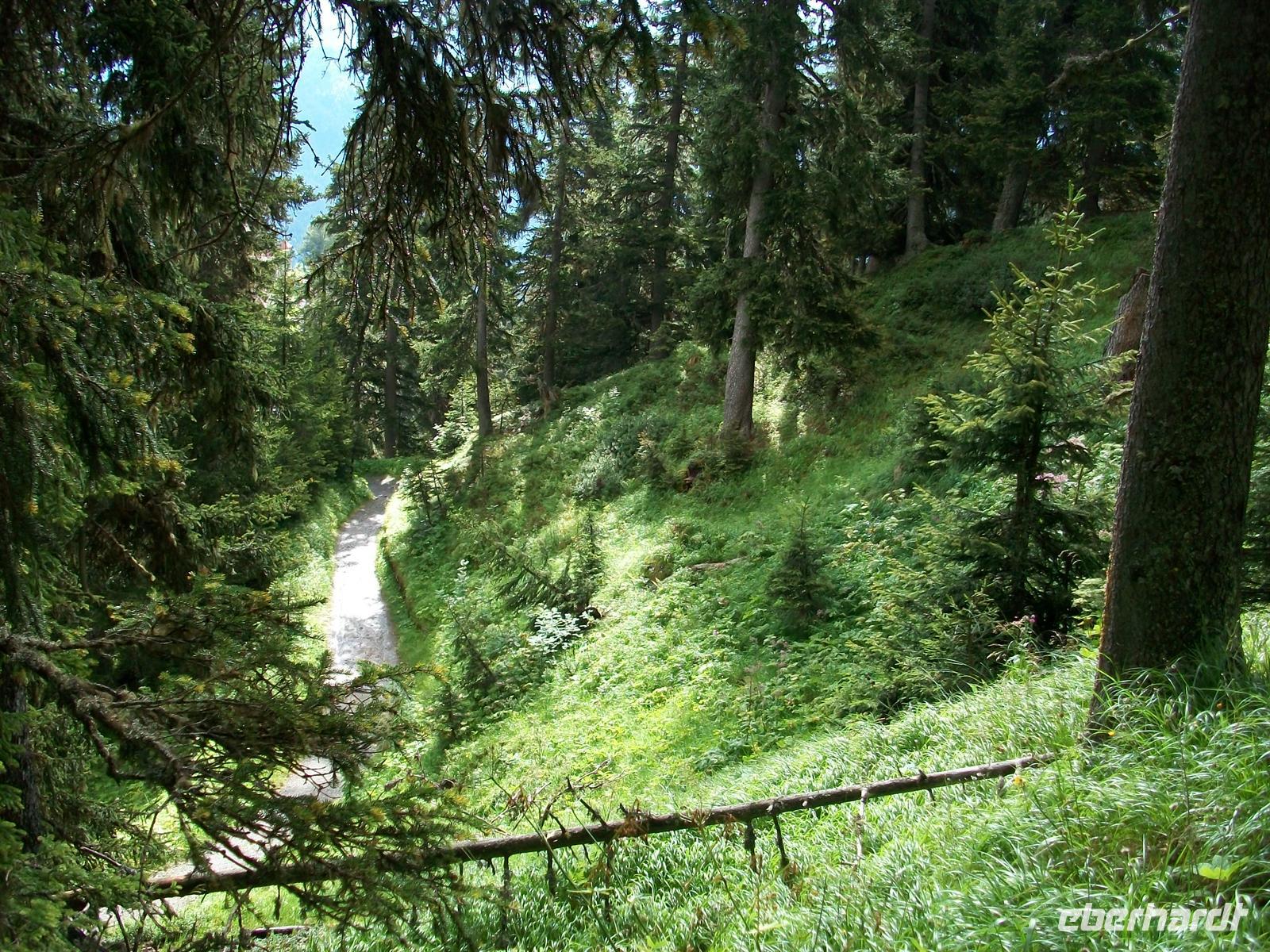 Dazu ist die Luft hier oben frisch und rein, tief atme ich die Luft ein auf meinem Weg durch den Wald. Ein wunderschöner Vormittag in einer intakten Natur, dabei hat man immer die gigantische Bergwelt vor Augen, bei jeder Wegbiegung zeigen sich immer neue und schöne Perspektiven.