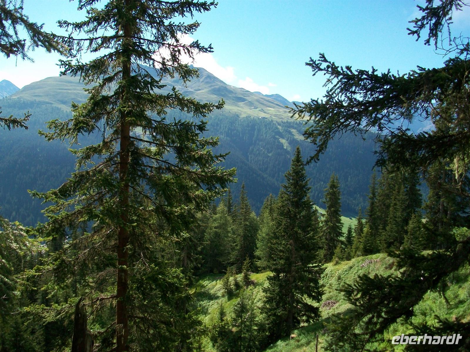 Aus den Tälern steigen kleine Nebel empor die durch die Thermik geweckt worden sind und sich am blauen Firmament zu weißen Wolken versammeln. Dieser wunderschöne Kontrast begleitet mich auf meinem Nachmittagsausflug hinauf zum Jakobshorn. Es führt eine Luftseilbahn auf den Berg, unter uns gleiten die Spitzen der Nadelbäume vorbei; Wanderer sind auf den schmalen Wegen unterwegs um dieses Prachtwetter zu genießen. Das Jakobshorn liegt etwa 1 000 Meter über Davos, da wir uns hier über der Baumgrenze befinden hat man von oben einen uneingeschränkten Panoramablick über die Bergwelt. Im Norden sind die Spitzen des Rätikon zu sehen, gleich gegenüber das Weissfluhjoch und im Süden schweift der Blick zu den Erhebungen der Bernina- es ist wundervoll. Über den höchsten Bergspitzen haben sich lockere Wolken aufgelegt die dann schnell weiterziehen und immer wieder neue Perspektiven schaffen. Unten im Tal sind die Häuser von Davos zu sehen, klein wie im Spielzeugland und an den Hängen die gesunde Vegetation des Bündner Landes. Auf den Wanderwegen sind zahlreiche Menschen unterwegs und im Bergrestaurant, mit Blick auf die Landschaft, schmeckt ein kühles Bier besonders gut.