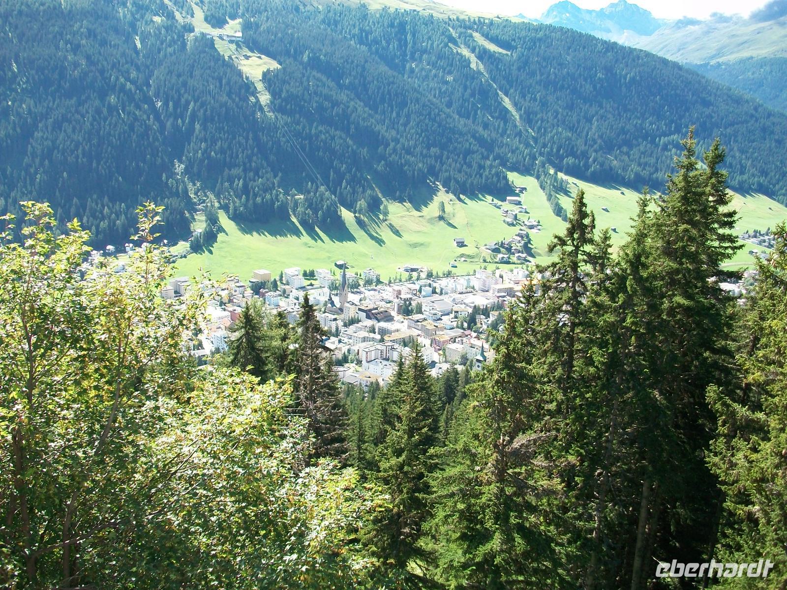 Wir überschreiten die 1 000- Meter- Marke und sind immer noch nicht oben angekommen. Noch 600 Höhenmeter sind zu erklimmen, dann ist links ein See zu sehen, wir haben unser Ziel fast erreicht. Der Weg führt uns zuerst durch Davos- Dorf hindurch, dann sind wir gegen 17.40 Uhr an unserem Hotel angelangt.