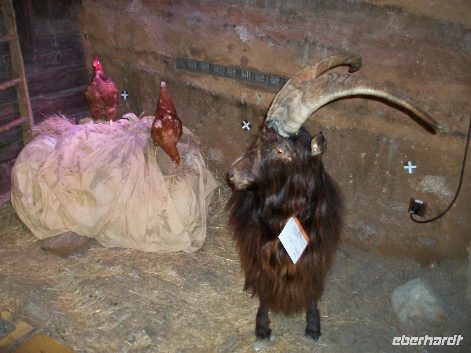 Überall sind auch präparierte Tiere der Region zu sehen, Raubvögel, Wiesel und auch Nutztiere die die sehenswerte Exposition abrunden.