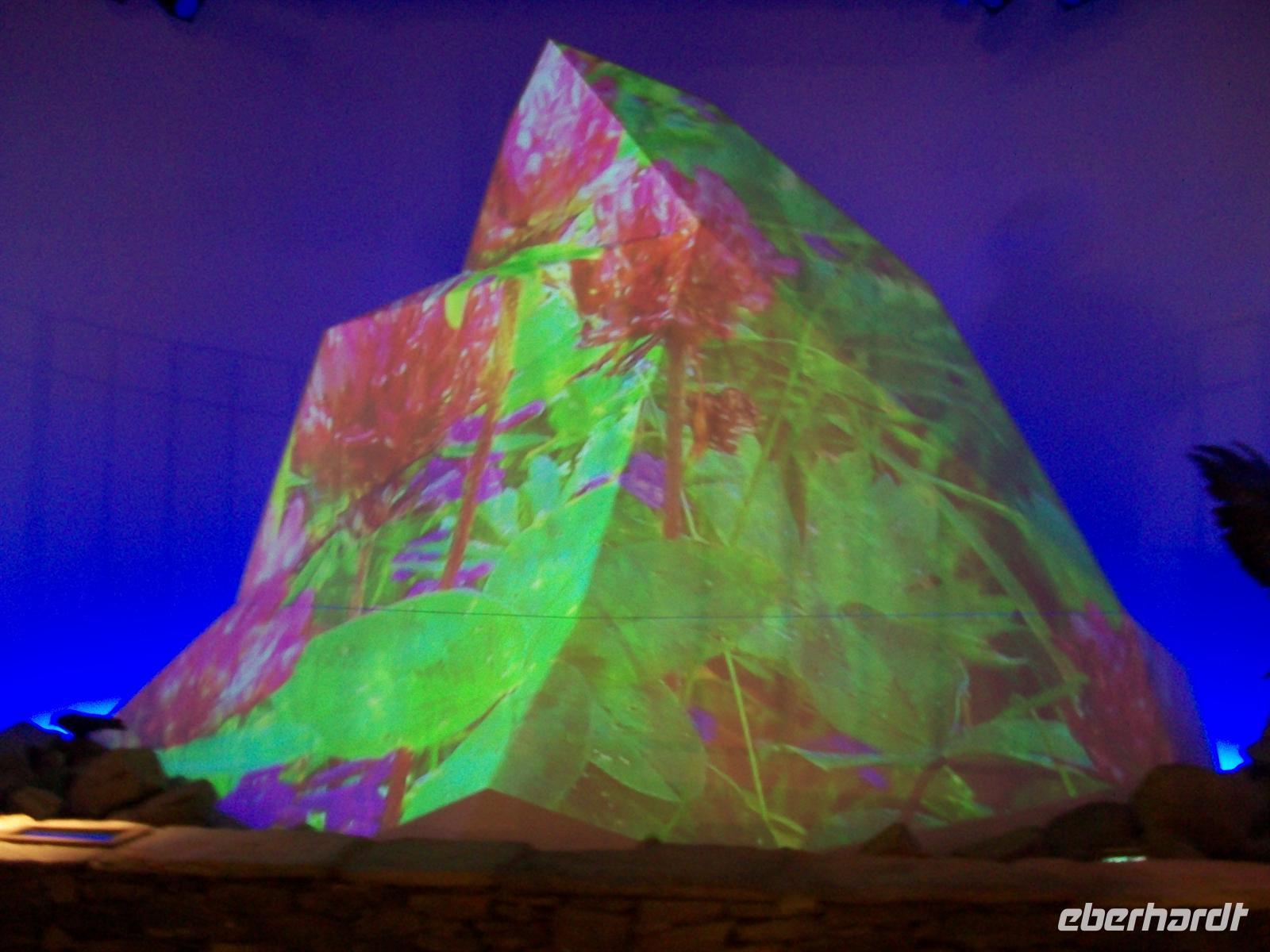 In einem anderen Raum ist das stilisierte Matterhorn zu sehen, eine spektakuläre Lichtschau lässt es buchstäblich in einem ganz neuen Licht erstrahlen und erzählt gleichsam die Geschichte Zermatts weiter. Das ist Gegenwart und Zukunft, Vision und Realität und der Brückenschlag in ein modernes Leben als Fortführung der Tradition.