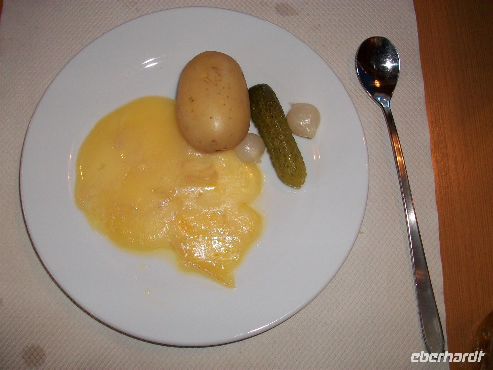 ausfüllt und kleine Pellkartoffeln nebst sauren Gurken und Zwiebeln gereicht. Mehrfach werden die Teller nachgefüllt bis jeder satt ist. Für die Japaner ist diese Speise auch neu, lustig tauschen sie ihre Meinung darüber aus, schade dass wir nicht verstehen was sie sagen.