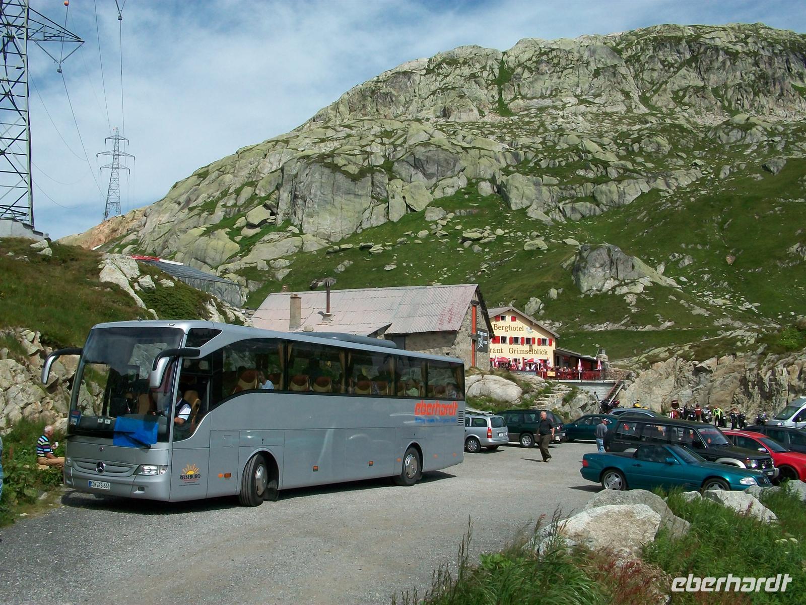 Bald verschwinden die Bäume, knapp über 2 000 Meter überqueren wir dem Oberalppass um dann durch zahlreiche Kehrtunnel ins Ursenental zu gelangen. Ein kurzer Stopp in Andermatt und wir fahren durch das Tal welches von hohen Bergen flankiert wird. Dann wird es für eine Viertelstunde dunkel, wir unterqueren das Furkamassiv durch den Basistunnel und tauchen dahinter im gleißenden Sonnenschein des Wallis wieder auf.