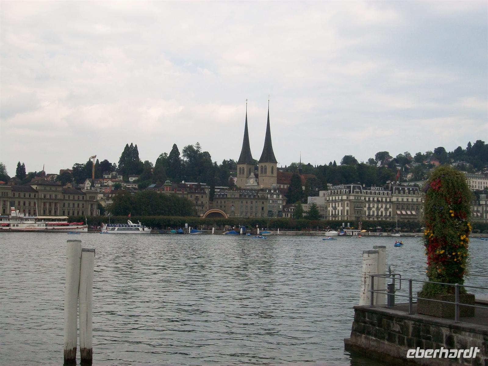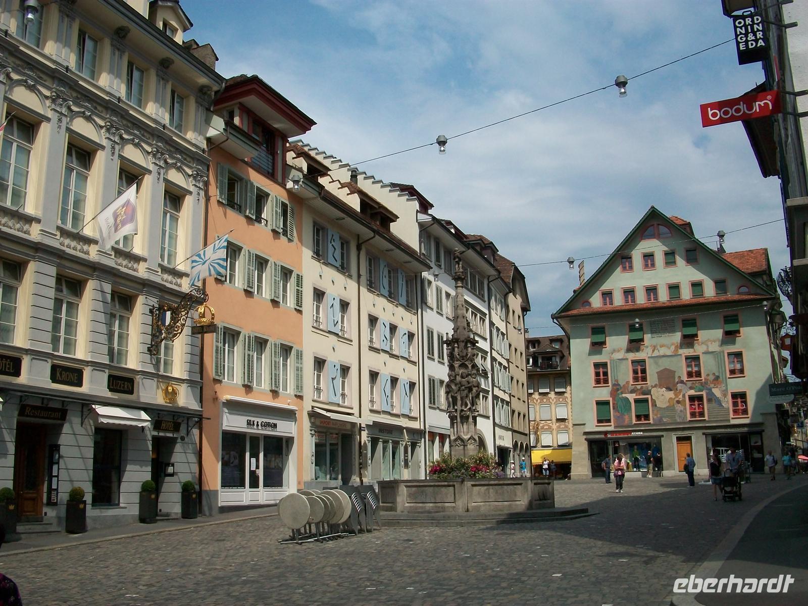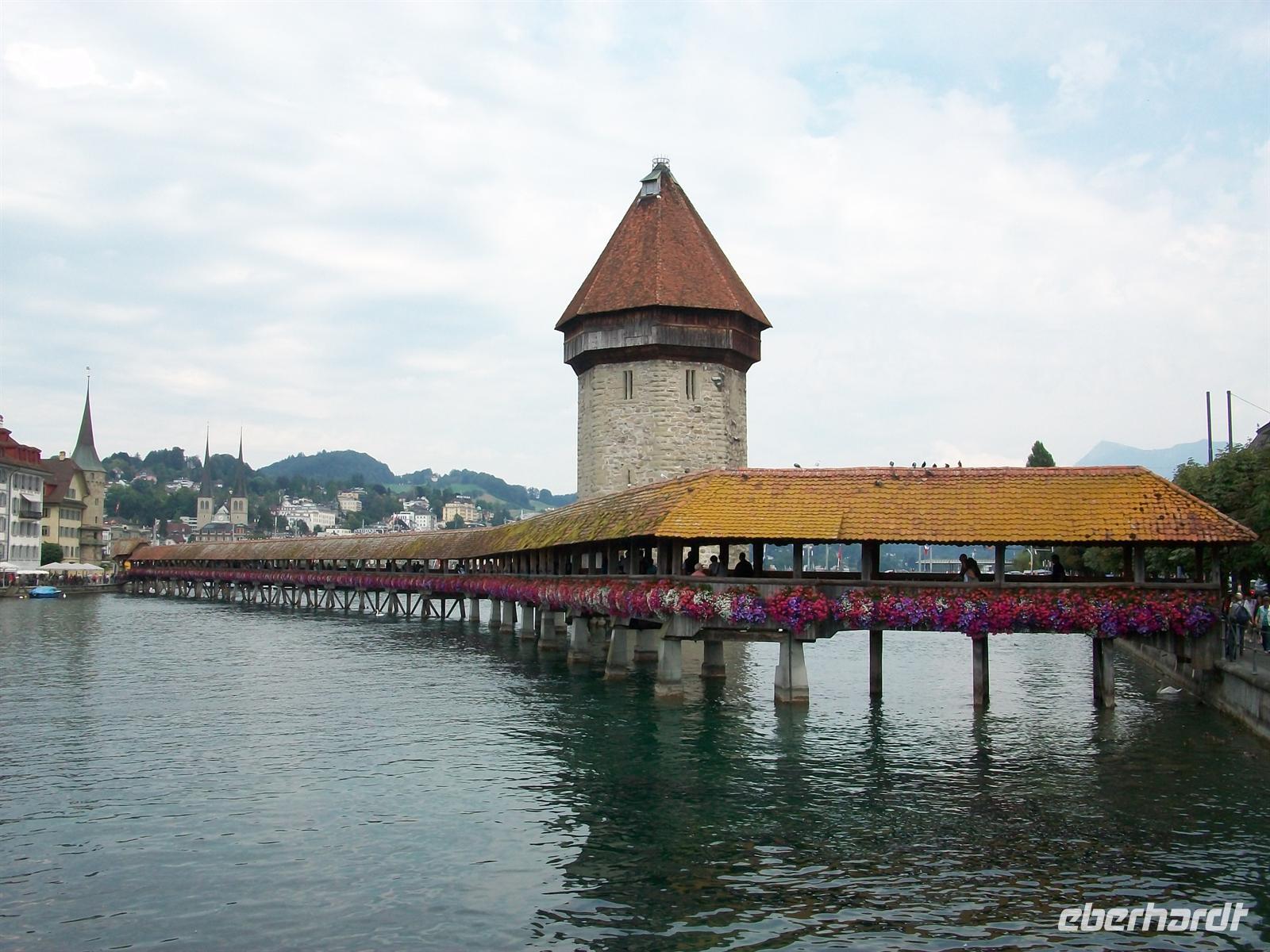 Da wir noch etwas Zeit haben statten wir Luzern einen Besuch ab; immer wieder ein Genuss ist der Gang über die Kapellbrücke mit ihrem bunten Blumenschmuck. Die gepflegte Altstadt mit den