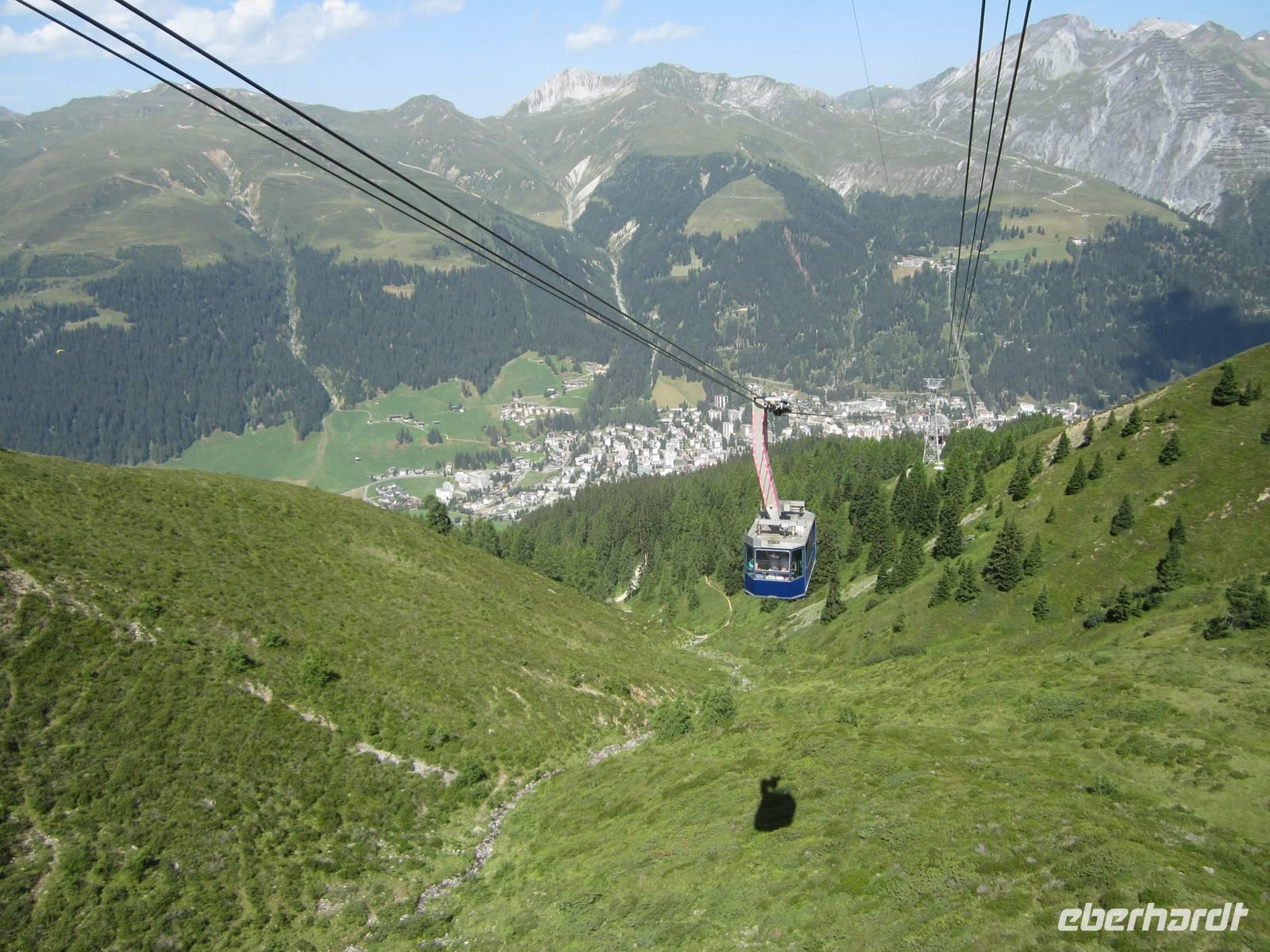 Ein freier Tag, der uns zur Verfügung steht. Wir sind uns einig, bei dem Wetter wird gewandert. Die Möglichkeit mit der Gästekarte Bergbahnen kostenlos zu nutzen lassen wir nicht ungenutzt verstreichen. Einige Gäste fahren und wandern zur Schatzalp um die Zeitzeugen aus Thomas Manns „Traumzauberberg" zu sehen.Ein anderer Teil der Gruppe fährt mit der Bergbahn zur Ischalp (1931m ü.M.) hier steigen wir um und weiter fahren wir zum Jakobshorn (2590 m ü.M.). Oben angekommen eröffnet sich ein traumhaftes Bergpanorama. Ein Dreitausender grenzt an den anderen. Viele Wanderwege sind zu erkennen und Gleitschirme fliegen durch die Lüfte. Für uns beginnt eine "gemütliche" Wanderung zum Stadlersee.Vor uns liegt aber noch der ganze Tag und somit wandert ein Teil unserer Gruppe in das Setigtal zum Sertig Dörfli. Das Gletschertal Sertig ist ein Seitental von Davos und gilt aufgrund seiner idyllischen Naturlandschaft als besonders schützenswerte Region der Schweiz. Im Sertig Dörfli, das 1861 m über dem Meeresspiegel liegt, endet die Wanderung nach gut 2 Stunden. Danach kann man mit dem Bus zurück nach Davos fahren. Zum Abendessen trifft sich die Gruppe sehr zufrieden und am Abend werden noch die unterschiedlichsten Wanderungen ausgewertet.Leider heißt es heute Abschied nehmen von Davos. Aber weitere schöne Tage stehen uns bevor.