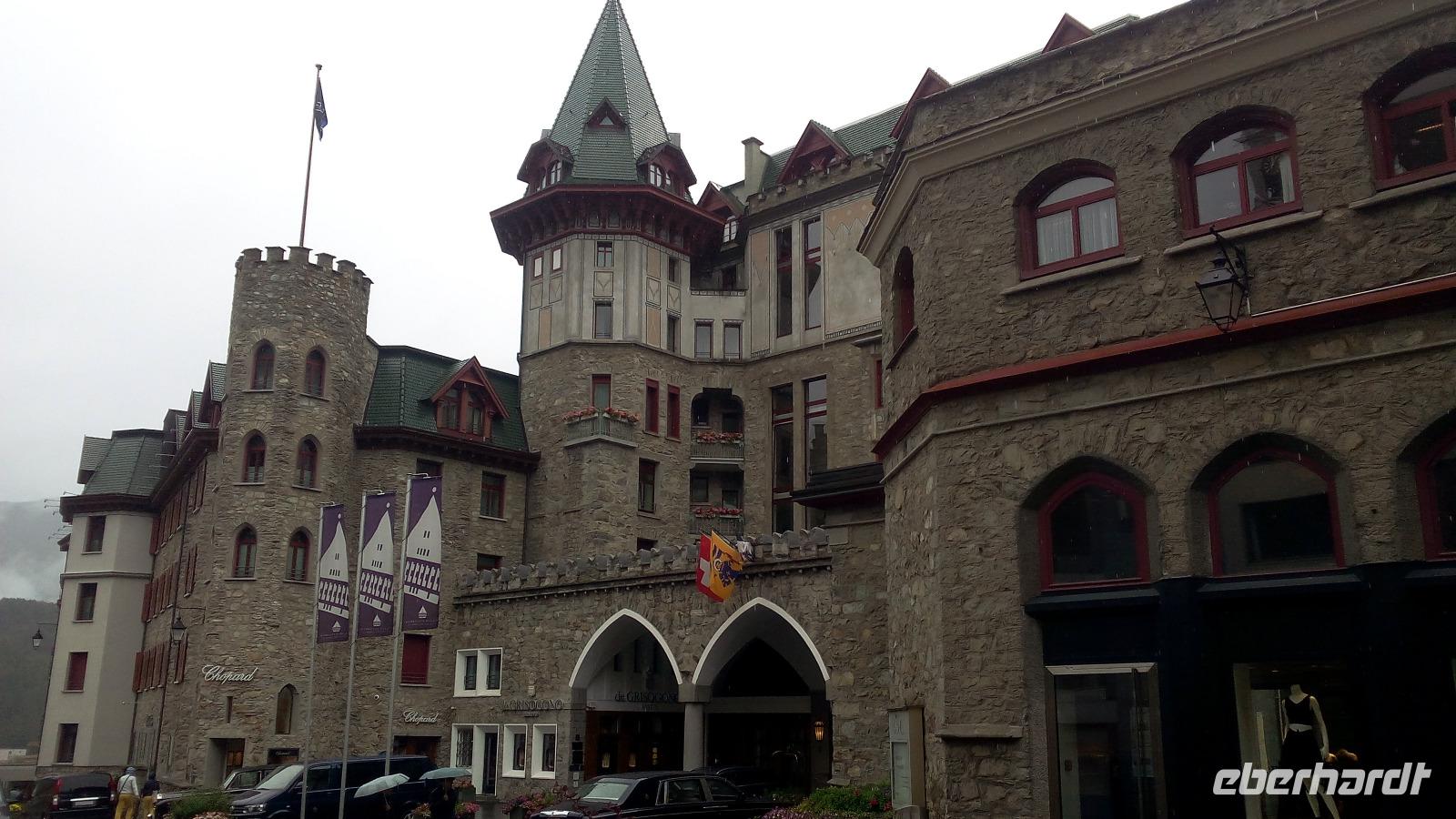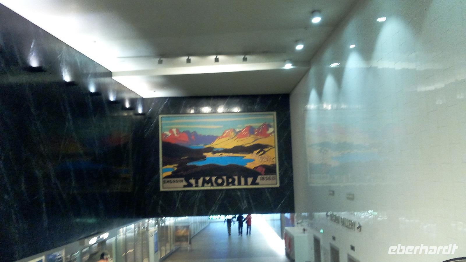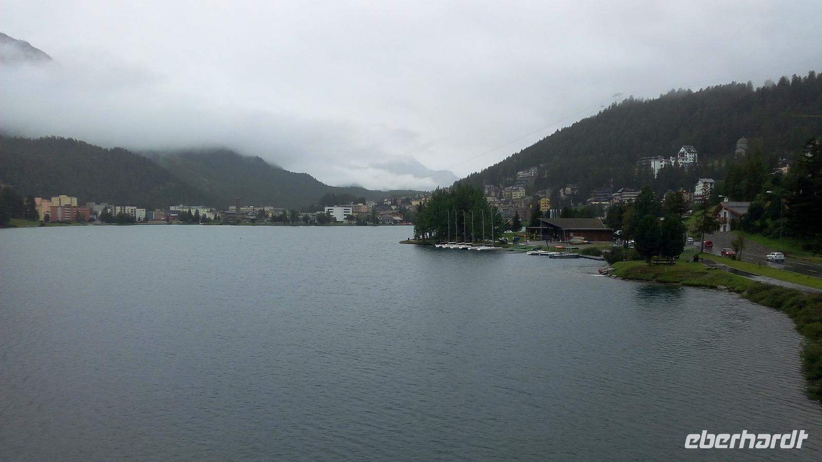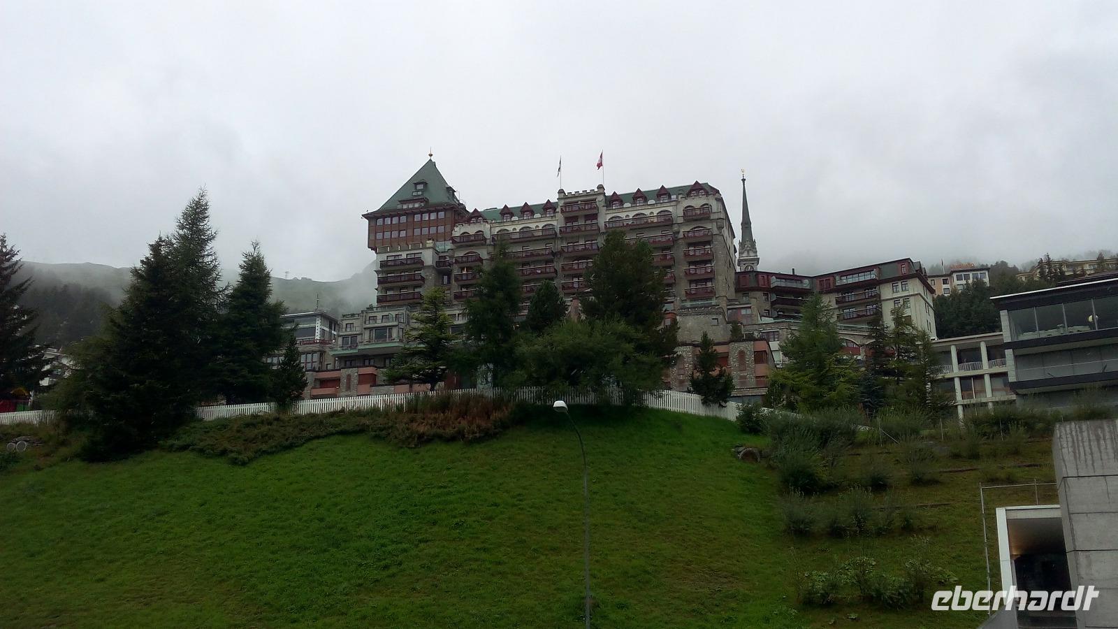 Nun geht es aber nach St. Moritz als „Top of The World" der in aller Welt berühmte exklusivste und teuerste Wintersportort der Alpen. Knapp Stunden nehmen wir uns Zeit den Ort(mit Schirm) zu erkunden. Die Hotelpaläste und Geschäfte sind zum Teil noch geschlossen.