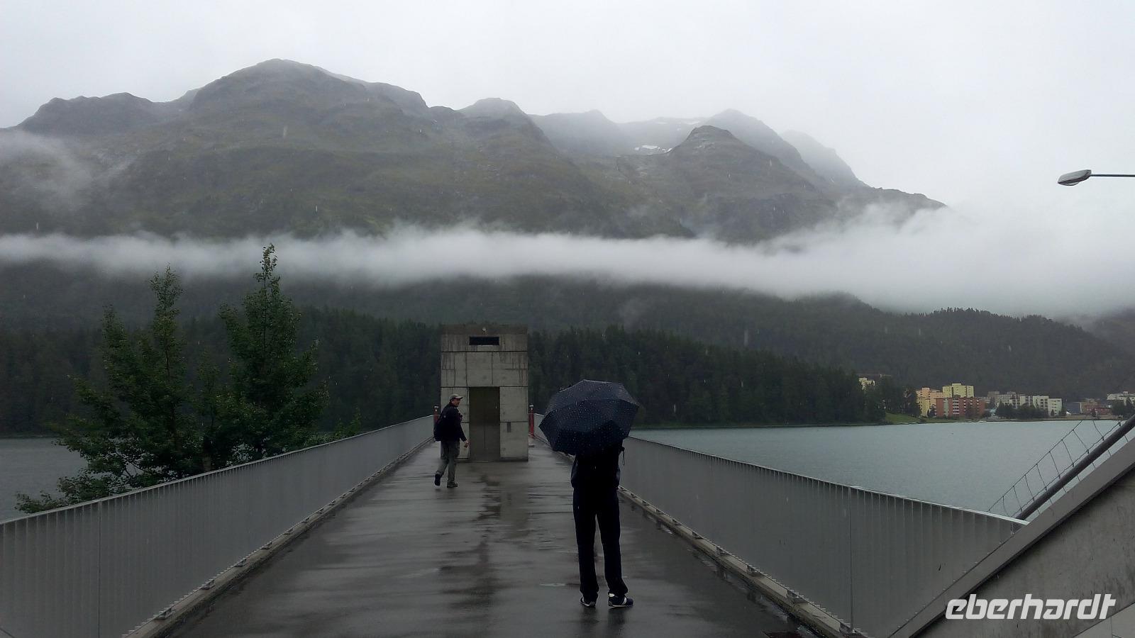 Heute haben wir das Engadin auf unseren Plan und es regnet und regnet. Hoffentlich wird das Wetter besser, wenn wir über den Flüelepass gefahren sind. Schließlich steht das Engadin für eine harmonische Berglandschaft mit einem ganz besonderen Licht, klarem Himmel, leuchtenden Farben und vielen Sonnentagen.