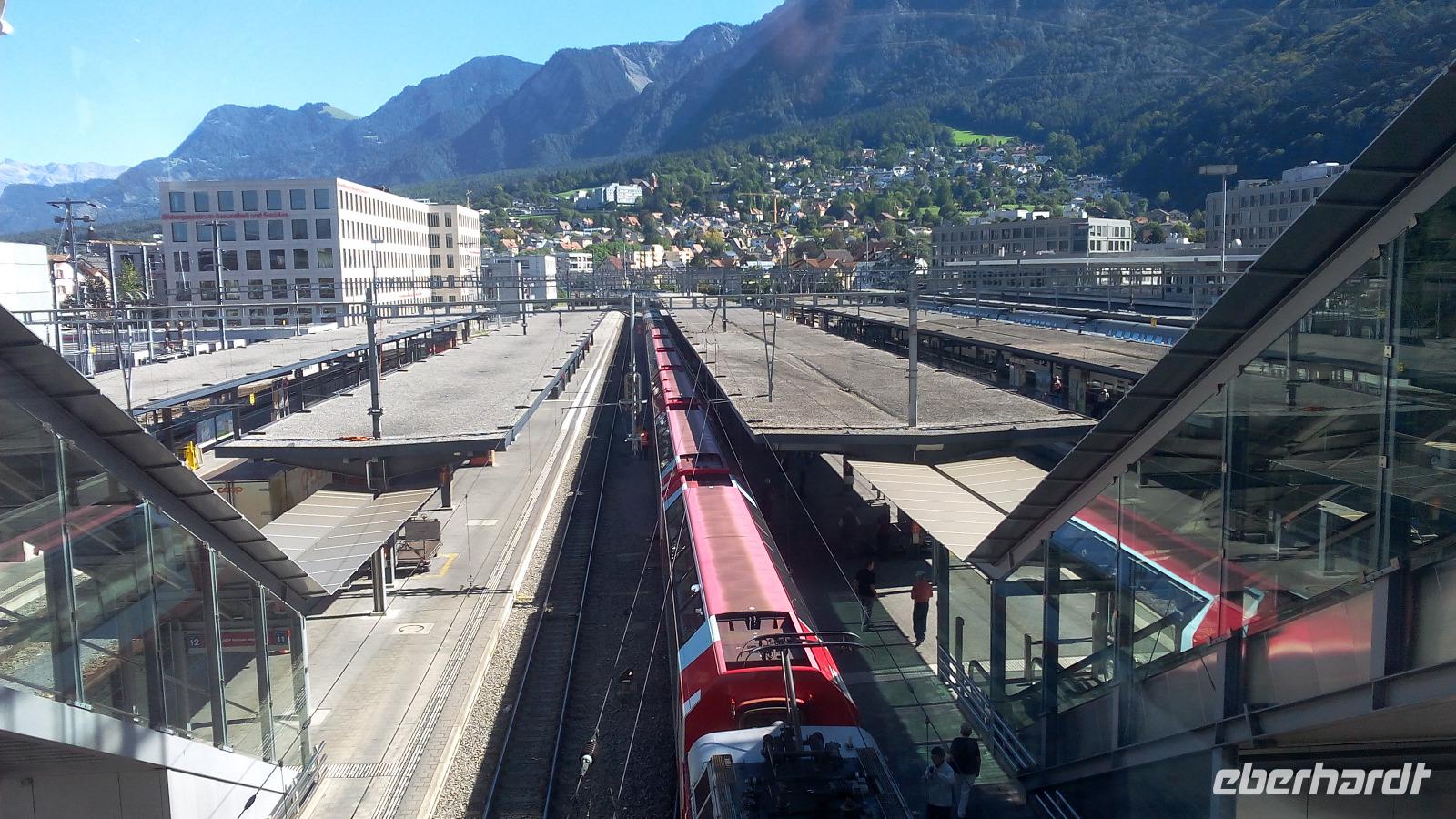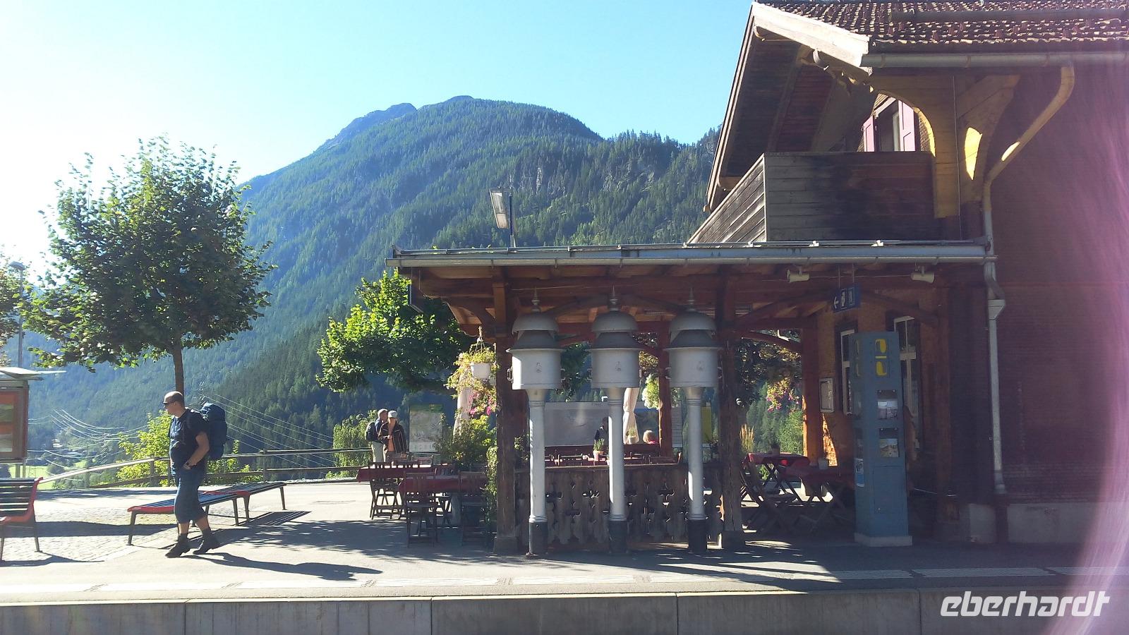 Auf dem Bahnhofsplatz haben wir einen schönen Blick auf den „Berg der Berge".