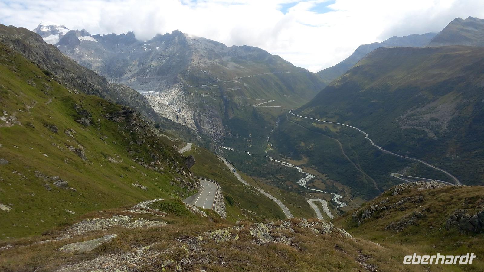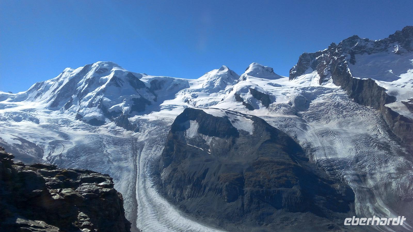 Welch ein überwältigendes Panorama. Wir benötigen die Sonnenbrille, um die Schönheit der Berge genießen zu können.