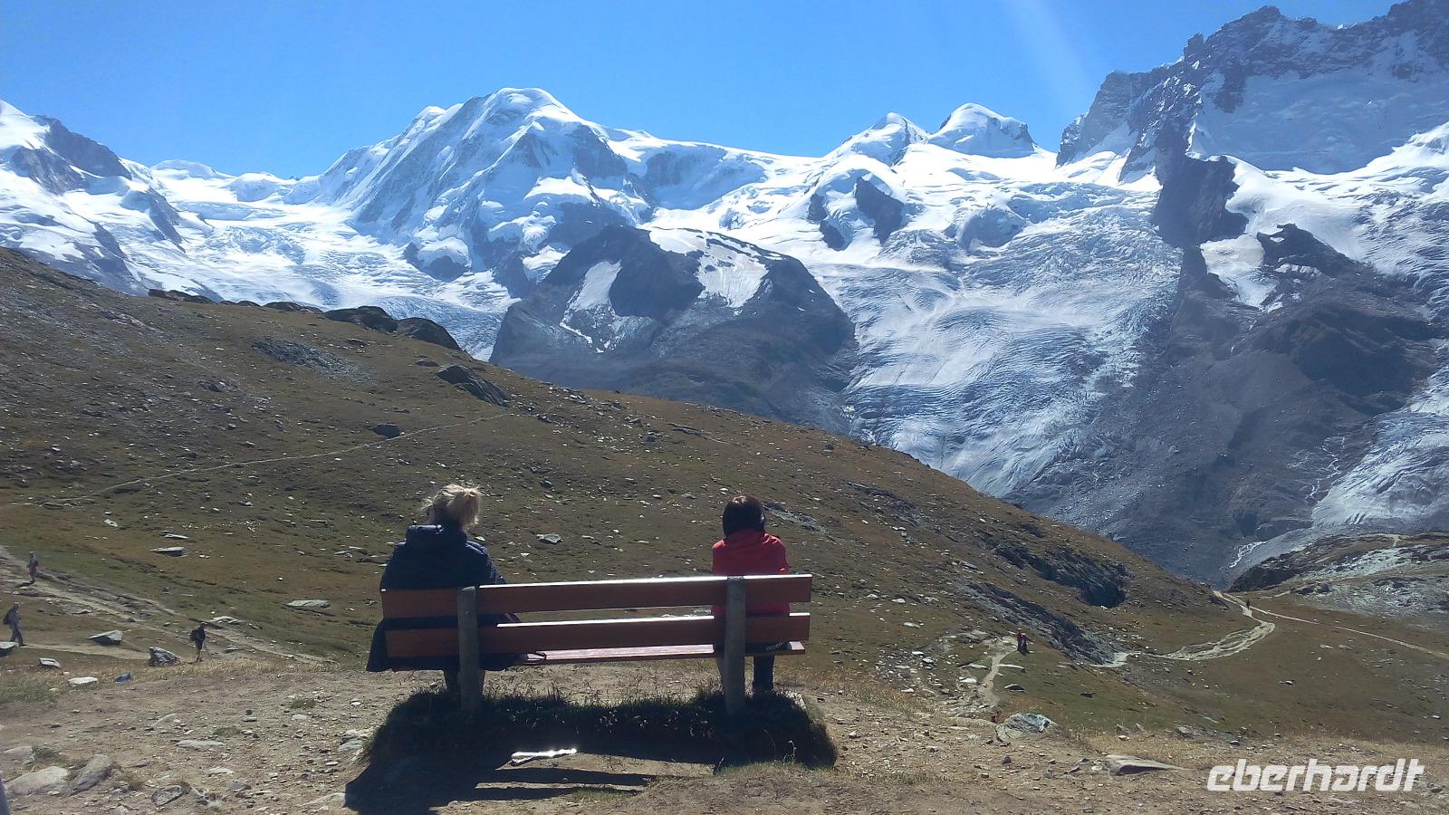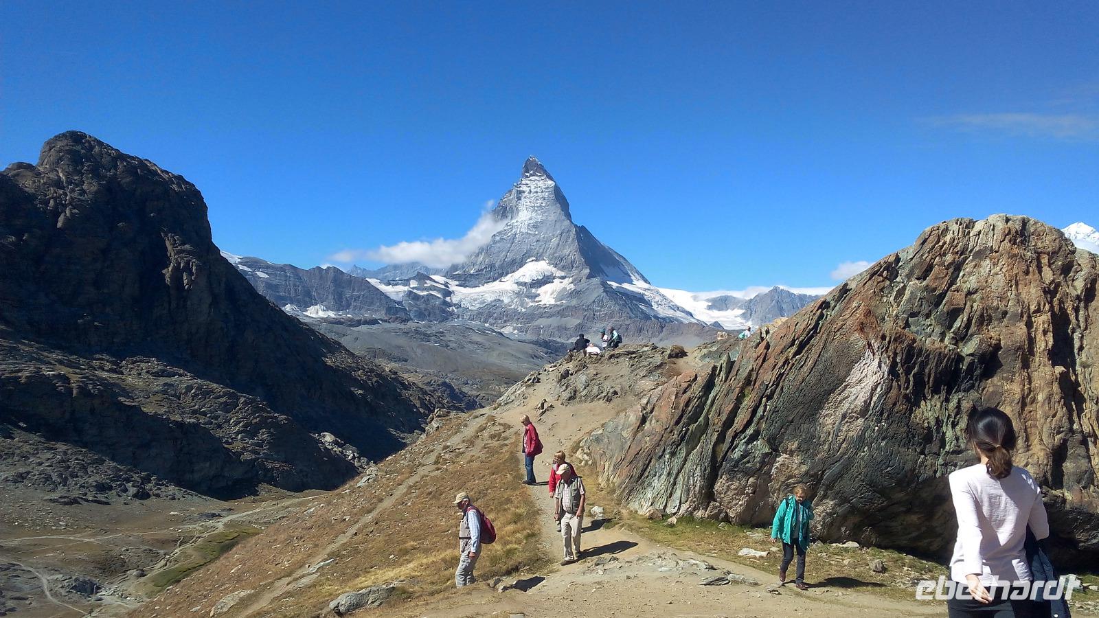 Die Gestaltung des weiteren Tages kann jeder selbst bestimmen. Viele von uns wollen wandern. Eine der beliebten Strecke beginnt an der Station Rotenboden bis zum Riffelsee. Der Weg dauert nur 5 Minuten um zu sehen, wie sich das Matterhorn im See spiegelt. Der weitere Weg nach Riffelberg bietet immer wieder schöne Blicke in die Berge und auf die Gornergratbahn.