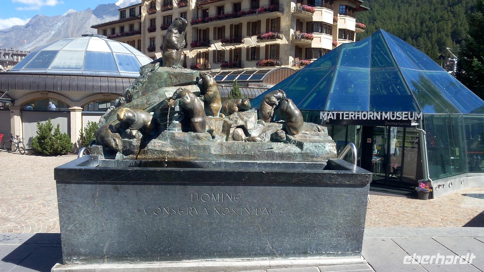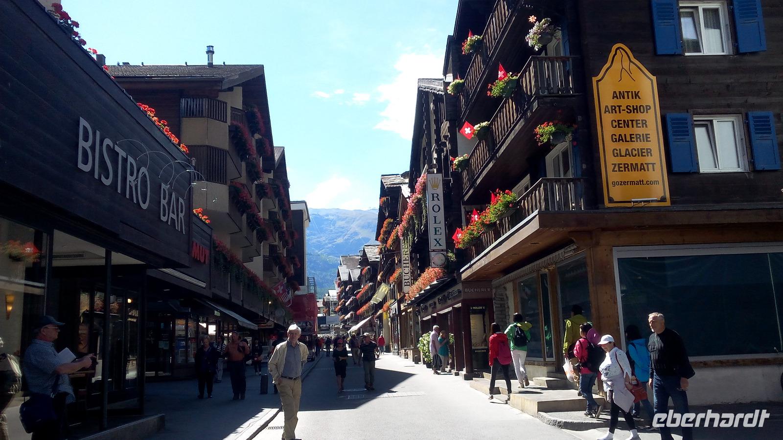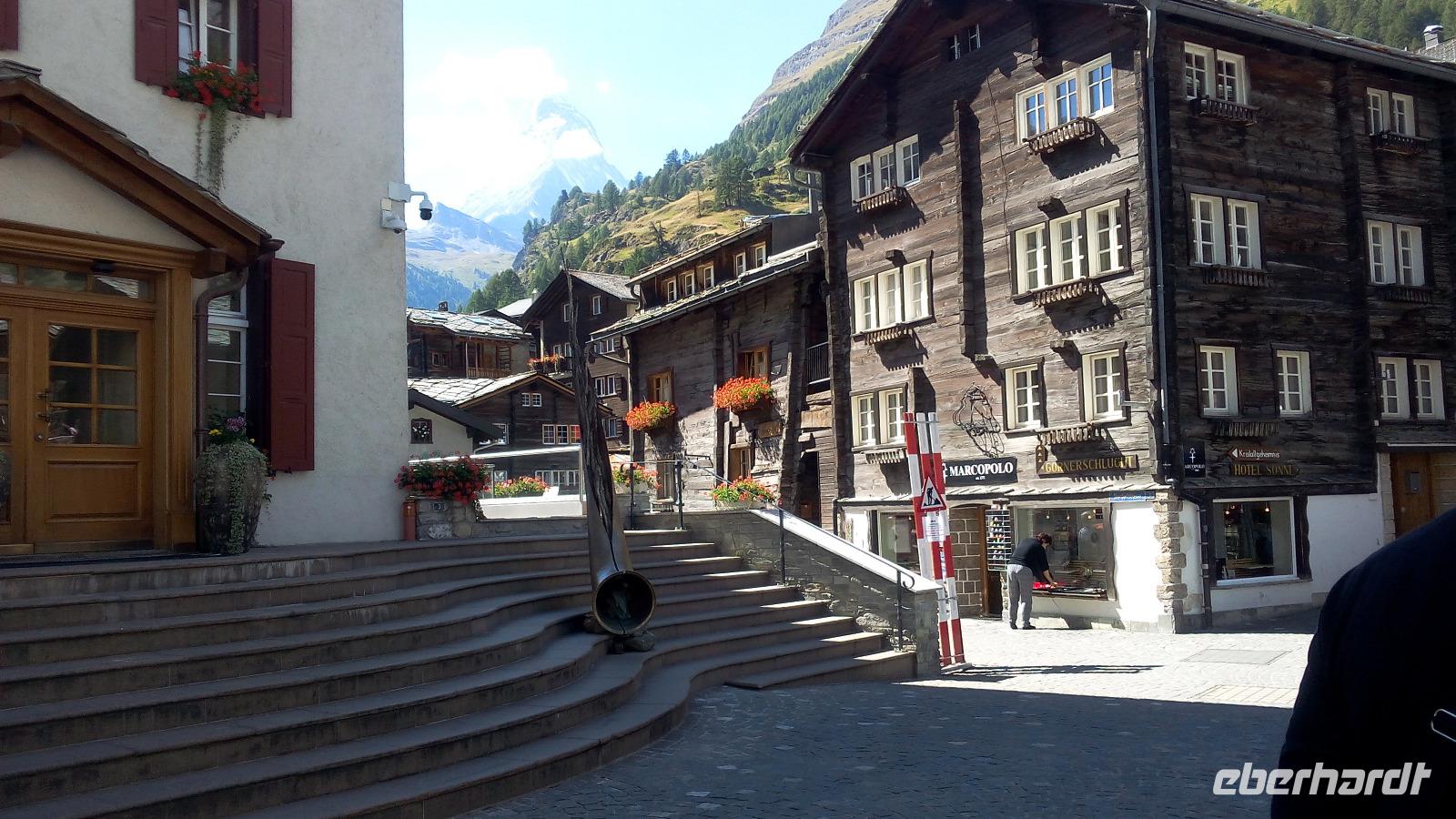 Zermatt steht für viele Gäste heute auf dem Programm. Entlang der 600 m langen Bahnhofstraße, zur Englischen Kirche mit Bergsteigergräber, durch das alte Zermatt mit den schönen Häusern und einigen Speichern aus Lärchenholz im Walliser Baustil, mit den Mäuseplatten. Zum Spaziergang gehört aber auch der Markt mit dem reizvollen Murmeltierbrunnen, dem Museum und der Kirche St. Mauritius und Bergsteigerfriedhof.