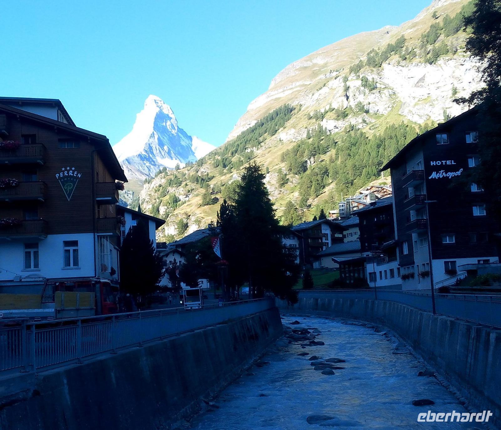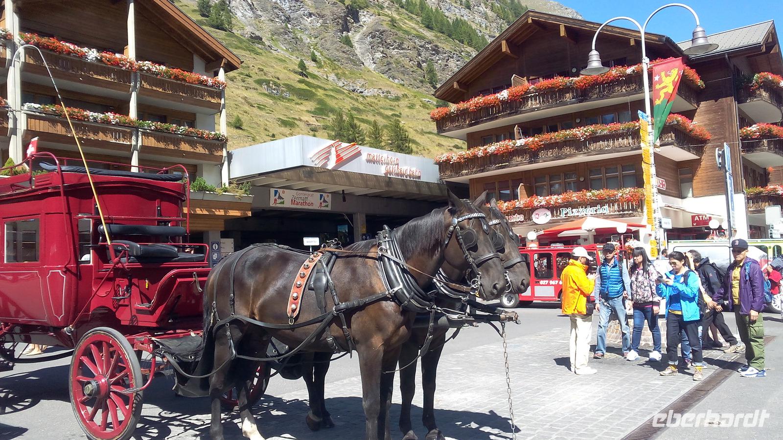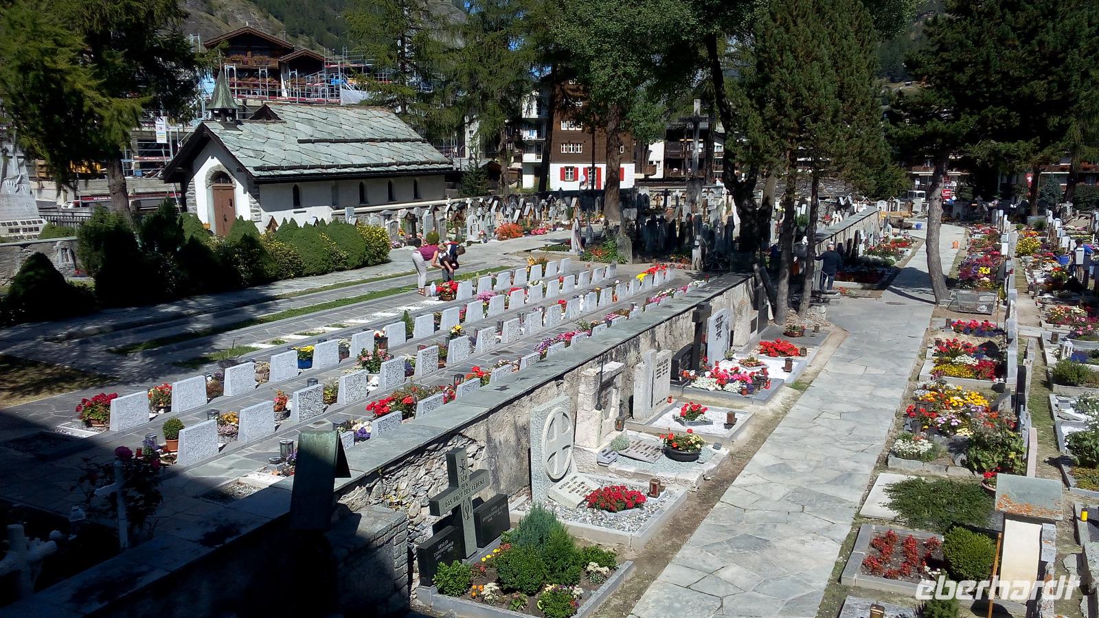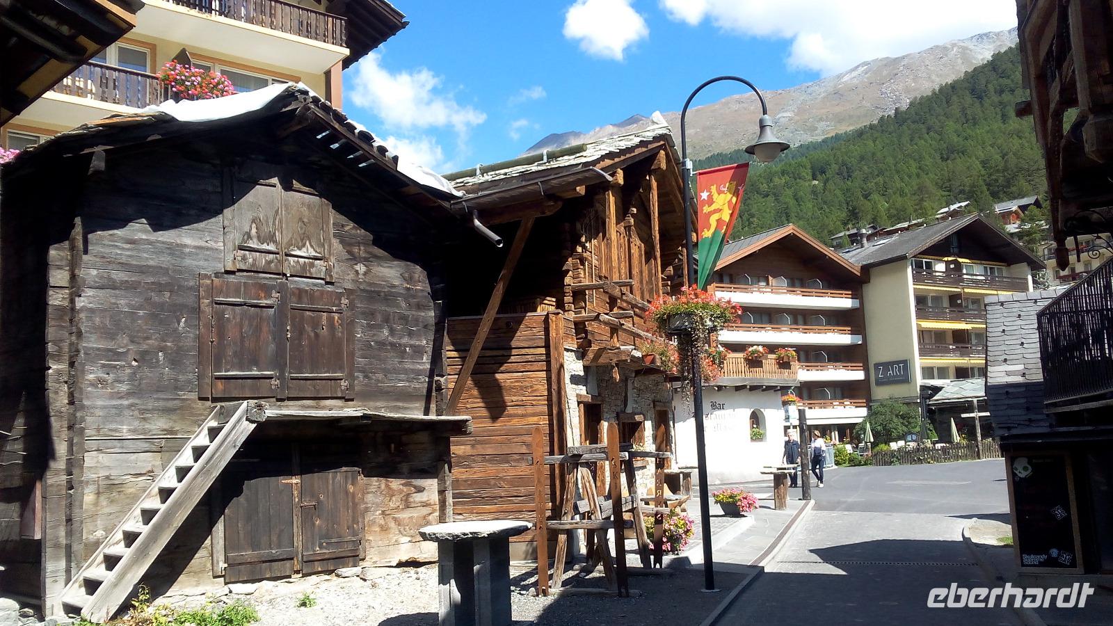 Zermatt steht für viele Gäste heute auf dem Programm. Entlang der 600 m langen Bahnhofstraße, zur Englischen Kirche mit Bergsteigergräber, durch das alte Zermatt mit den schönen Häusern und einigen Speichern aus Lärchenholz im Walliser Baustil, mit den Mäuseplatten. Zum Spaziergang gehört aber auch der Markt mit dem reizvollen Murmeltierbrunnen, dem Museum und der Kirche St. Mauritius und Bergsteigerfriedhof.