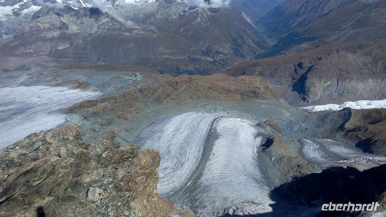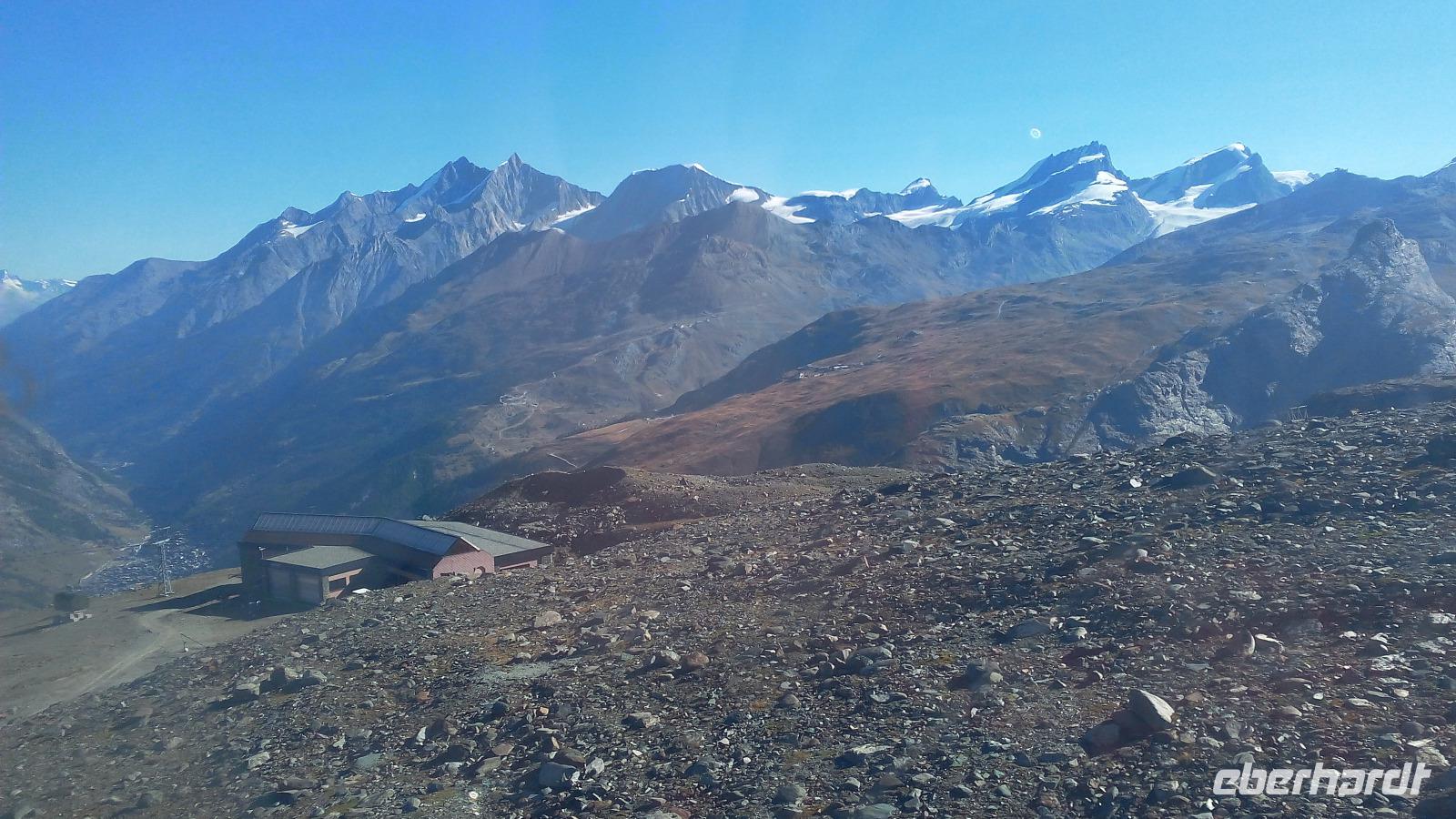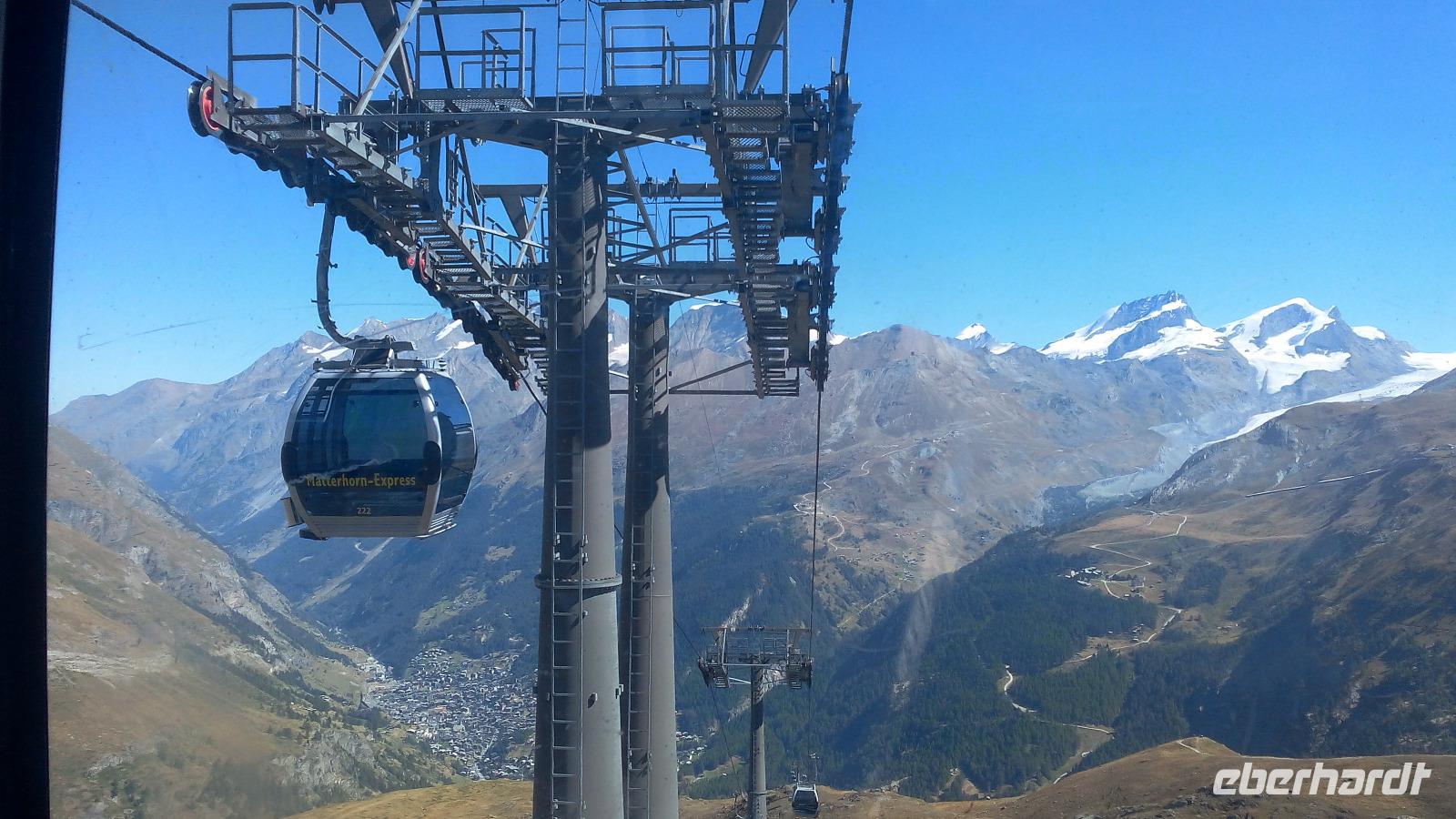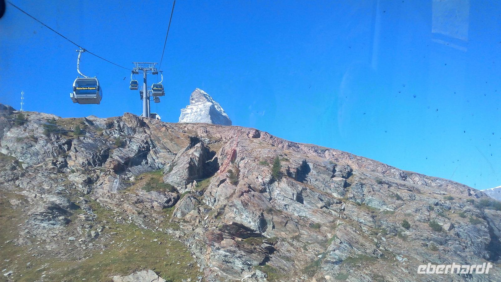 Sonne pur und die Temperaturen wurden mit bis zu 28 Grad angesagt. Ein Teil der Gruppe fährt mit der höchsten Luftseilbahn Europas zum kleinen Matterhorn(3883 m).