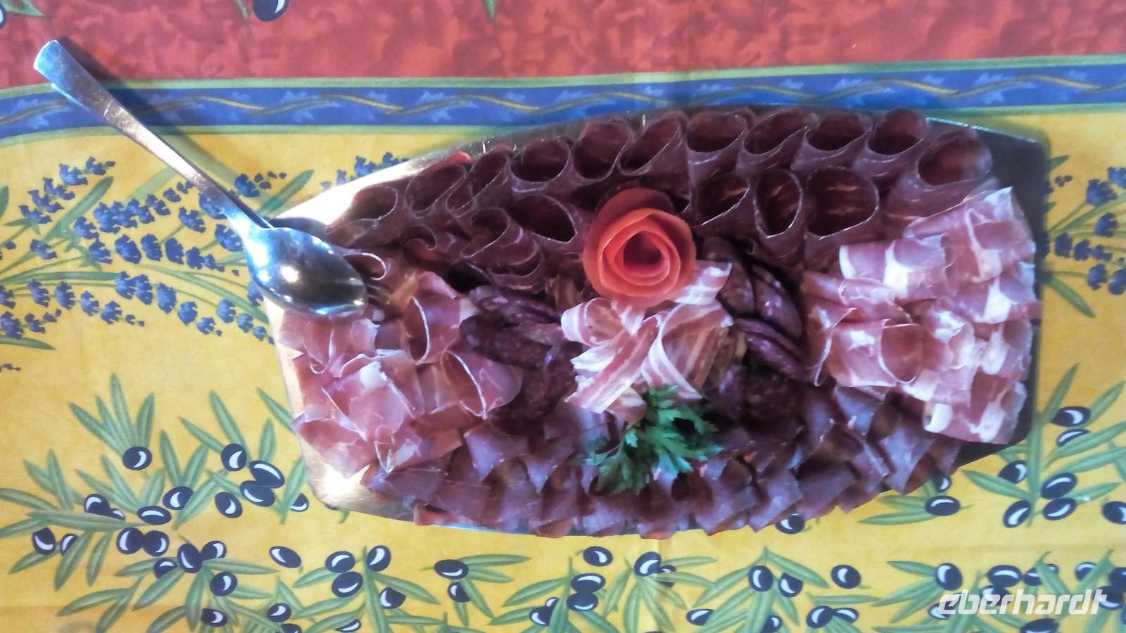 Wir laufen nach der langen Fahrt zum Hotel "Perren". Frank und unsere Koffer sind schon da und schnell sind die Zimmer bezogen und somit lassen wir bei einem guten Essen und einem Glas Wein den Tag ausklingen.