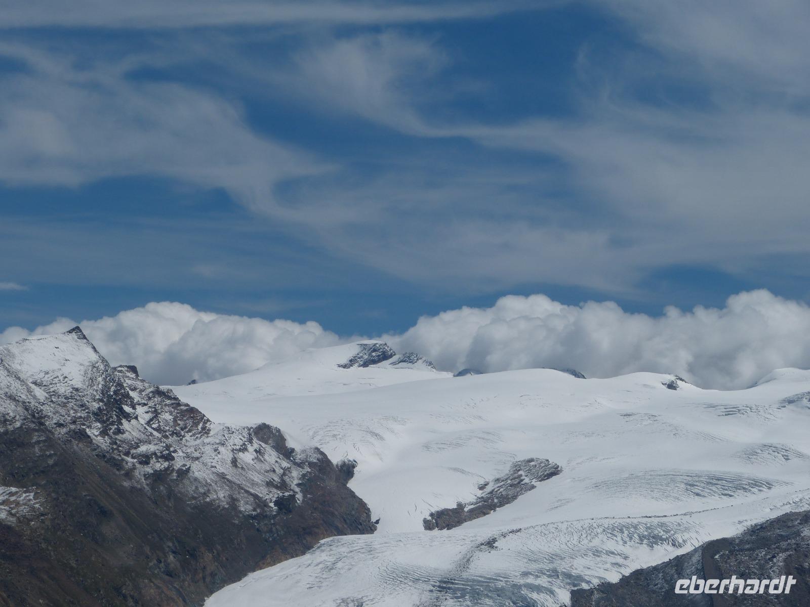 12 Personen hatten sich entschieden nach dem Frühstück das schöne Wetter zu nutzen um zum kleinen Matterhorn zu fahren. Mit einer Schwebebahn und 2x umsteigen waren wir plötzlich auf der höchsten Aussichtsplattform der Alpen, auf 3883 Meter über dem Meer. Die herrliche Aussicht ließ uns den Atem stocken, Mont Blanc, Jungfrau, Eiger, Mönch, alle diese Berge konnte man ganz genau sehen. Aber auch der Gletscherpalast mit seinen schillernden Eisskulpturen verzauberte uns Besucher. Den Abgang von diesem imposanten Berg gestaltete jeder individuell.