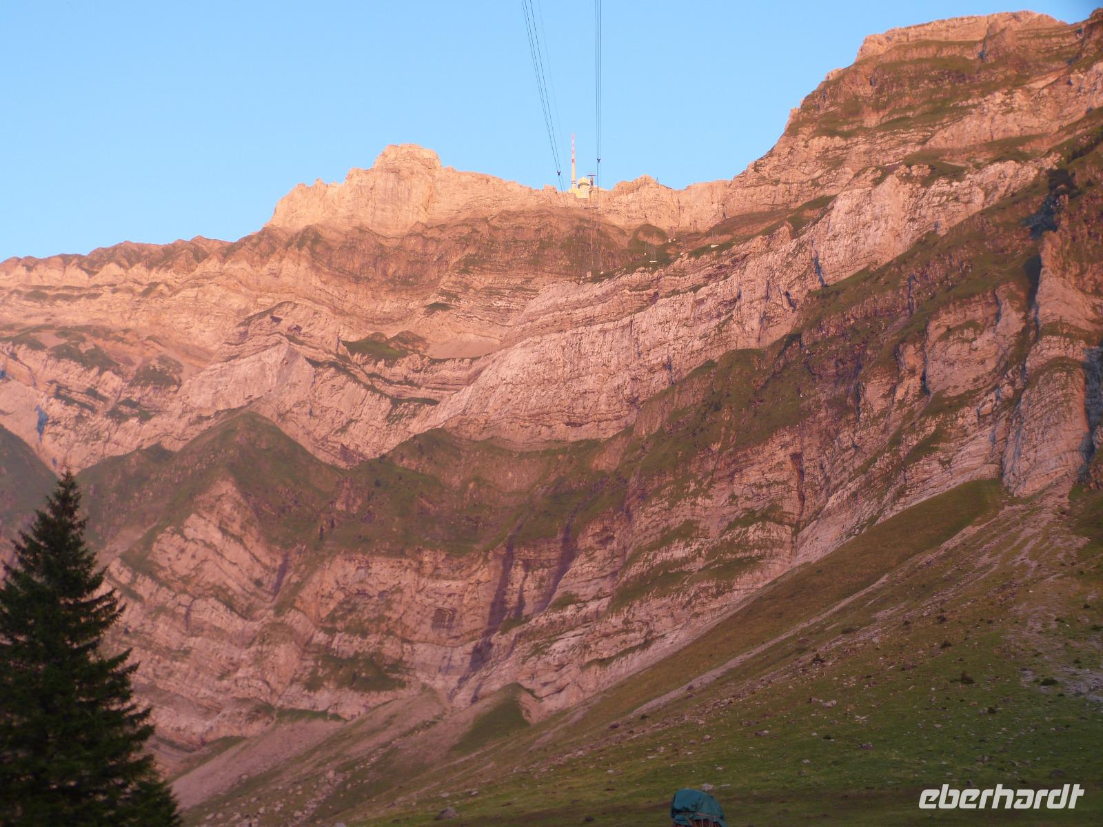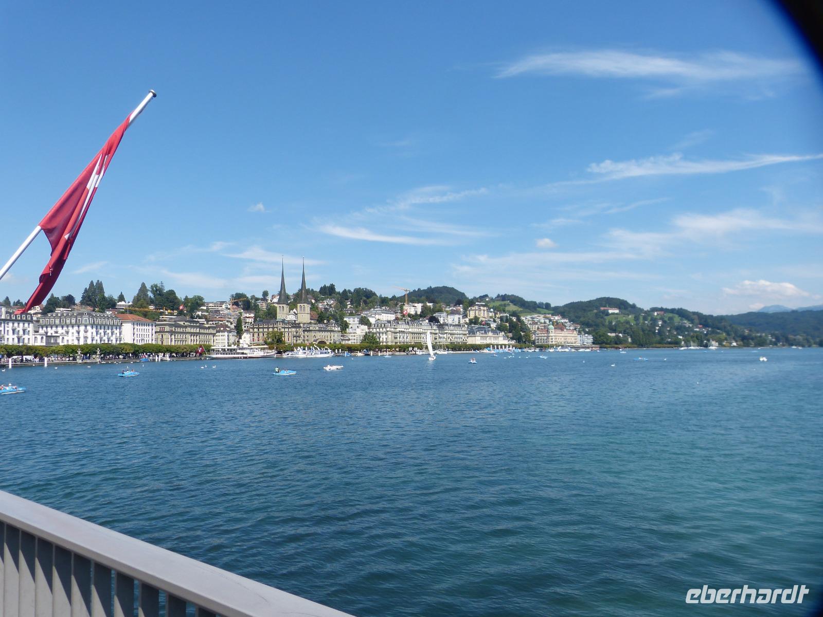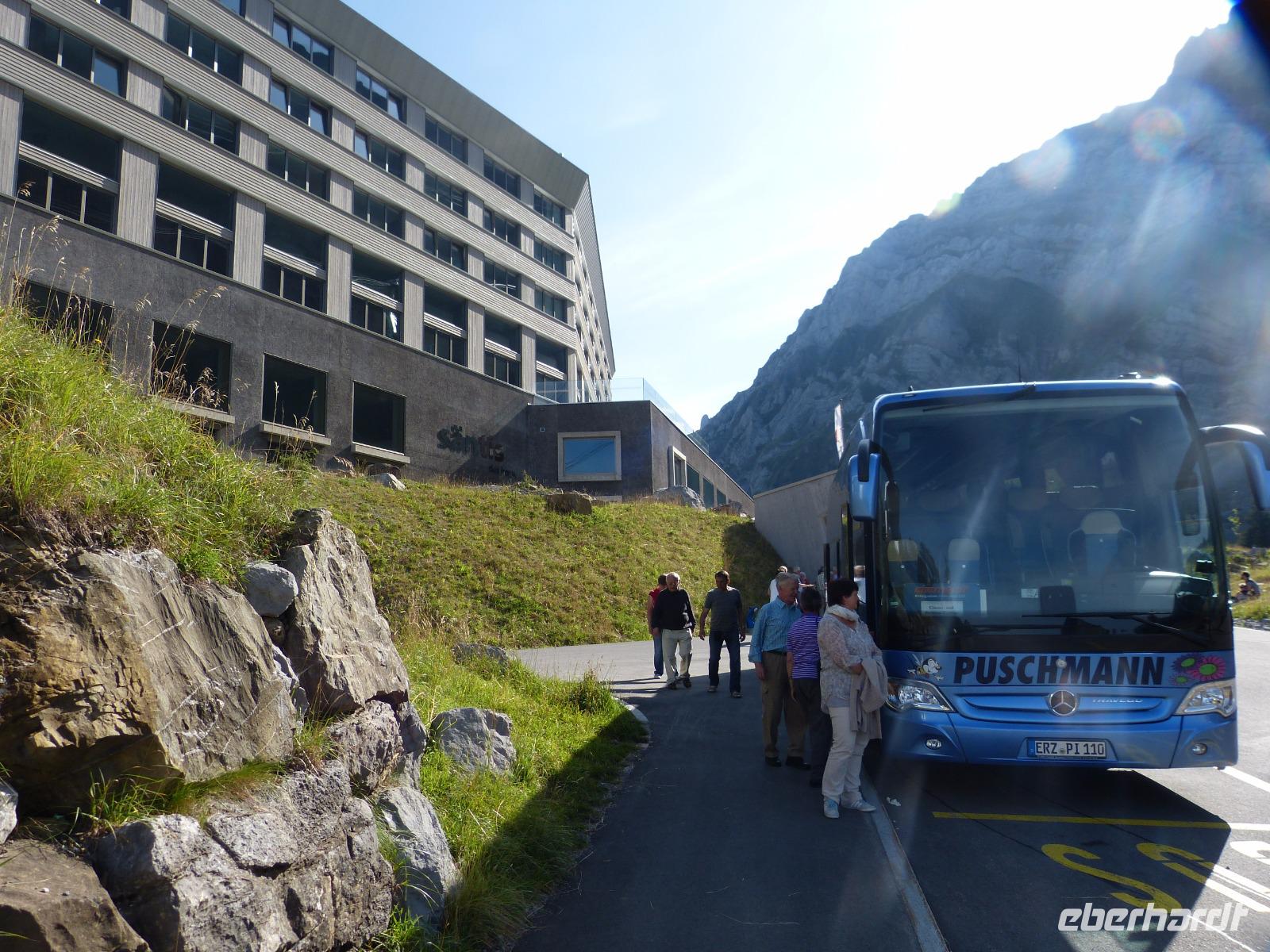 14.00 Uhr kamen wir in Luzern an und erkundeten nach einem kurzen Mittagsmahl für 1,5 Stunden diese lebhafte Stadt. Ein Spaziergang auf der berühmten Kapellbrücke durfte nicht fehlen. Danach ging die Fahrt vorbei am Zürichsee zur Schwägalp, die wir gegen17.30 Uhr bei klarer Sicht erreichten. Nach dem Abendbrot erkundeten noch einige Gäste die Alm. Leider war auf Grund der Vorbereitung auf ein Festival von der idyllischen Landschaft mit Kühen und ihren Schellen nichts zu sehen und hören. Wir nächtigten in einem neuen sehr modern gebauten Hotel.10.Tag